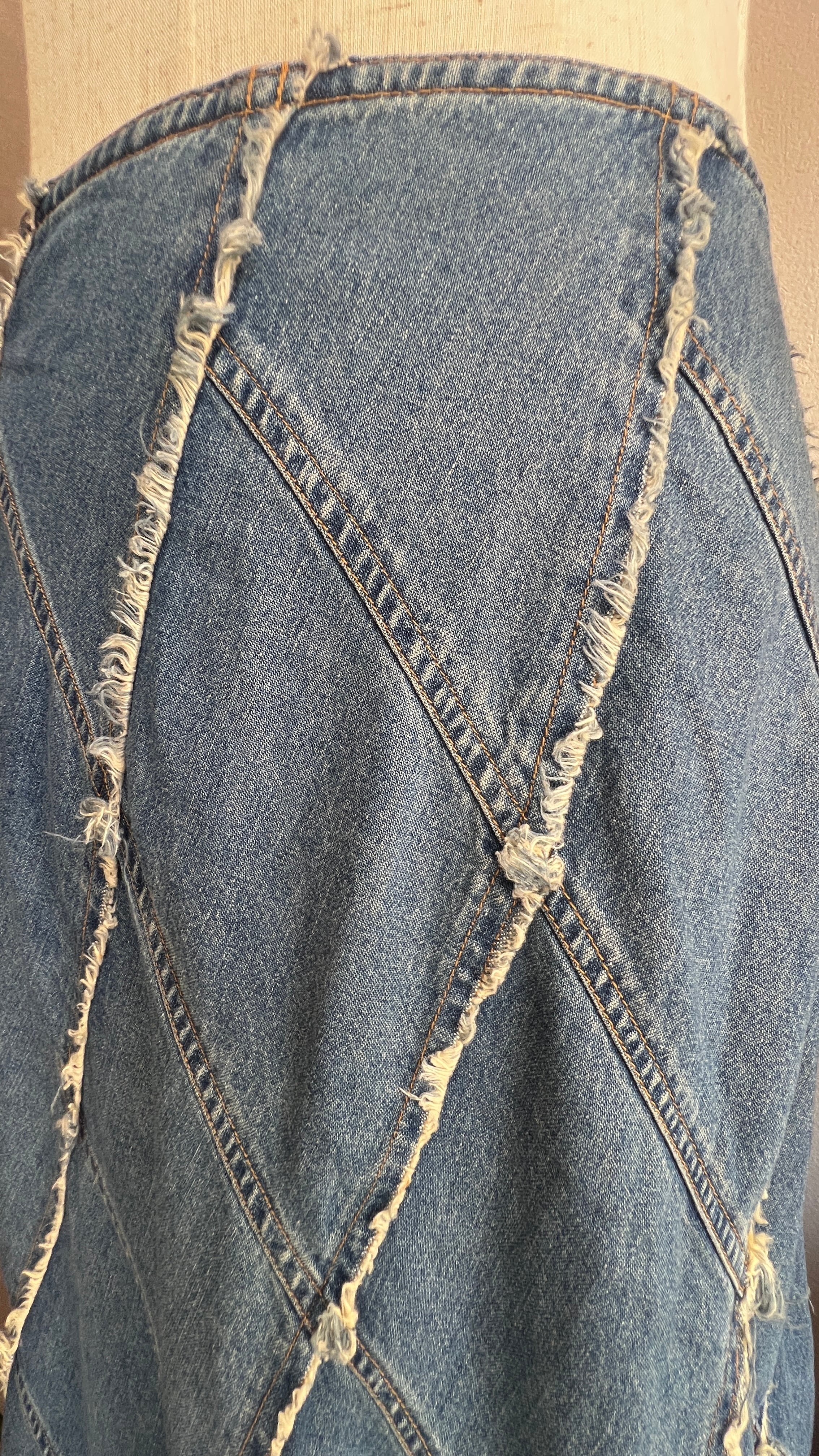 fringe denim longskirt
