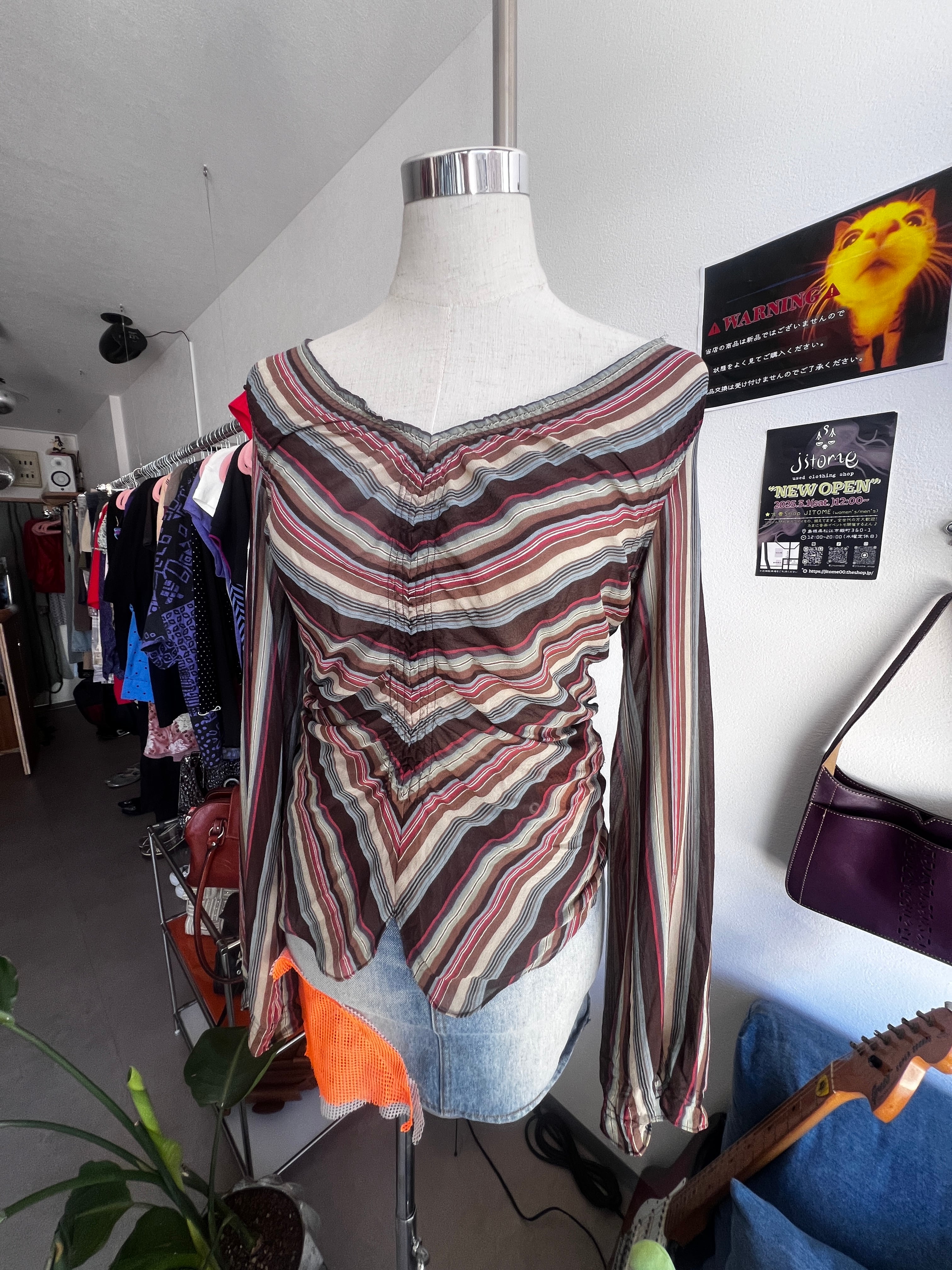 stripe gather blouse