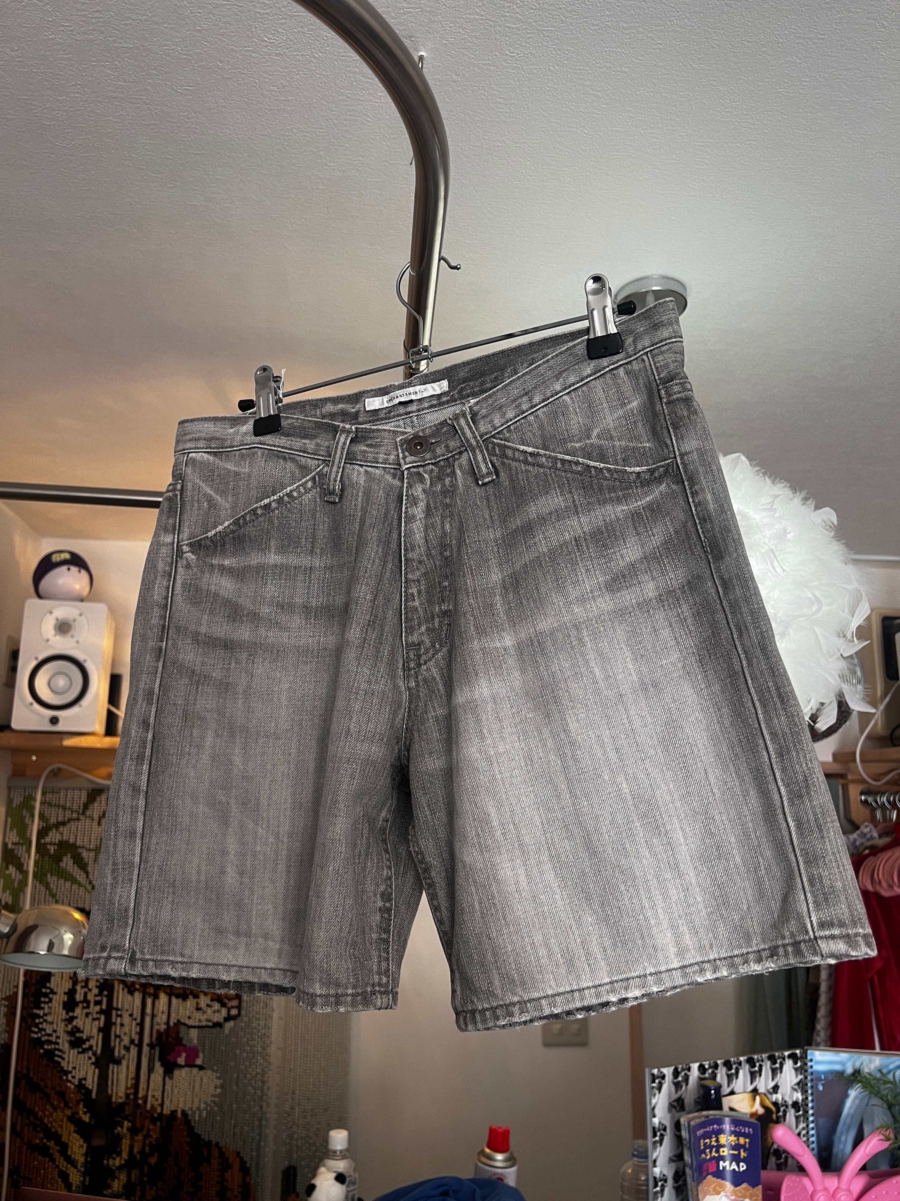 gray denim half pants