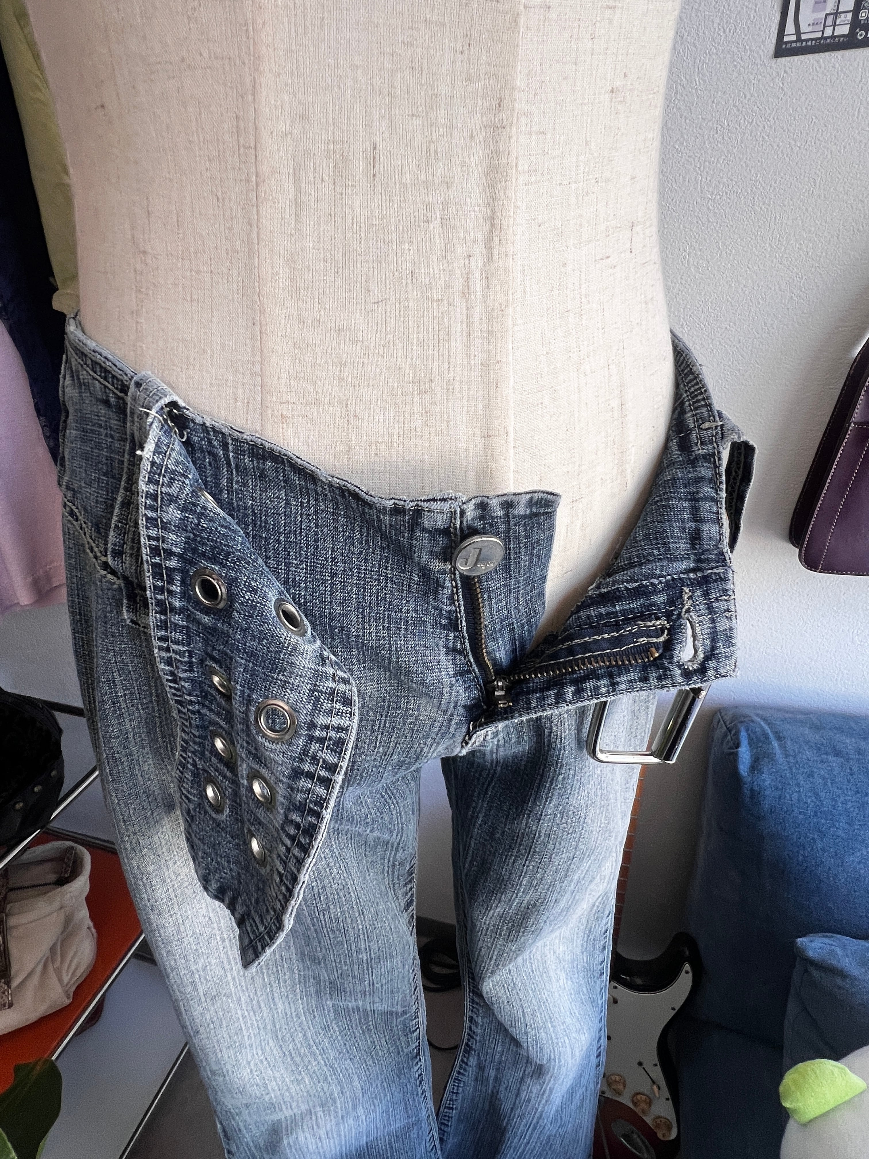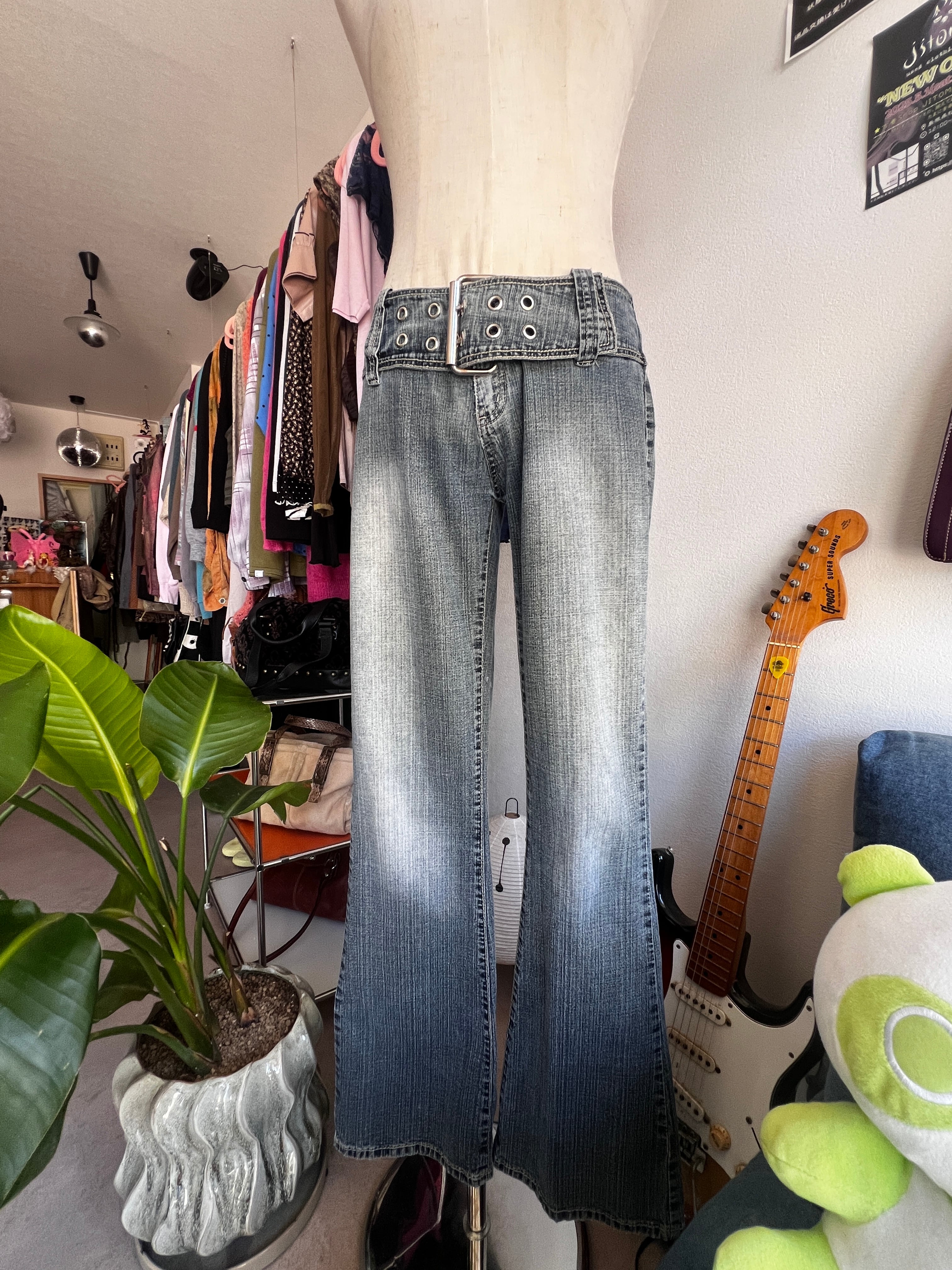 big belt flare denim