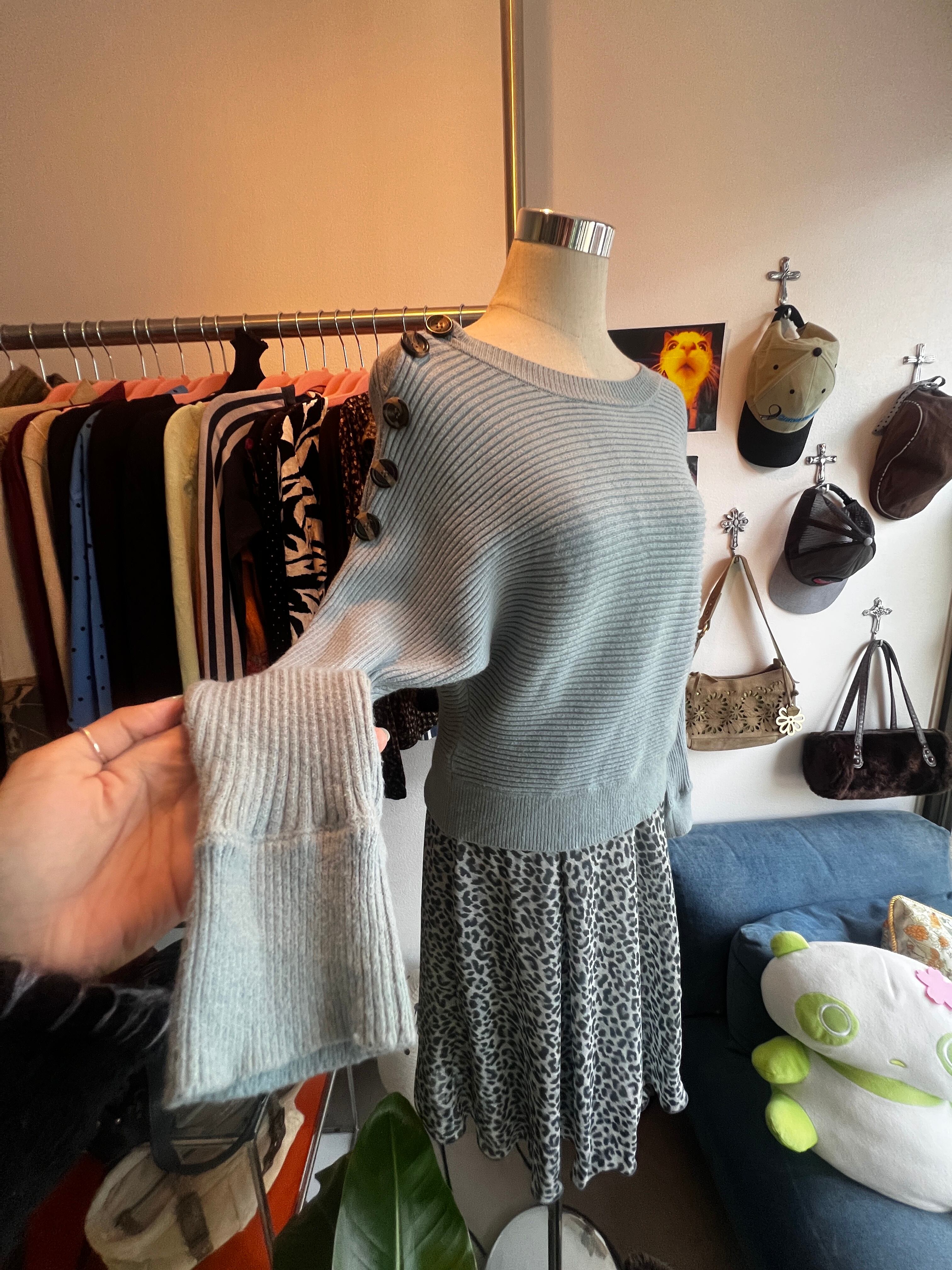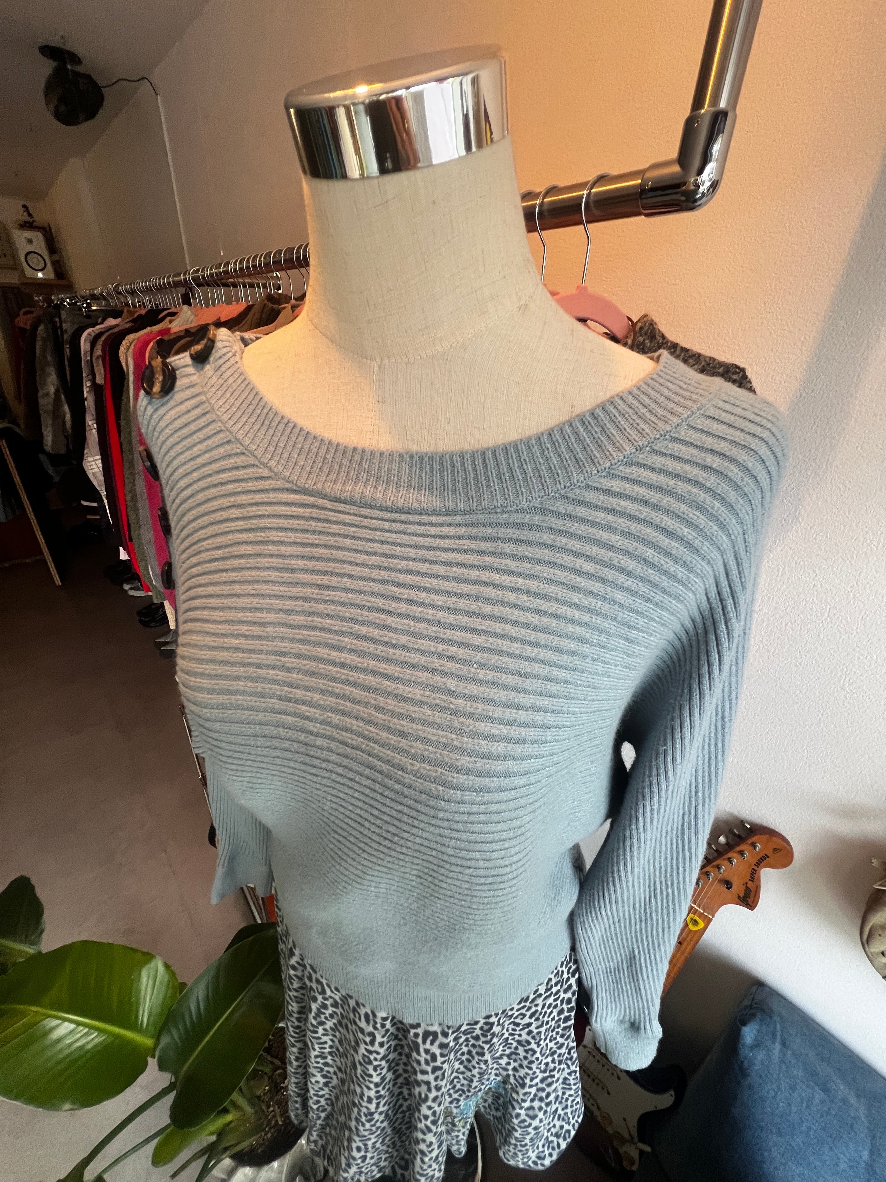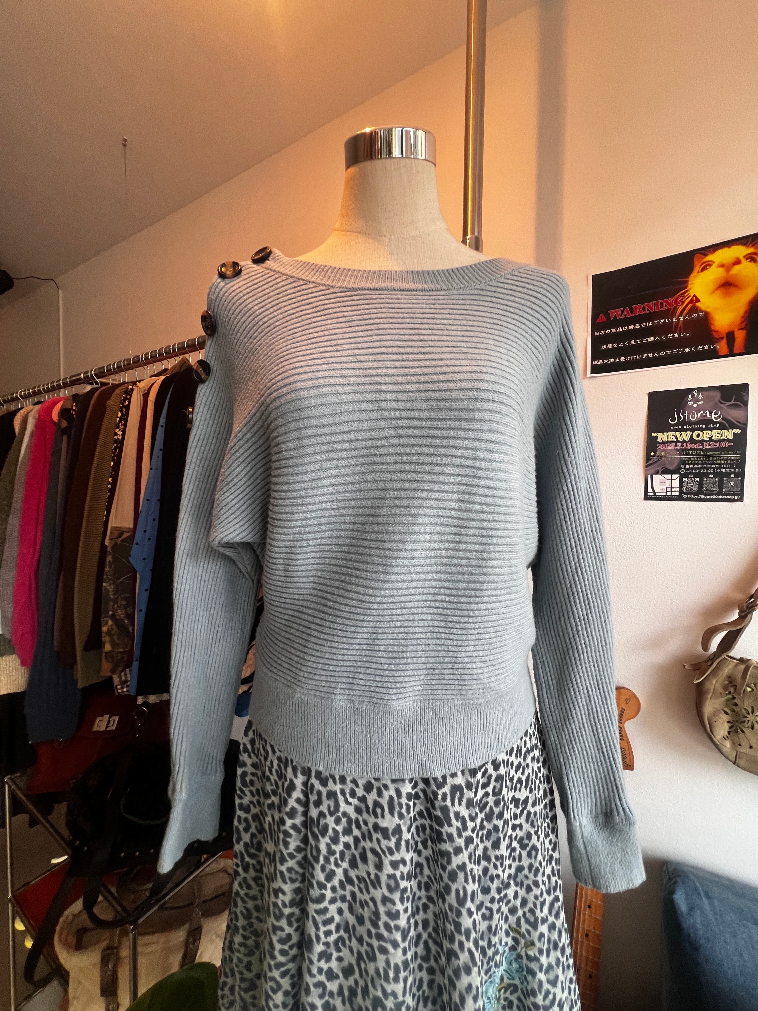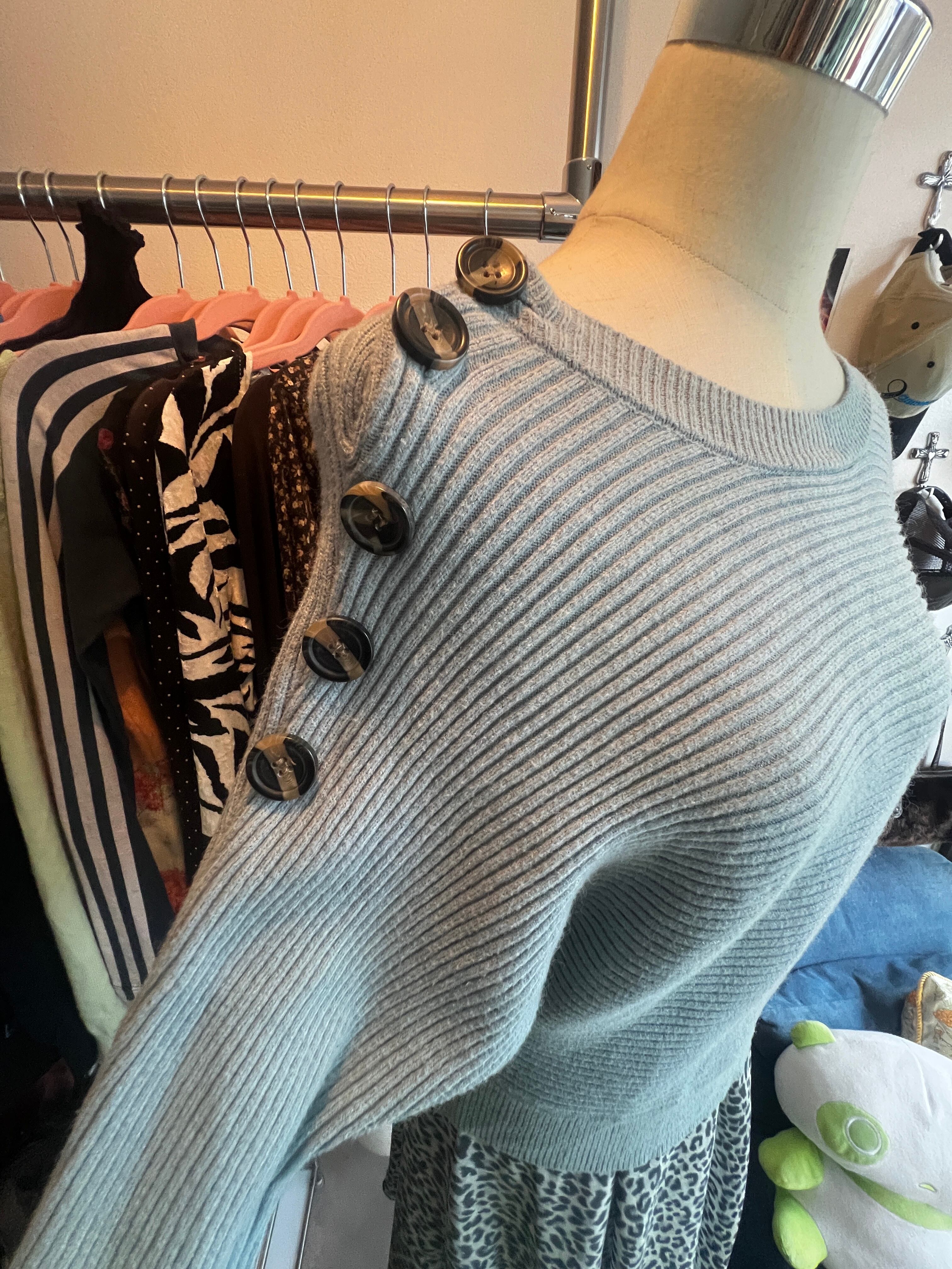 blue shoulder button knit
