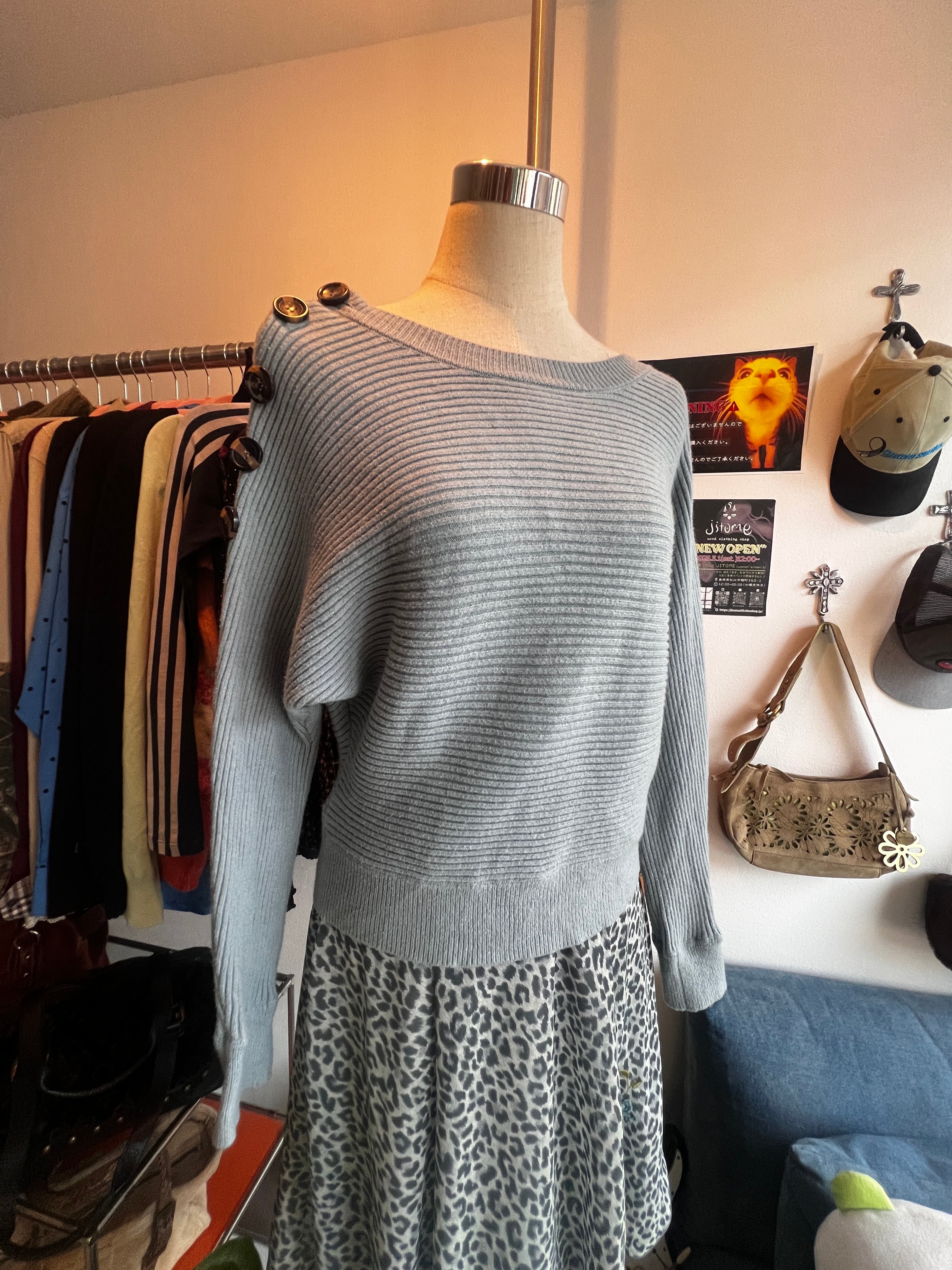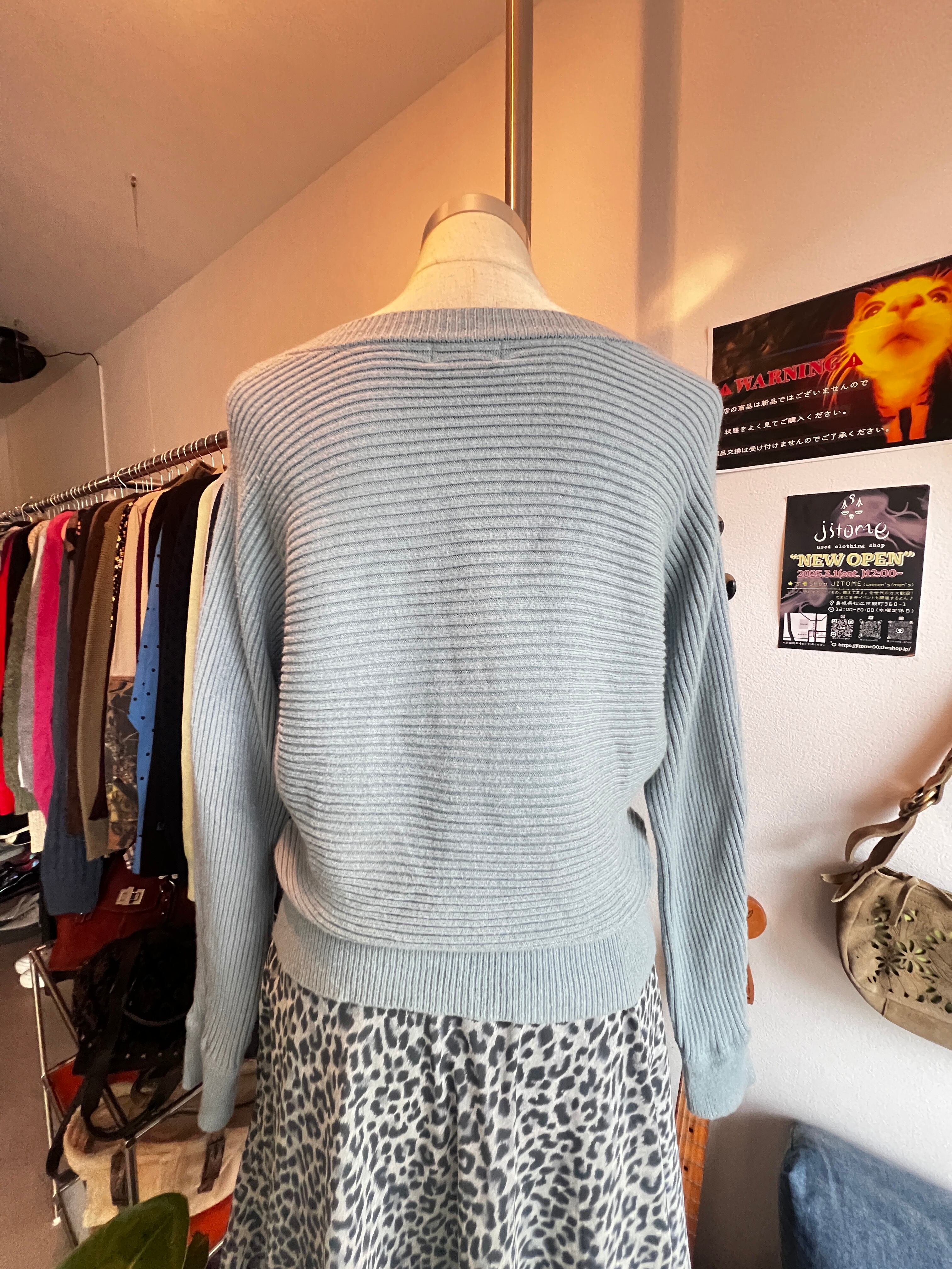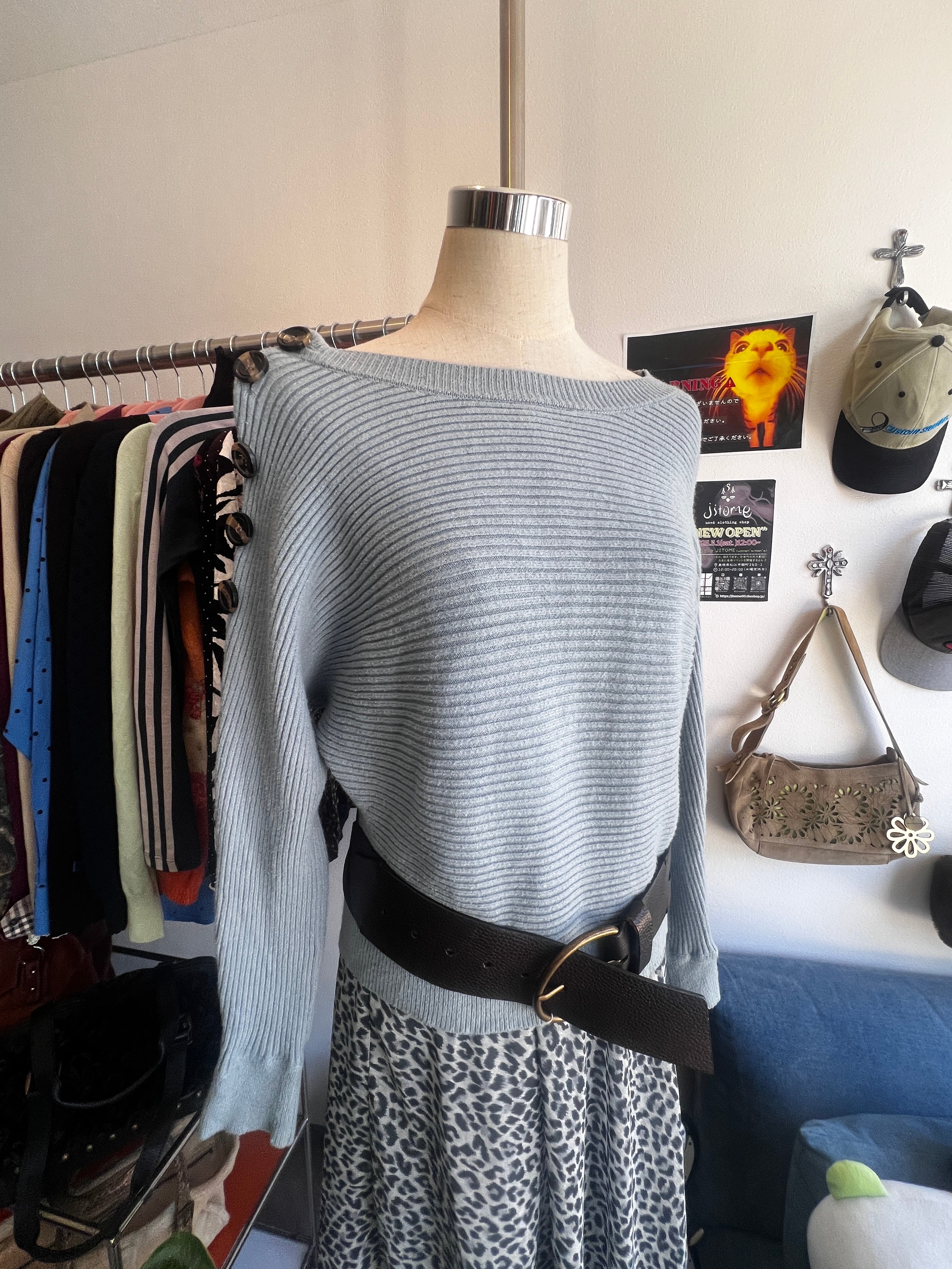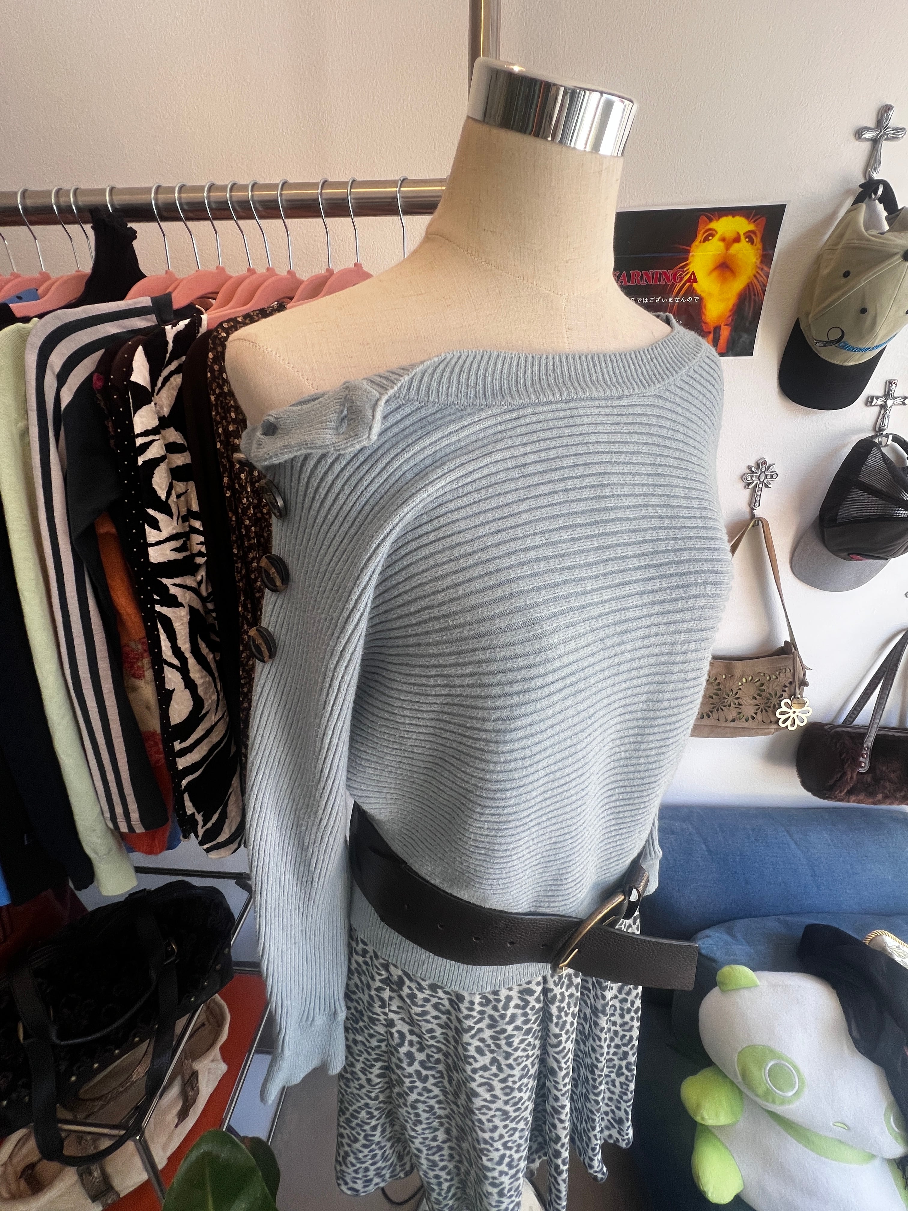 blue shoulder button knit
