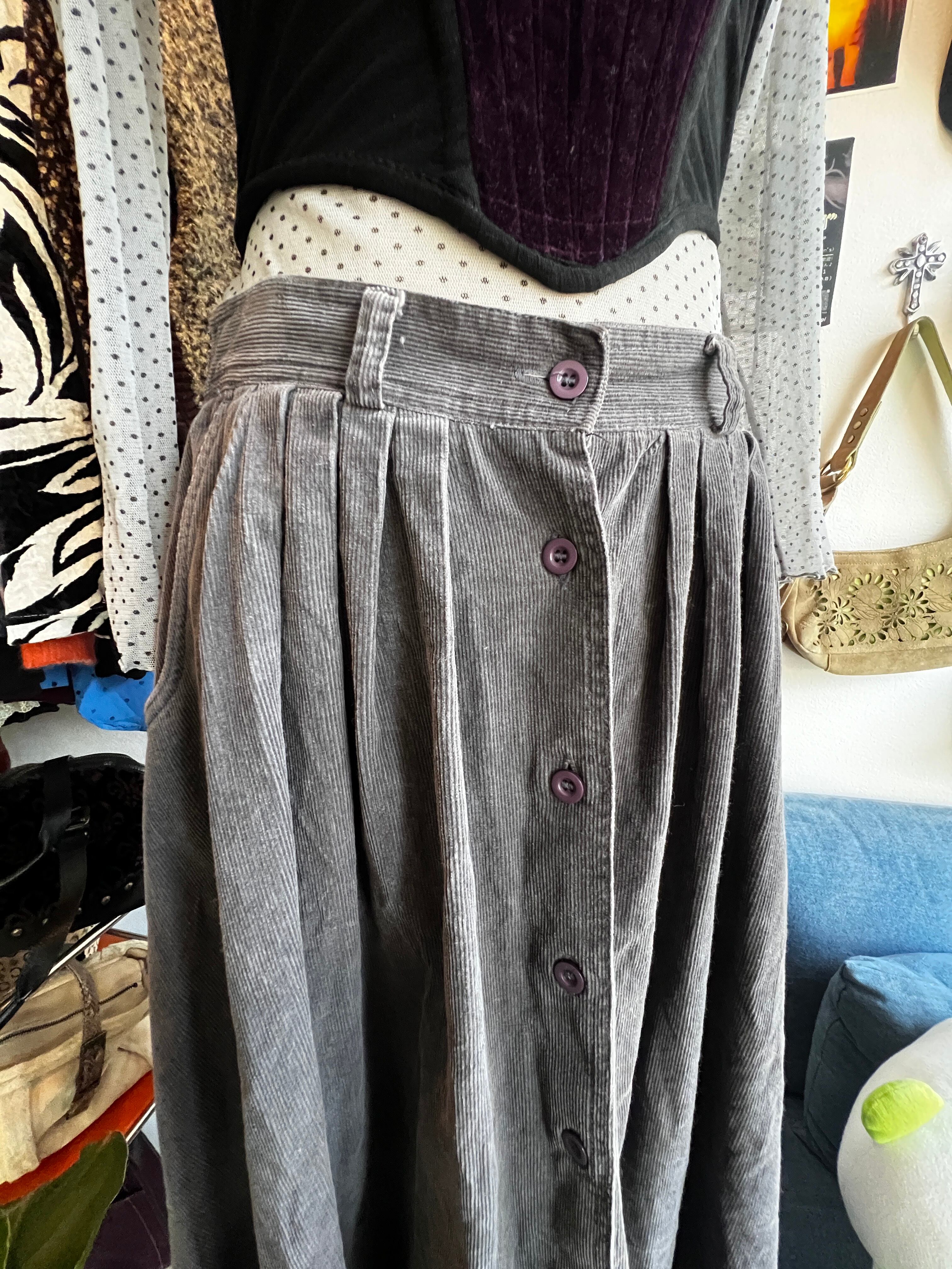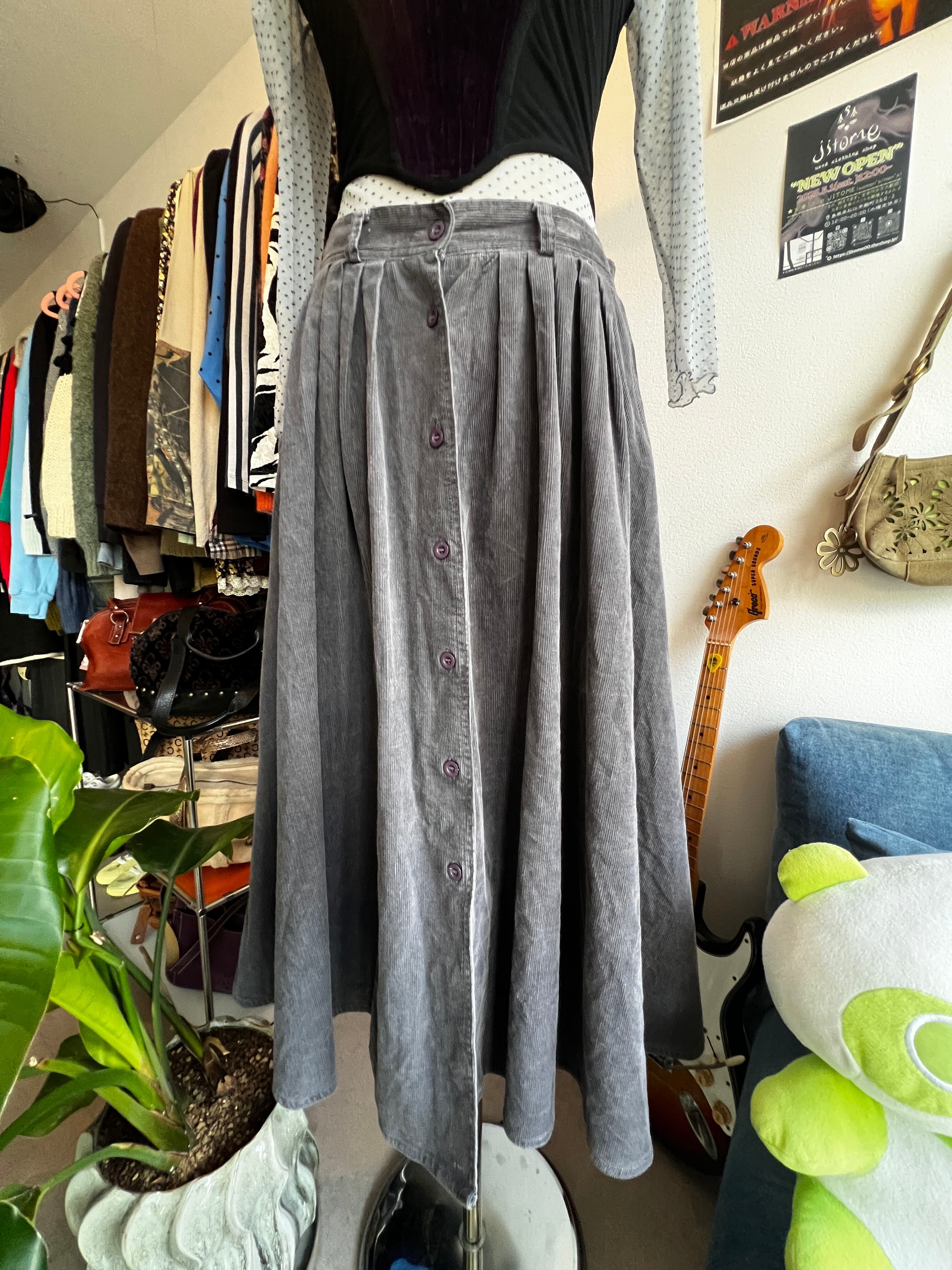 purple corduroy button skirt