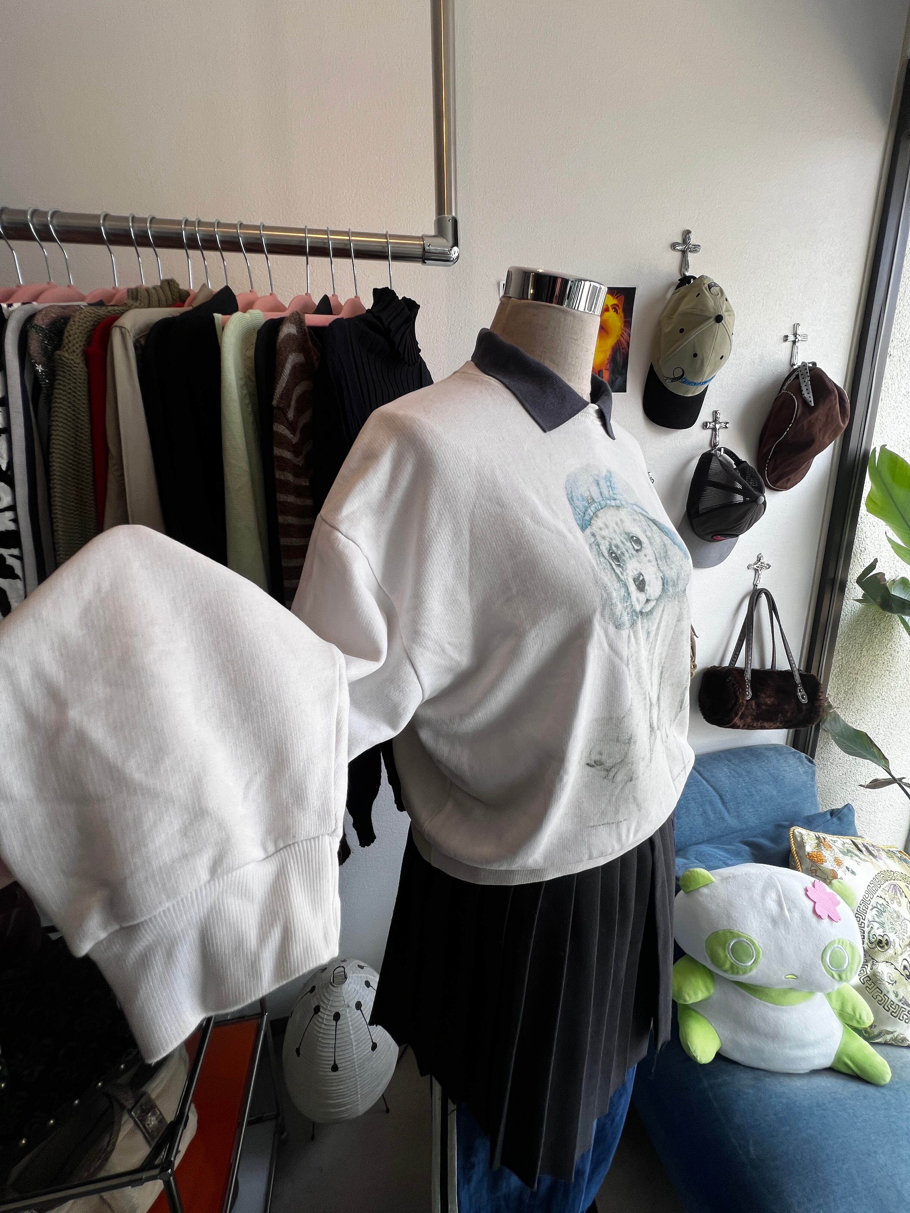 ホワイト✧*。襟はくすみブルー✧*。