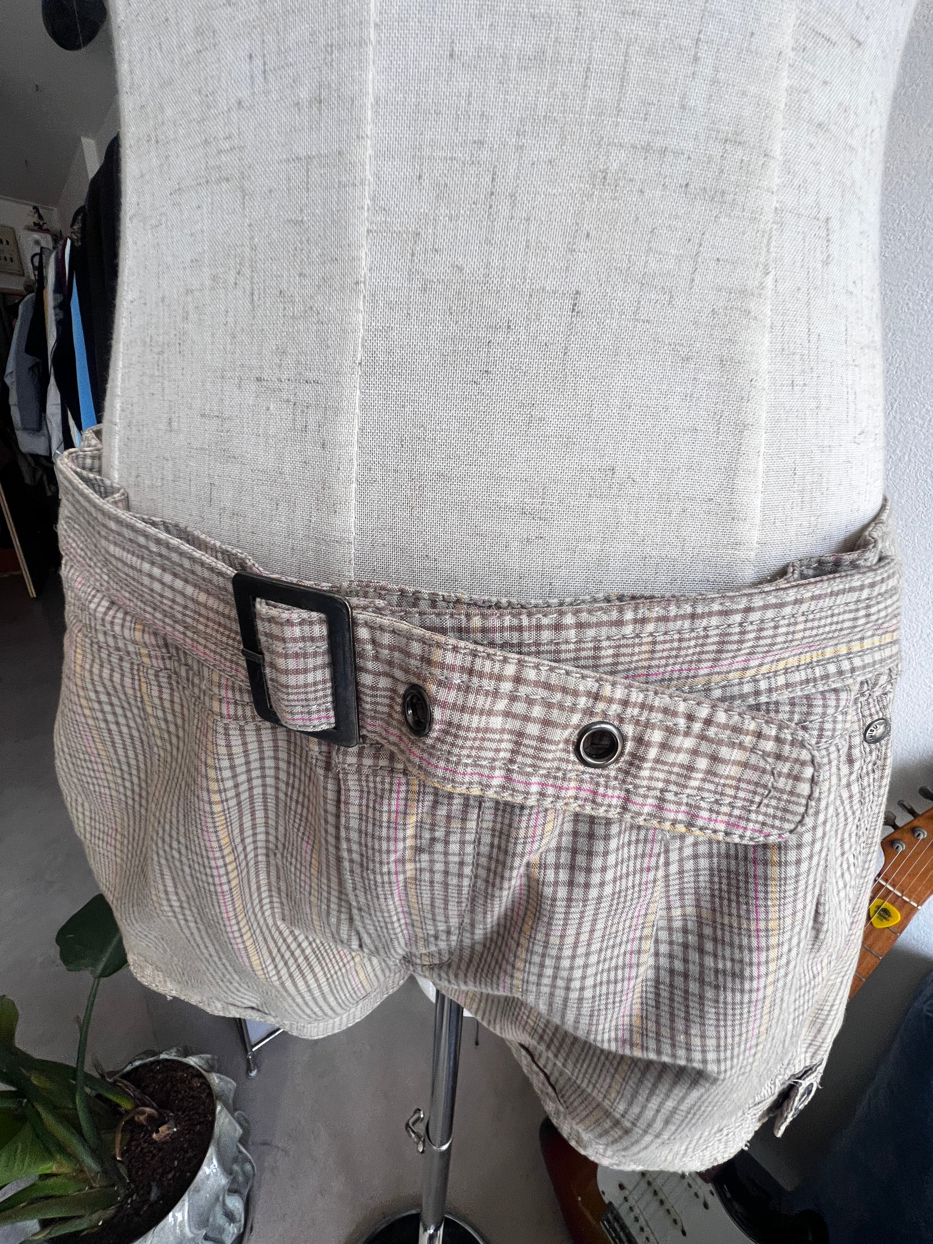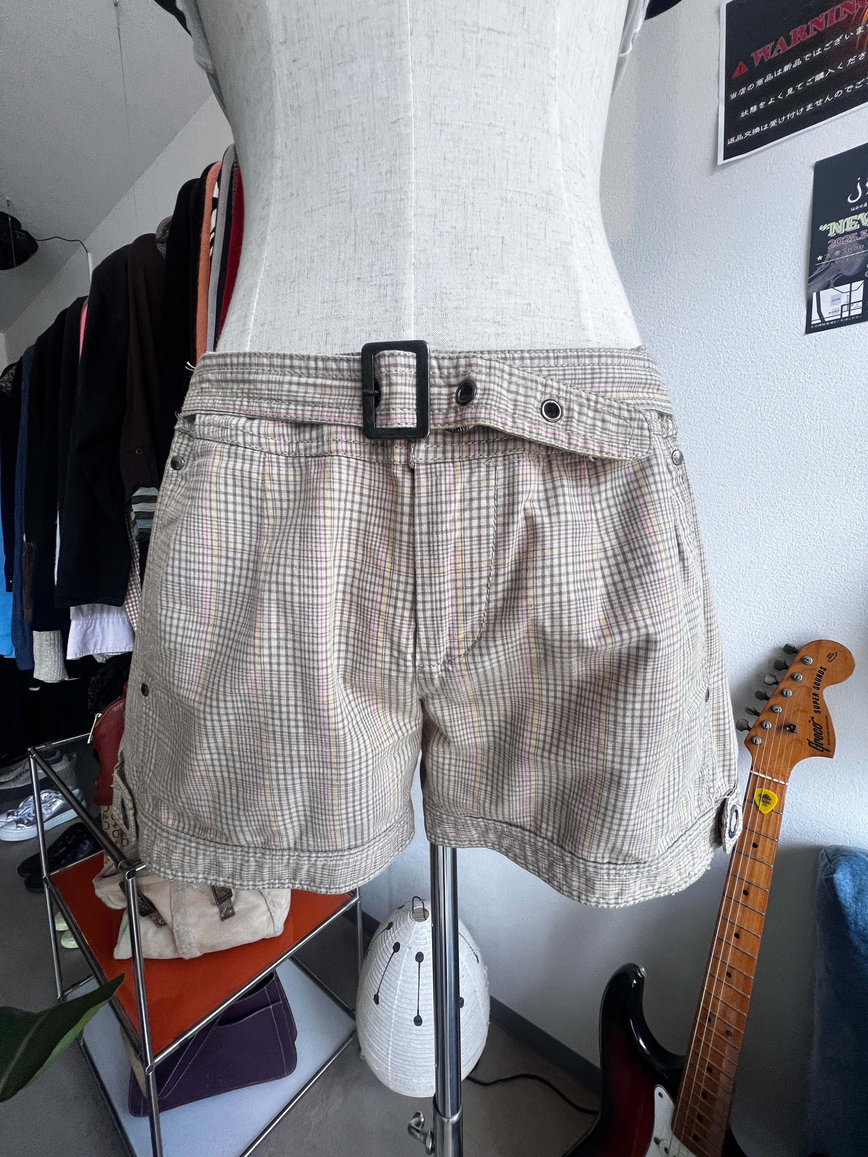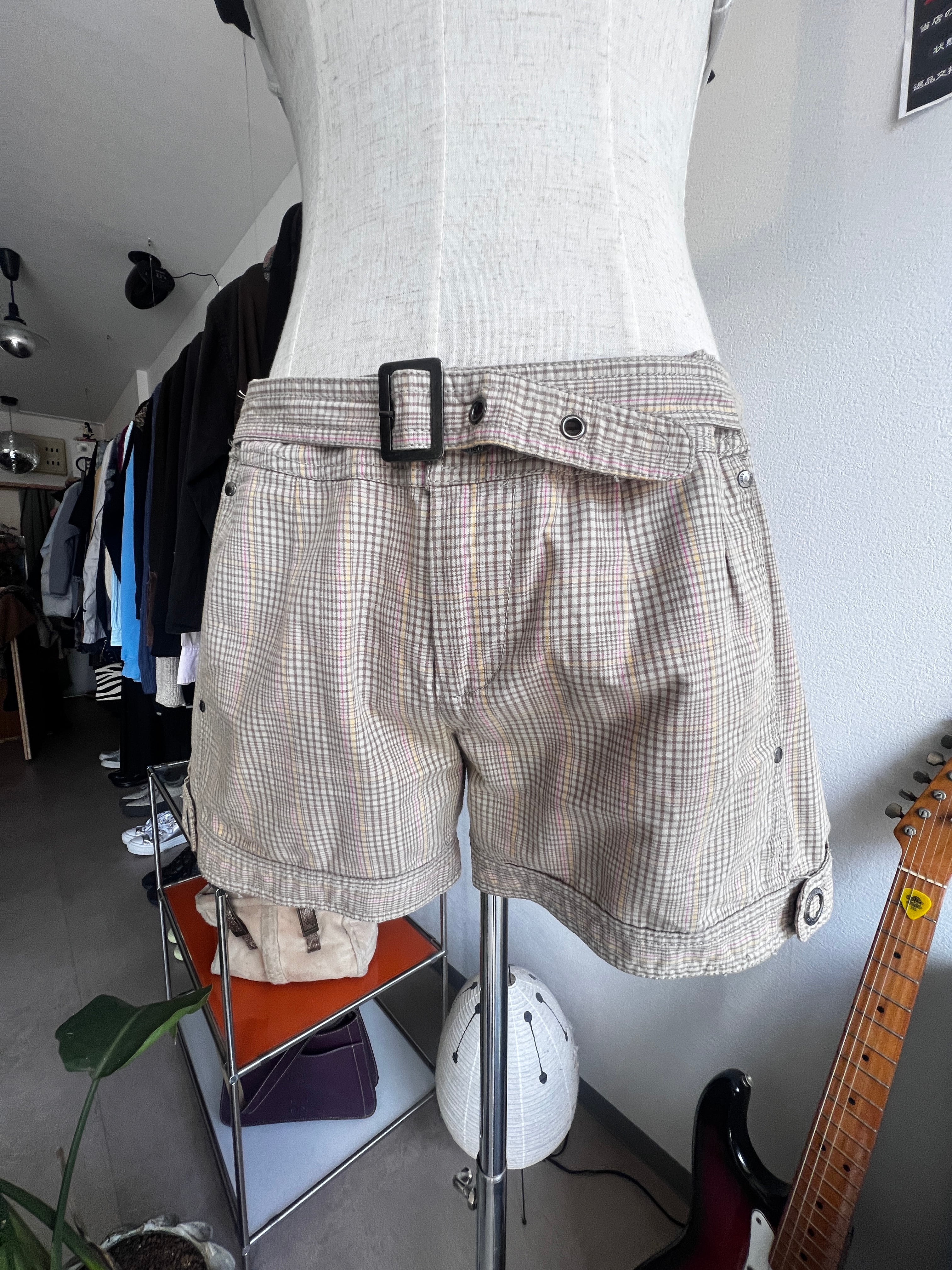 check belt short pants