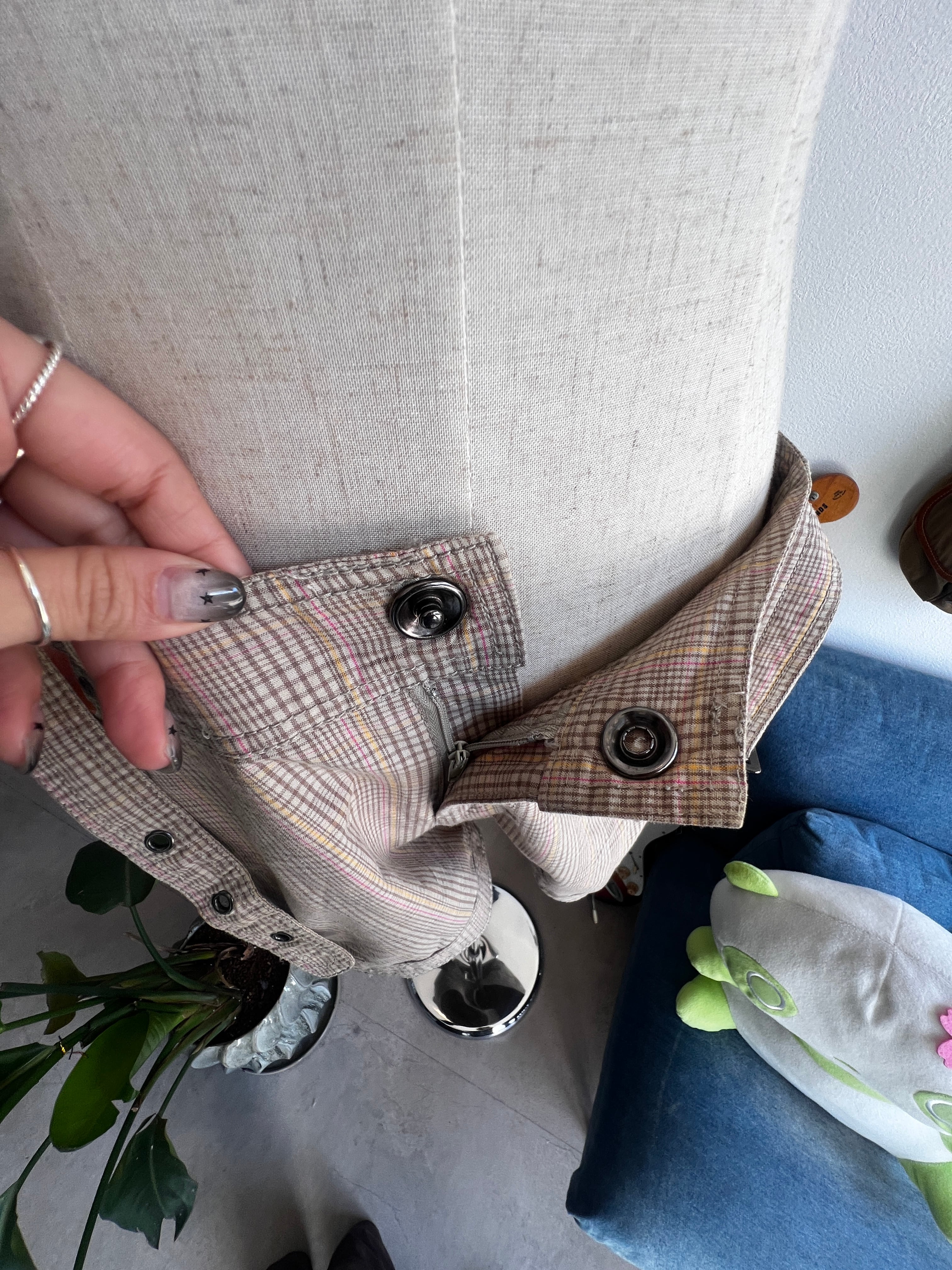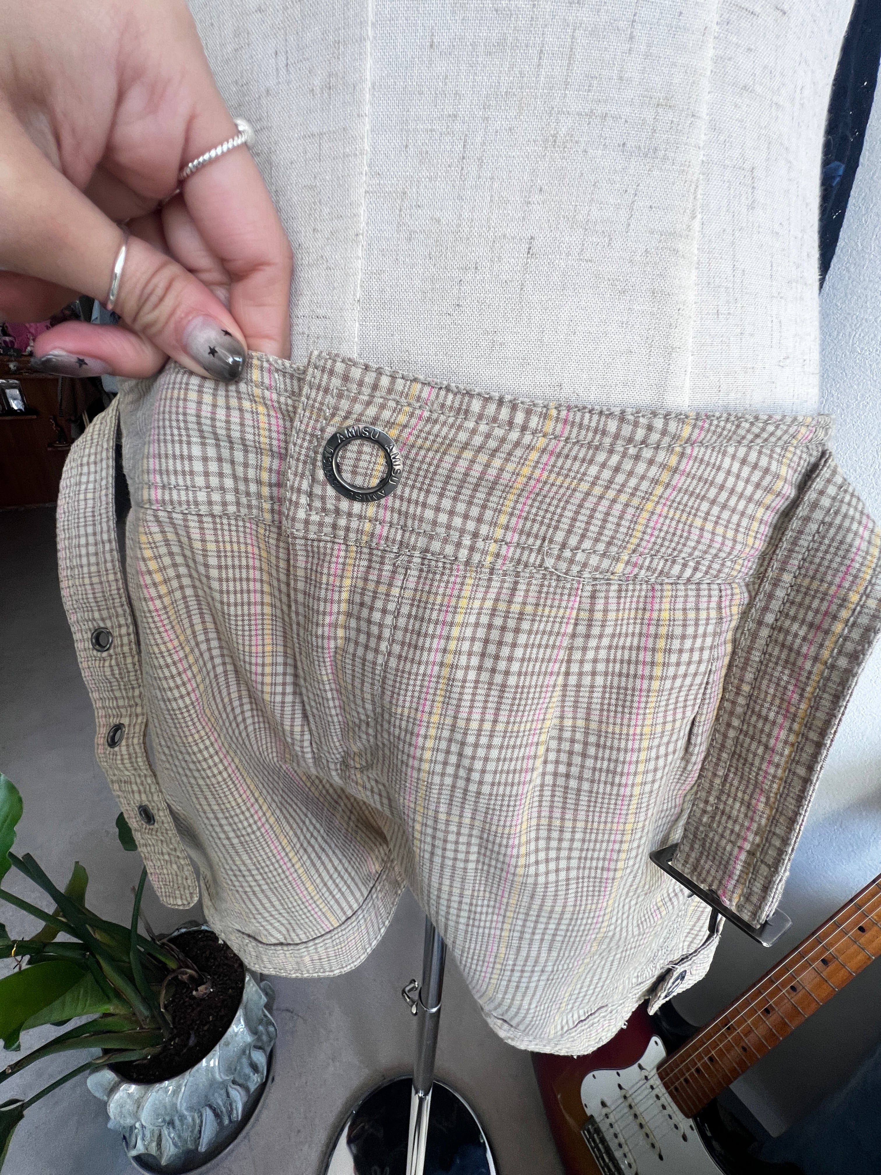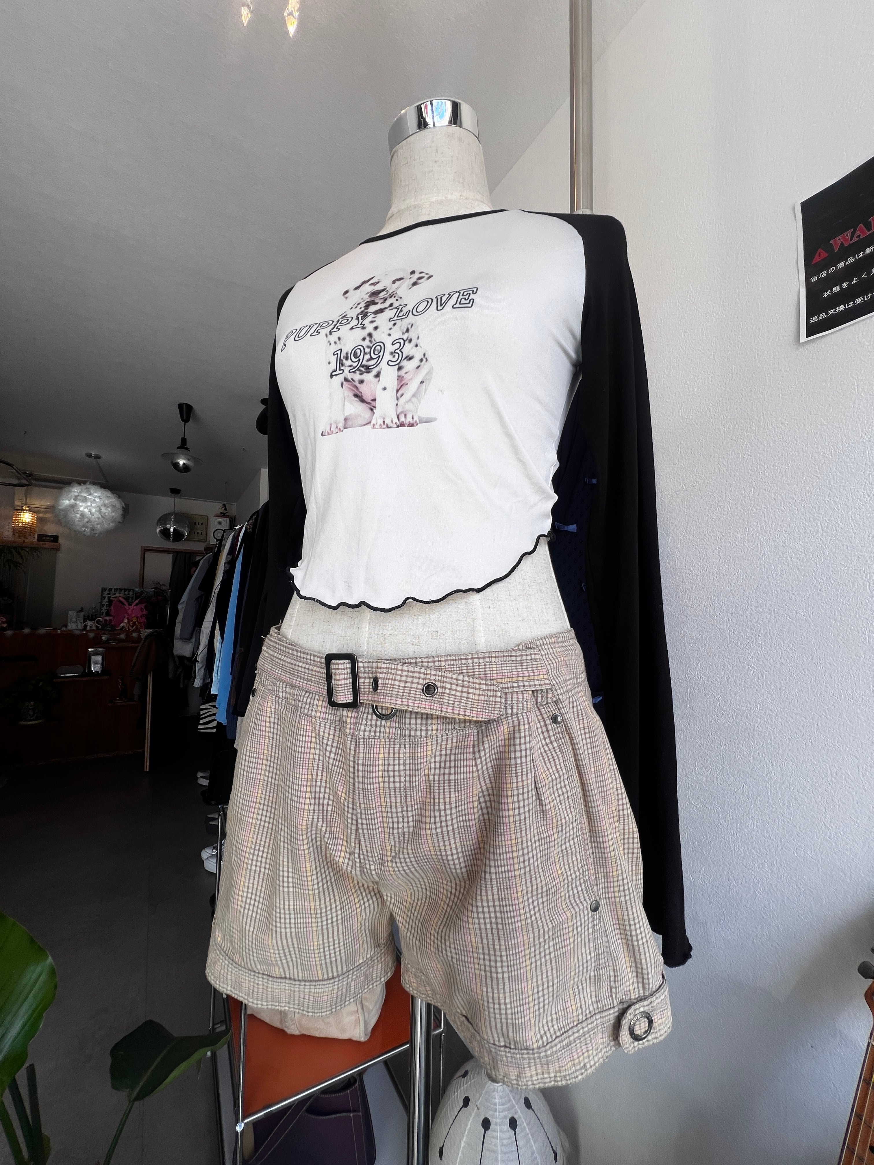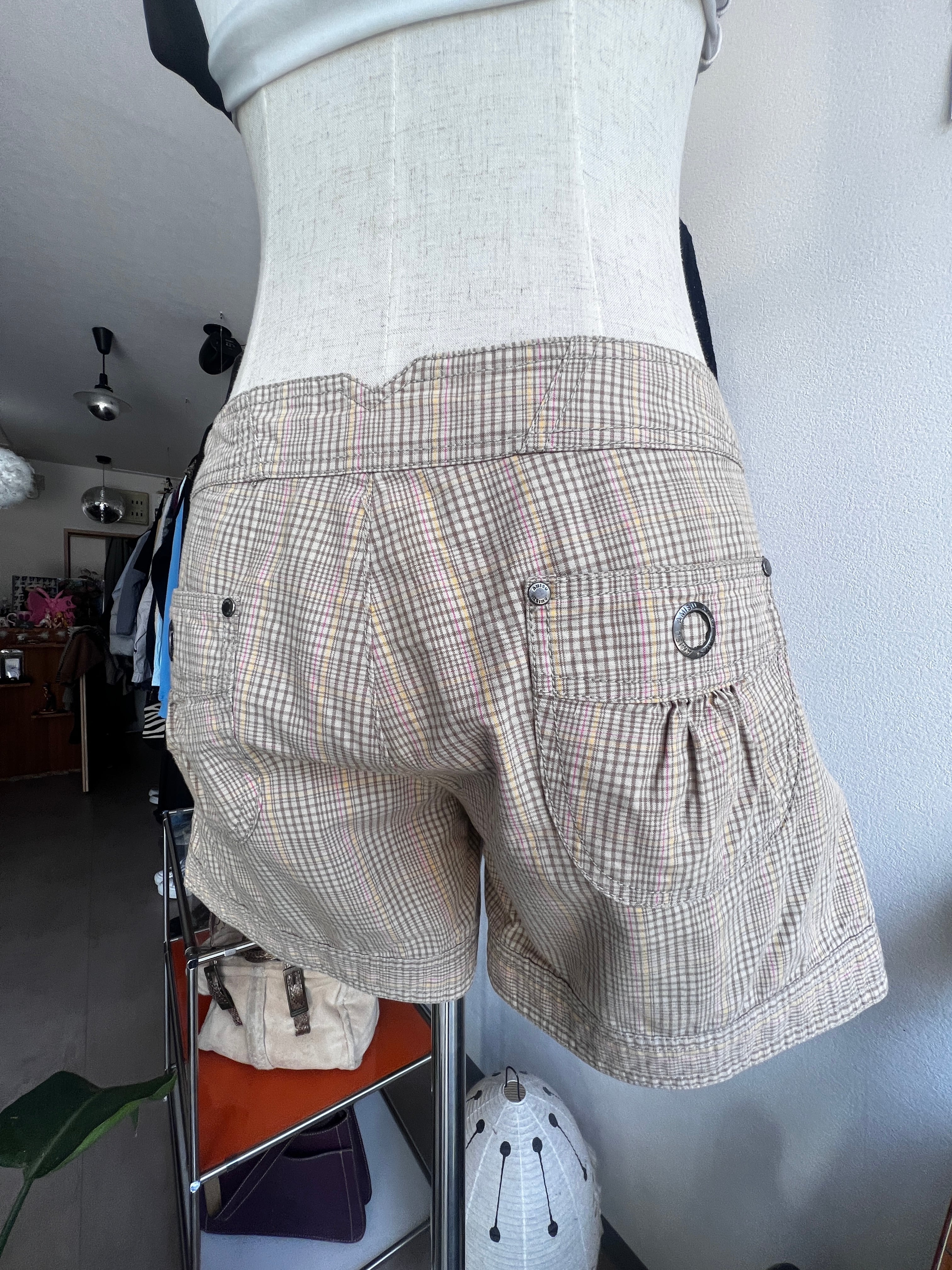 check belt short pants