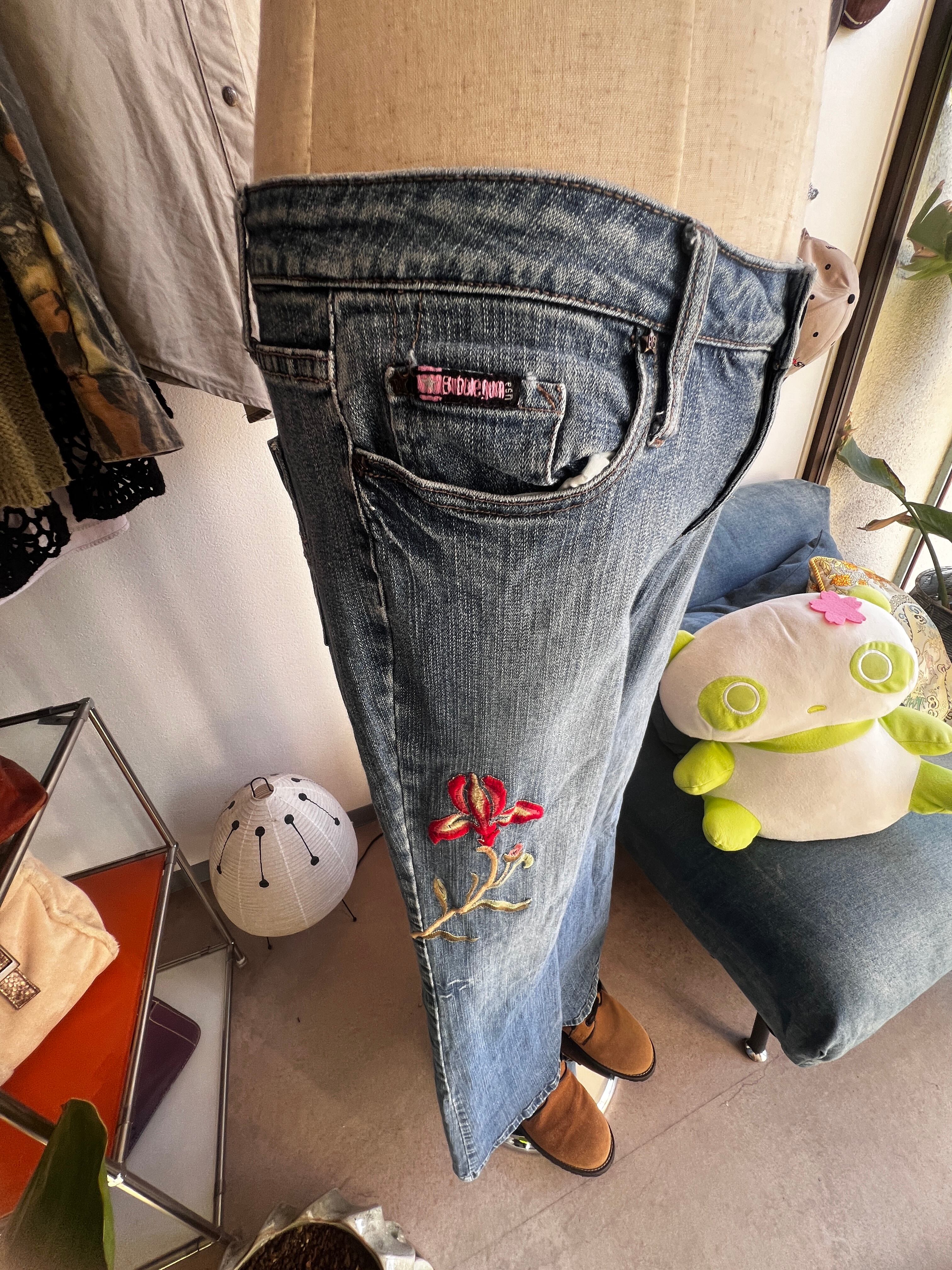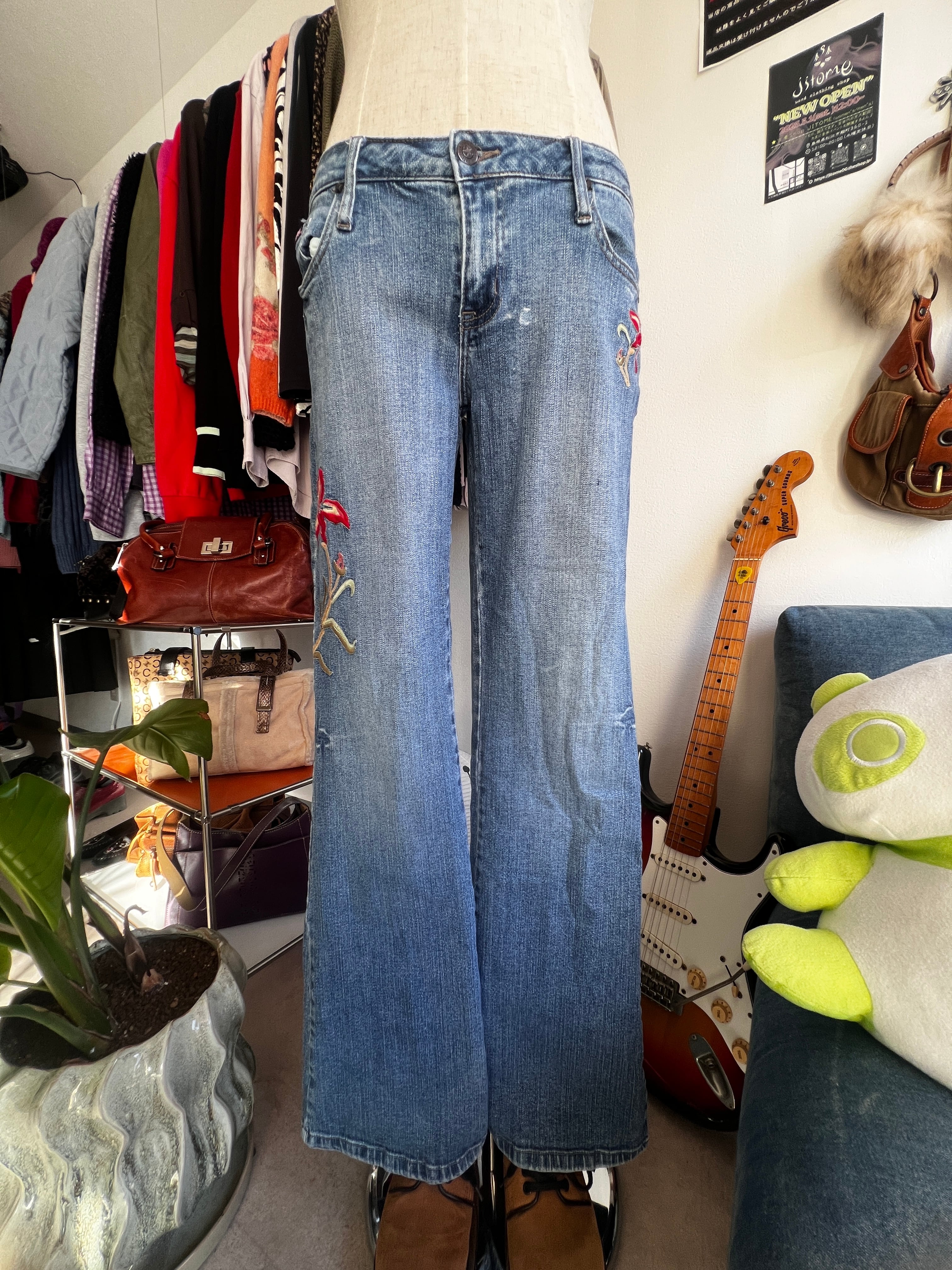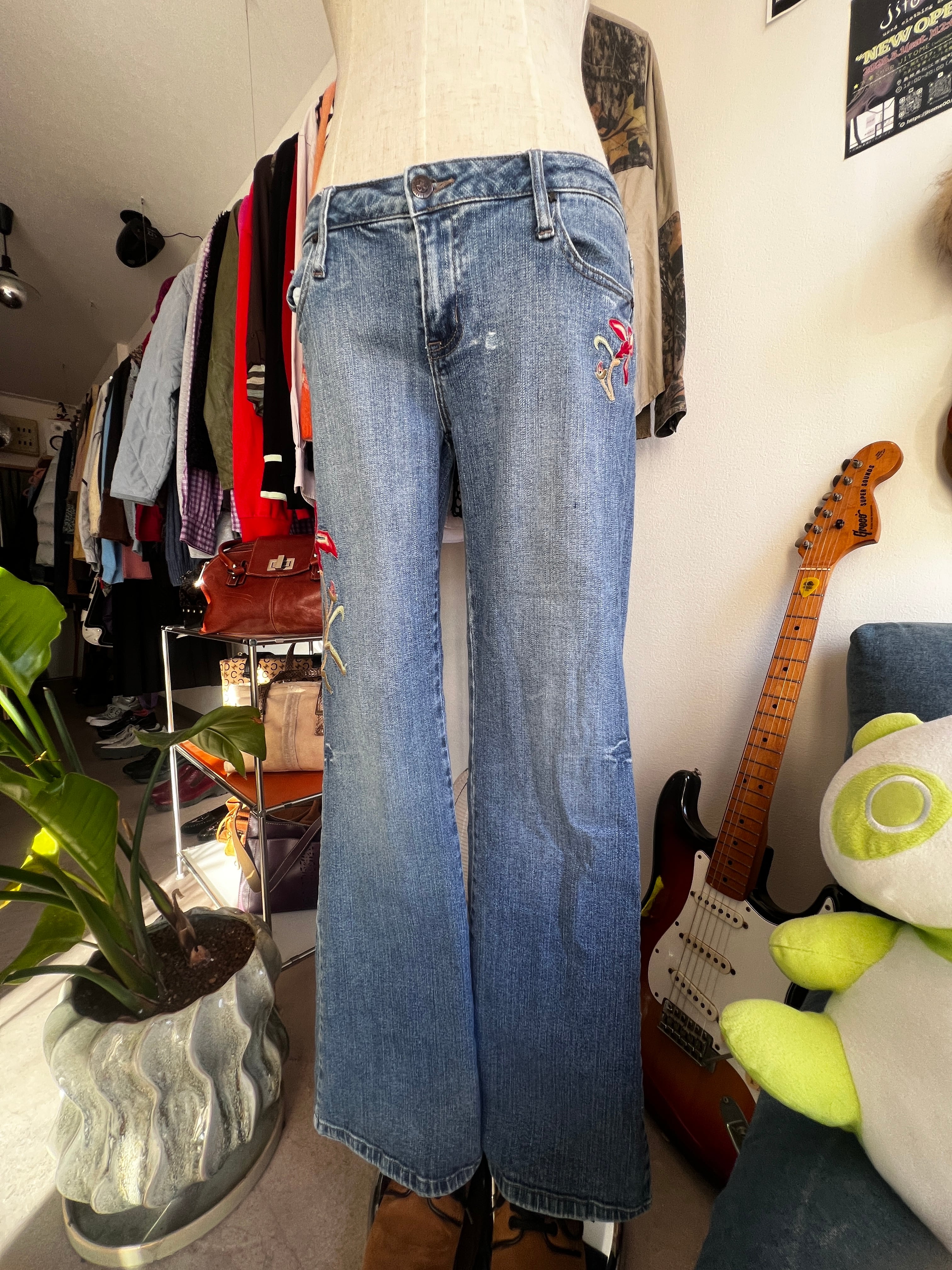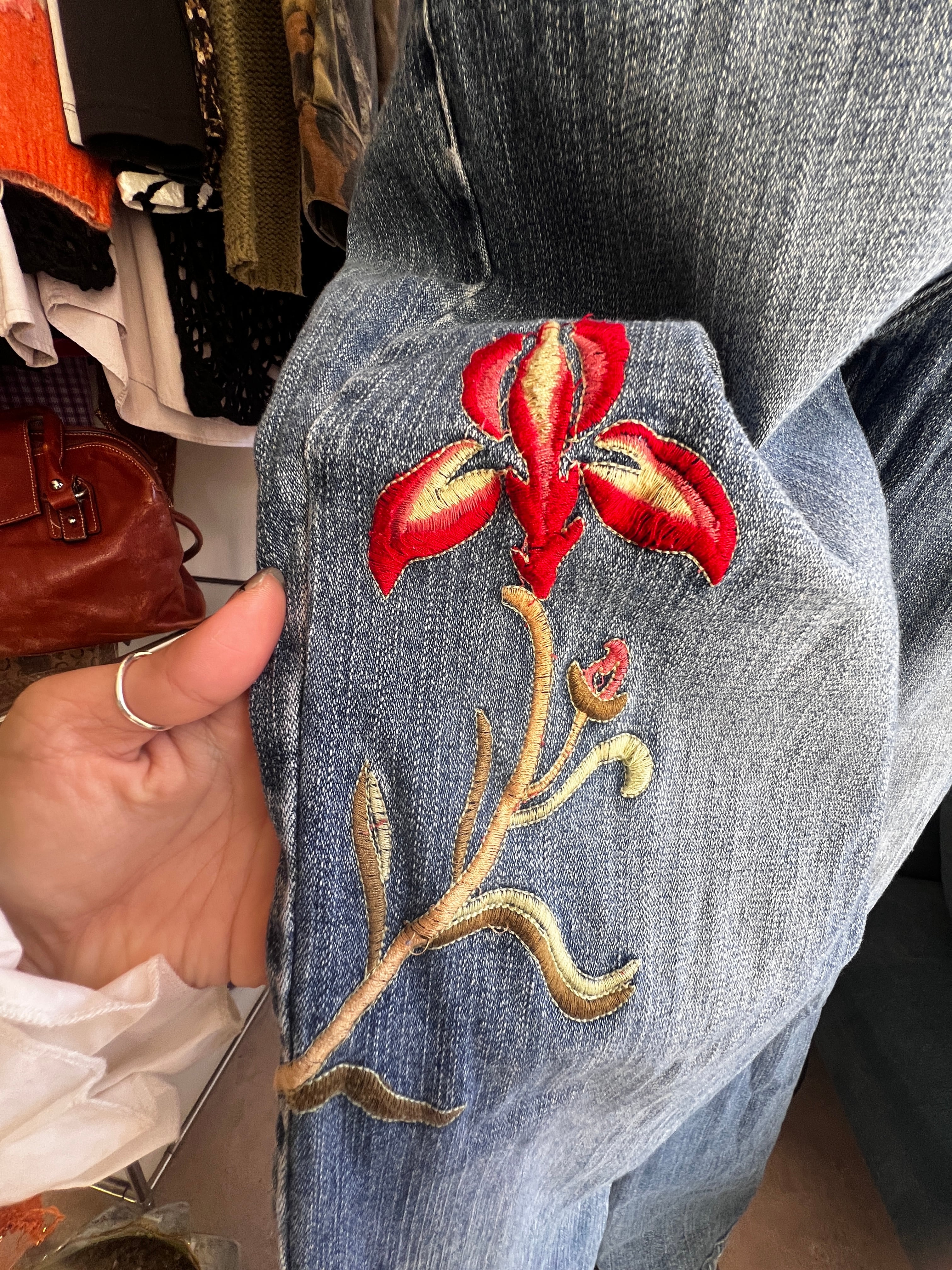 flower embroidery flare denim