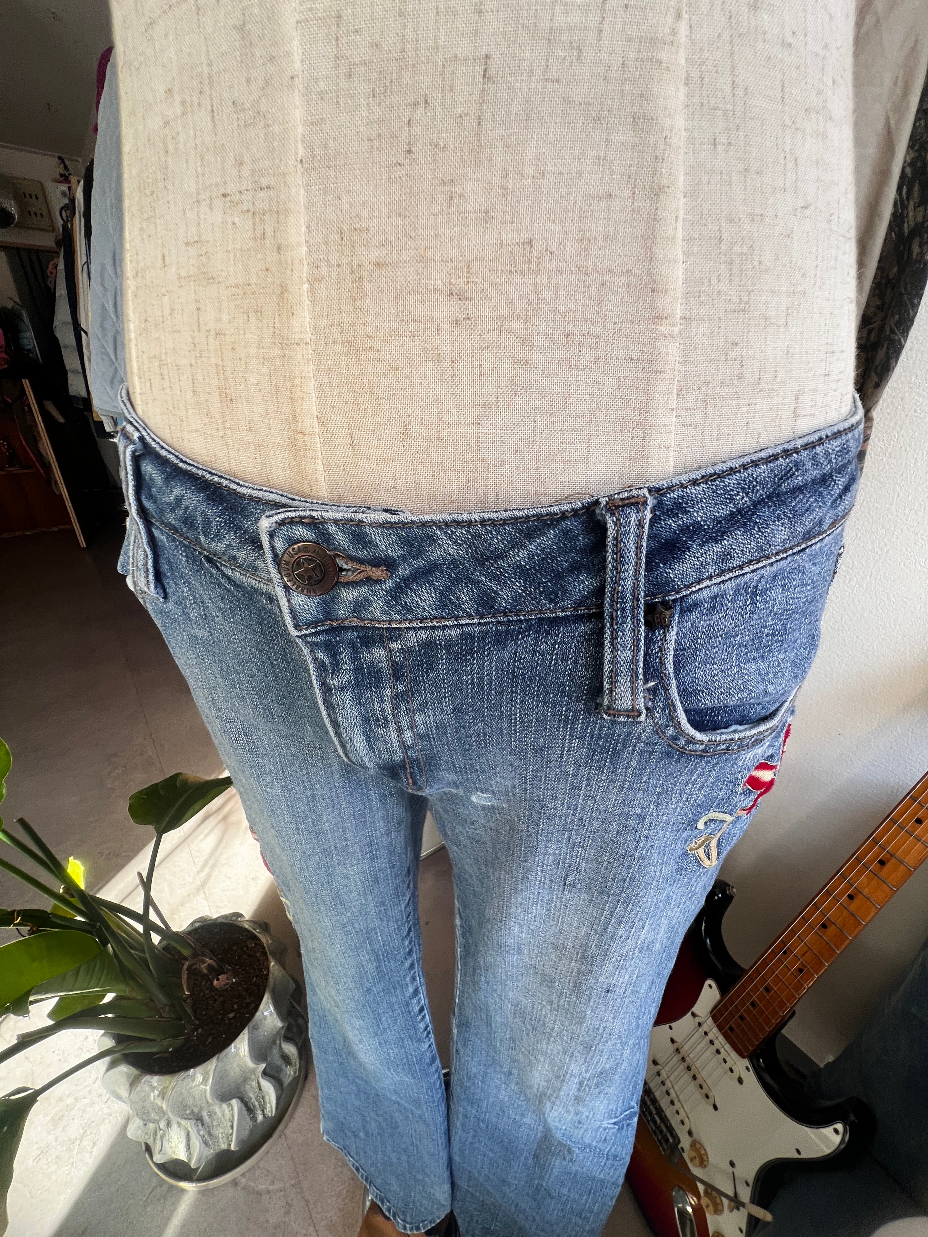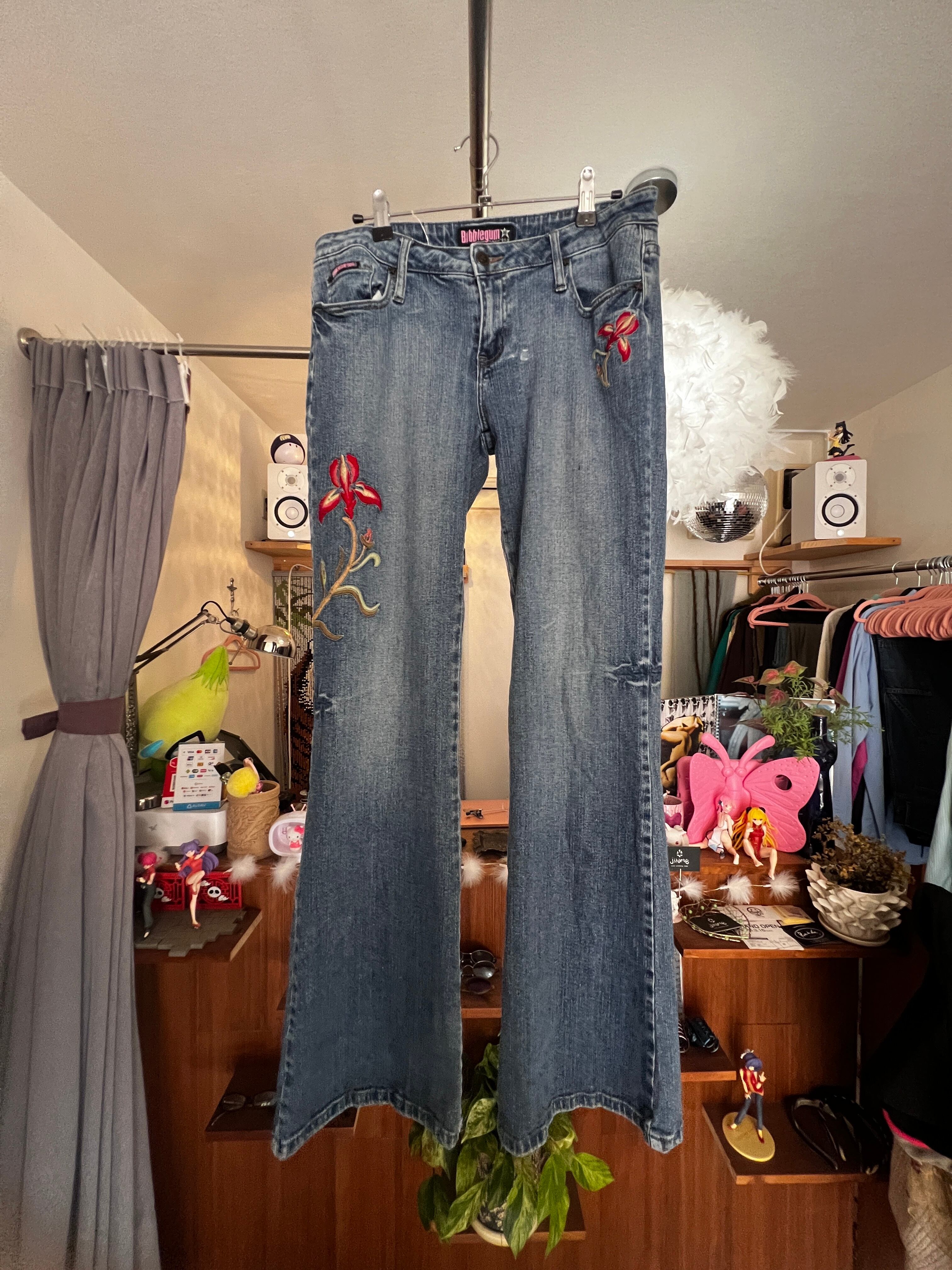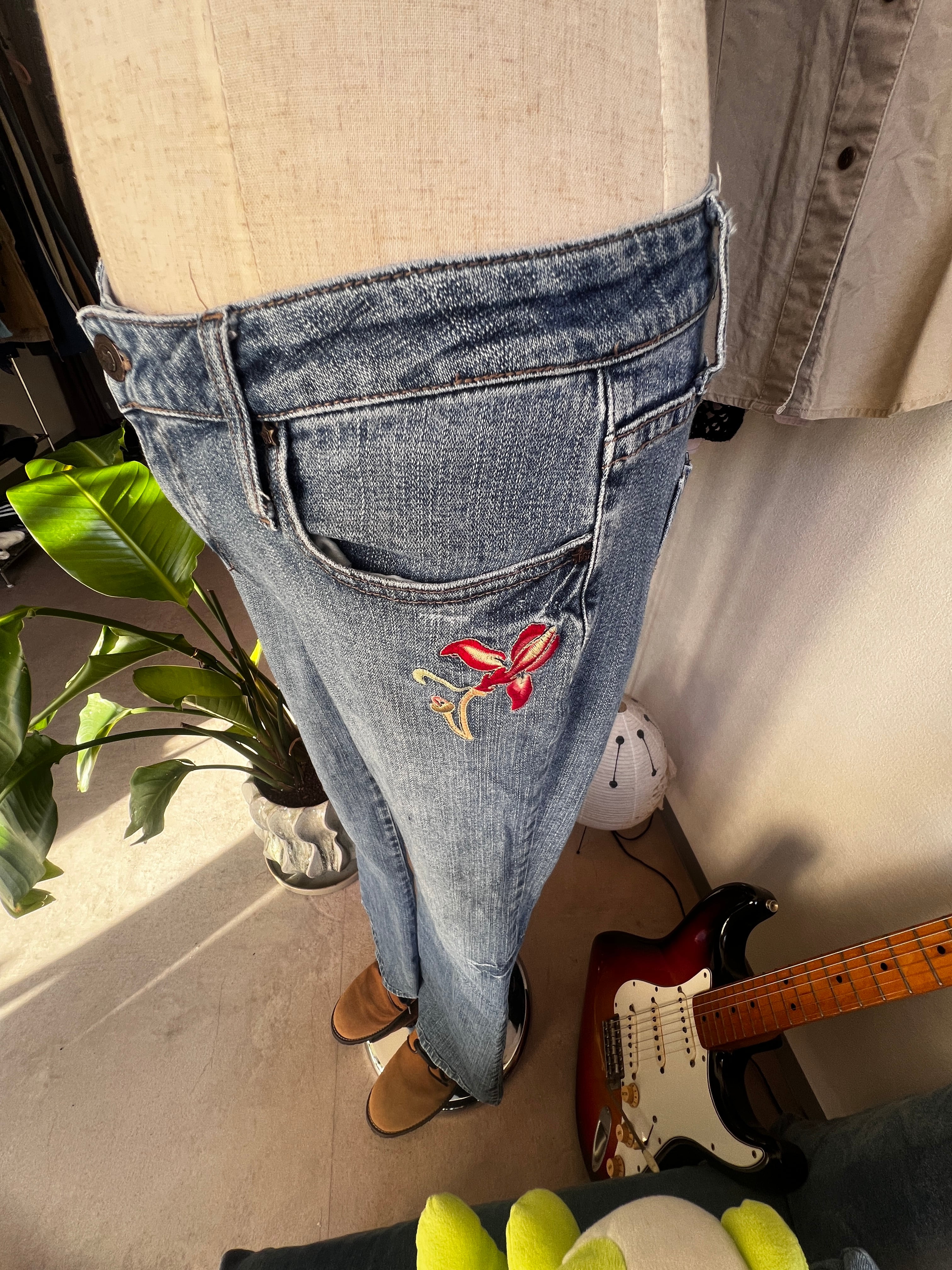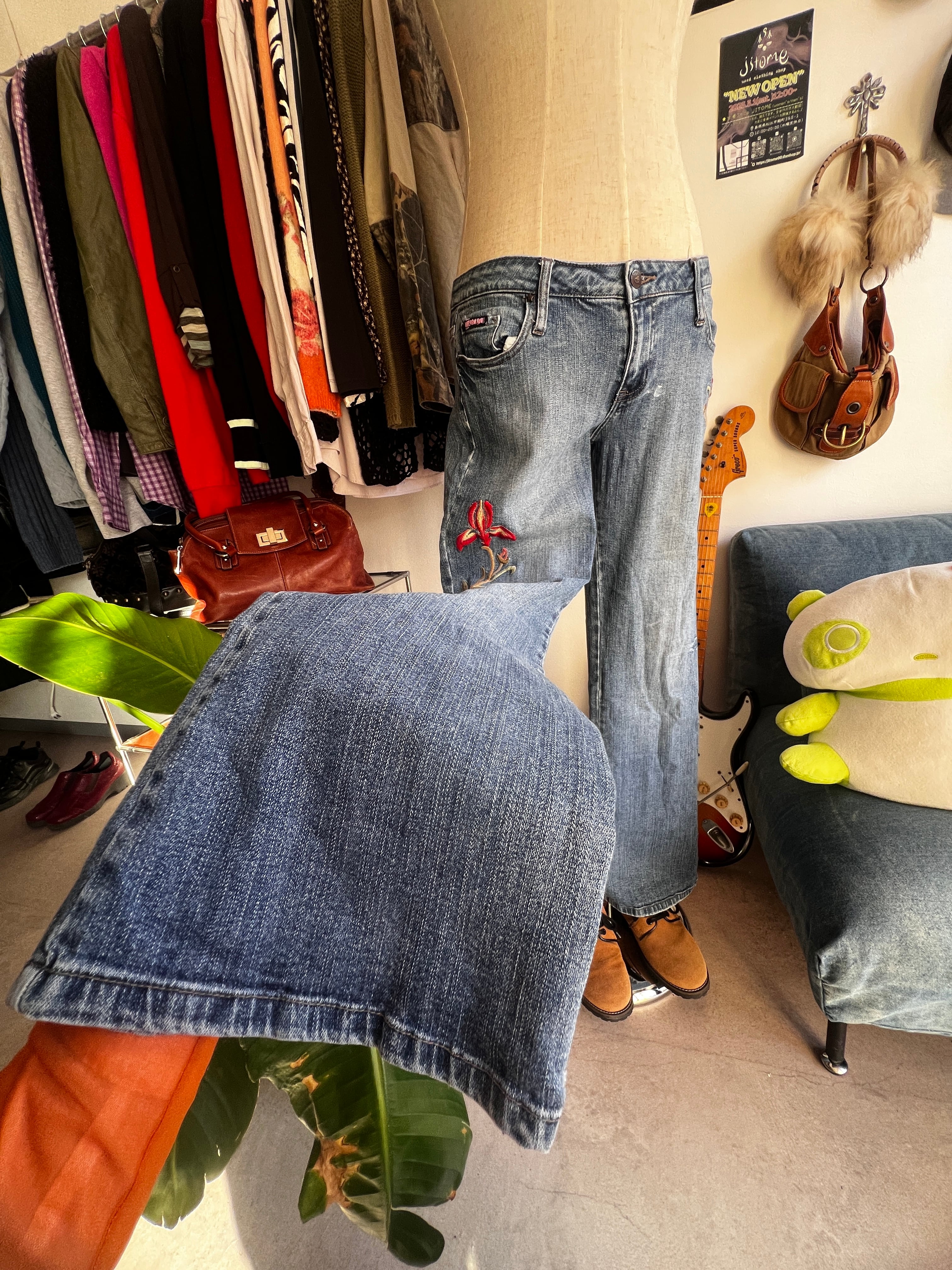 flower embroidery flare denim