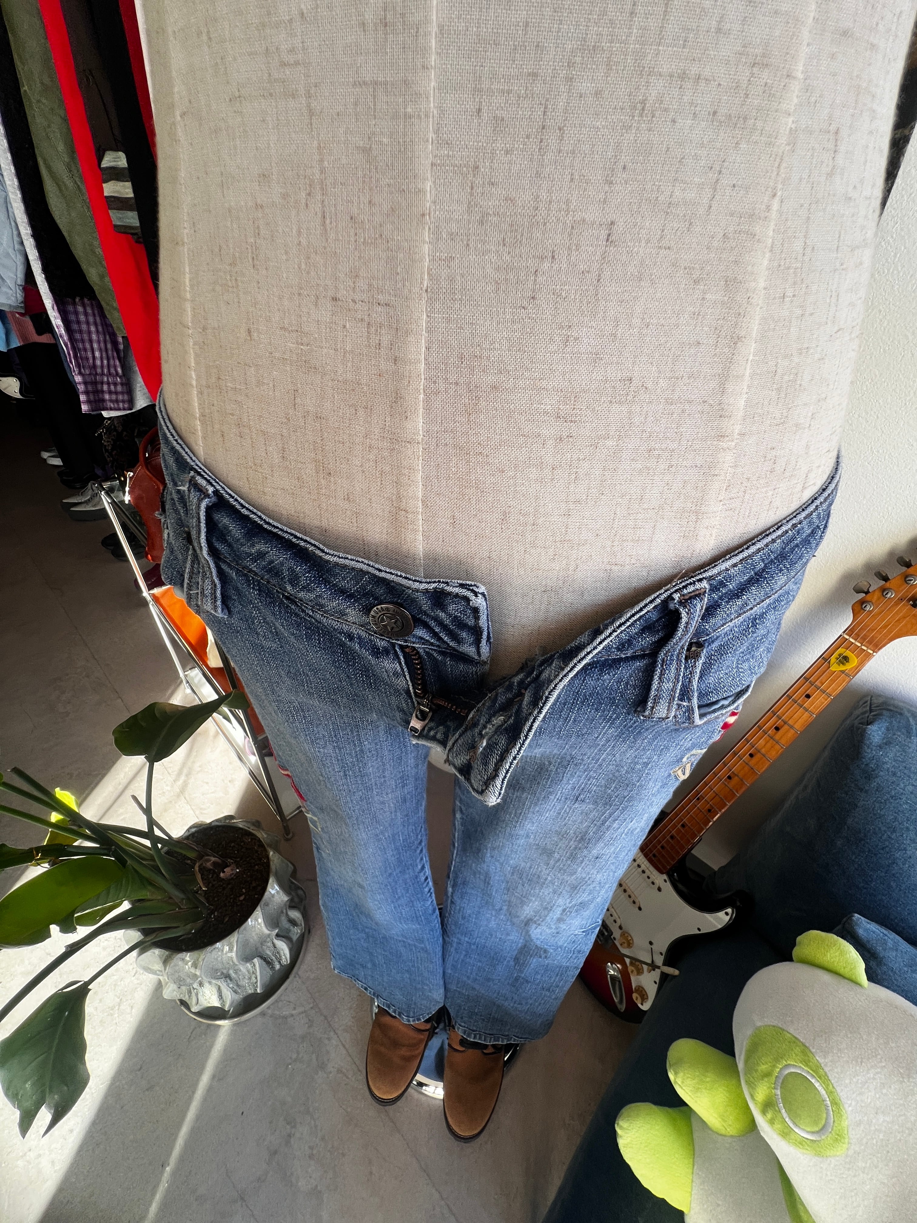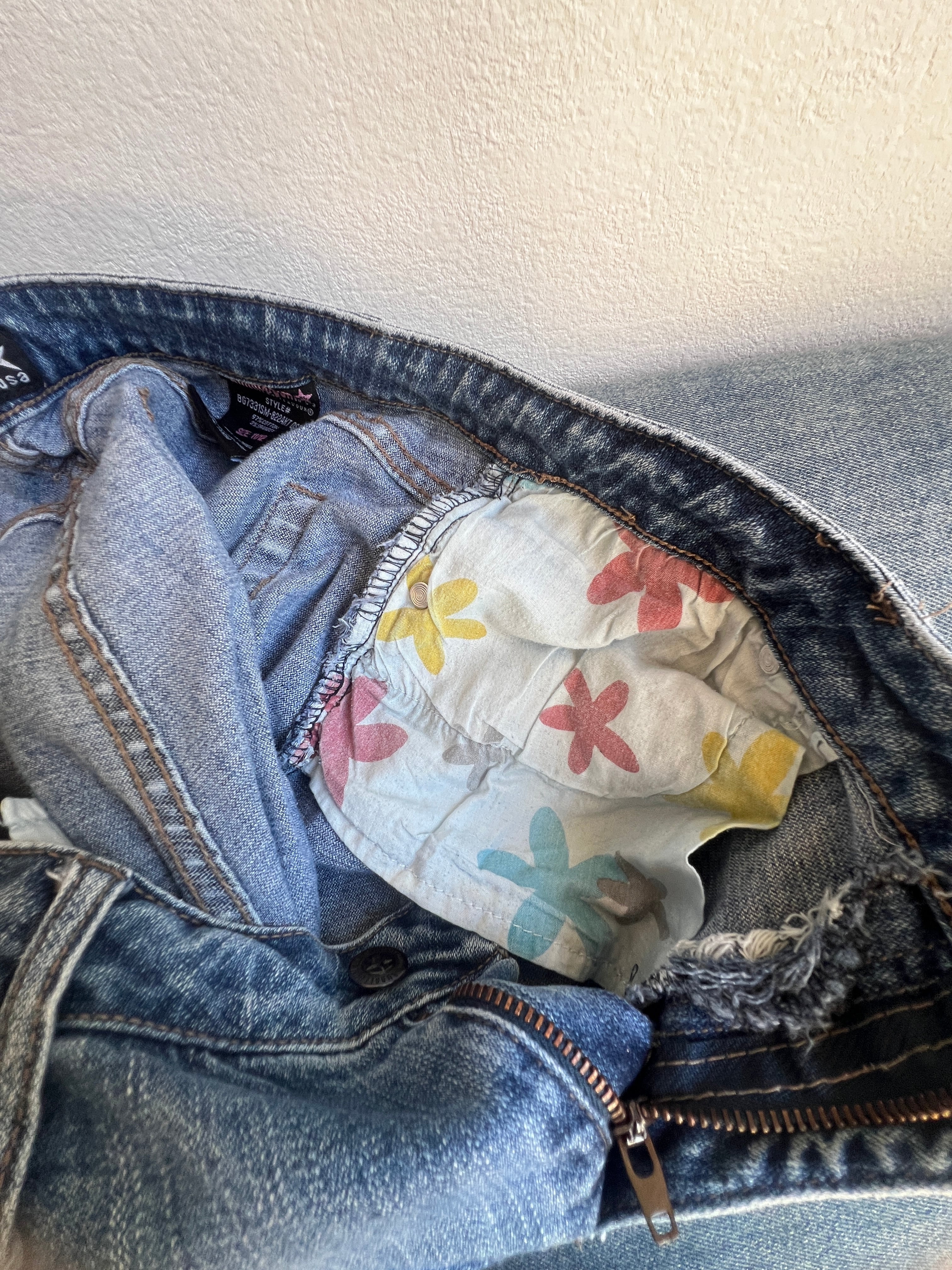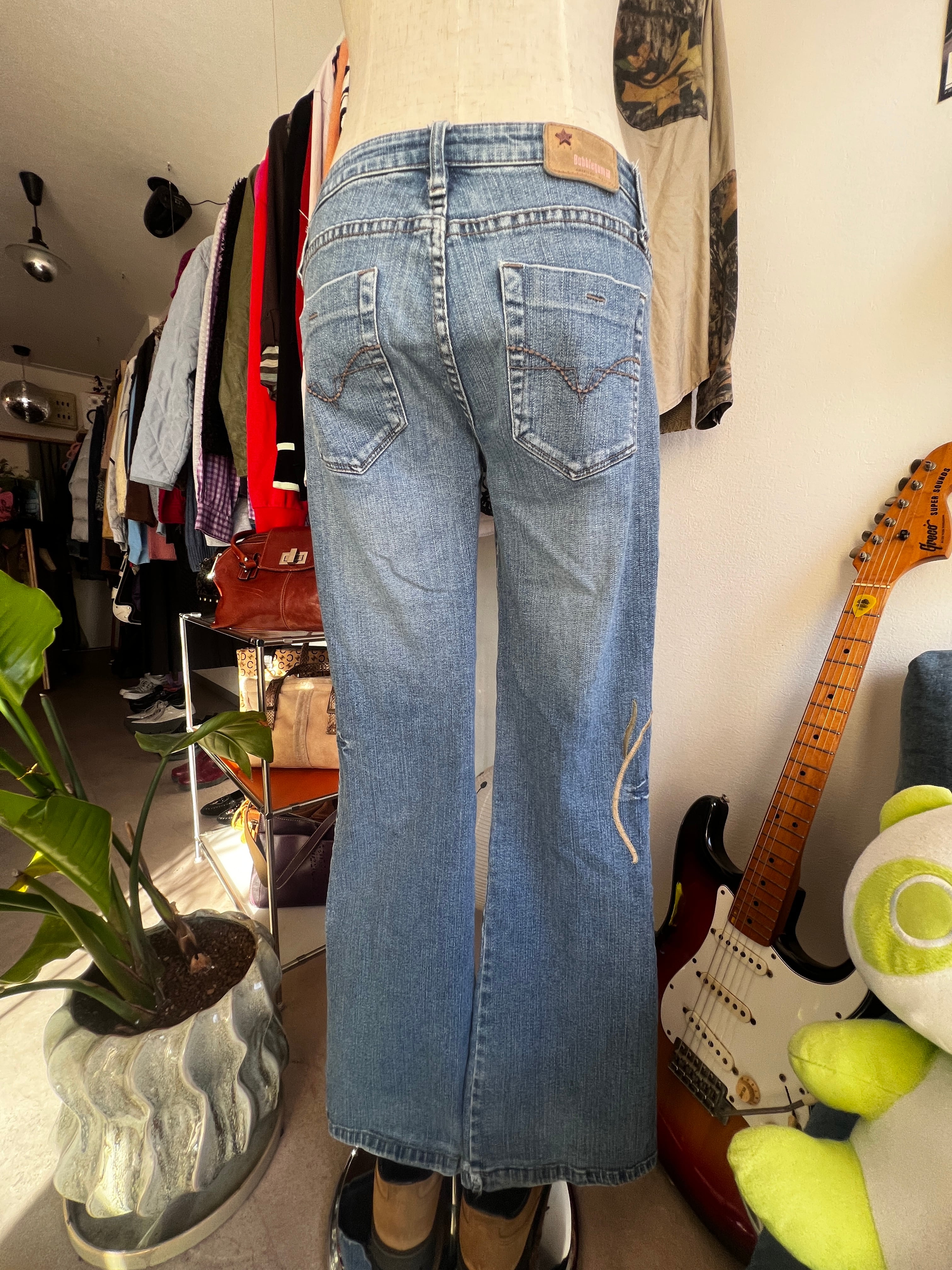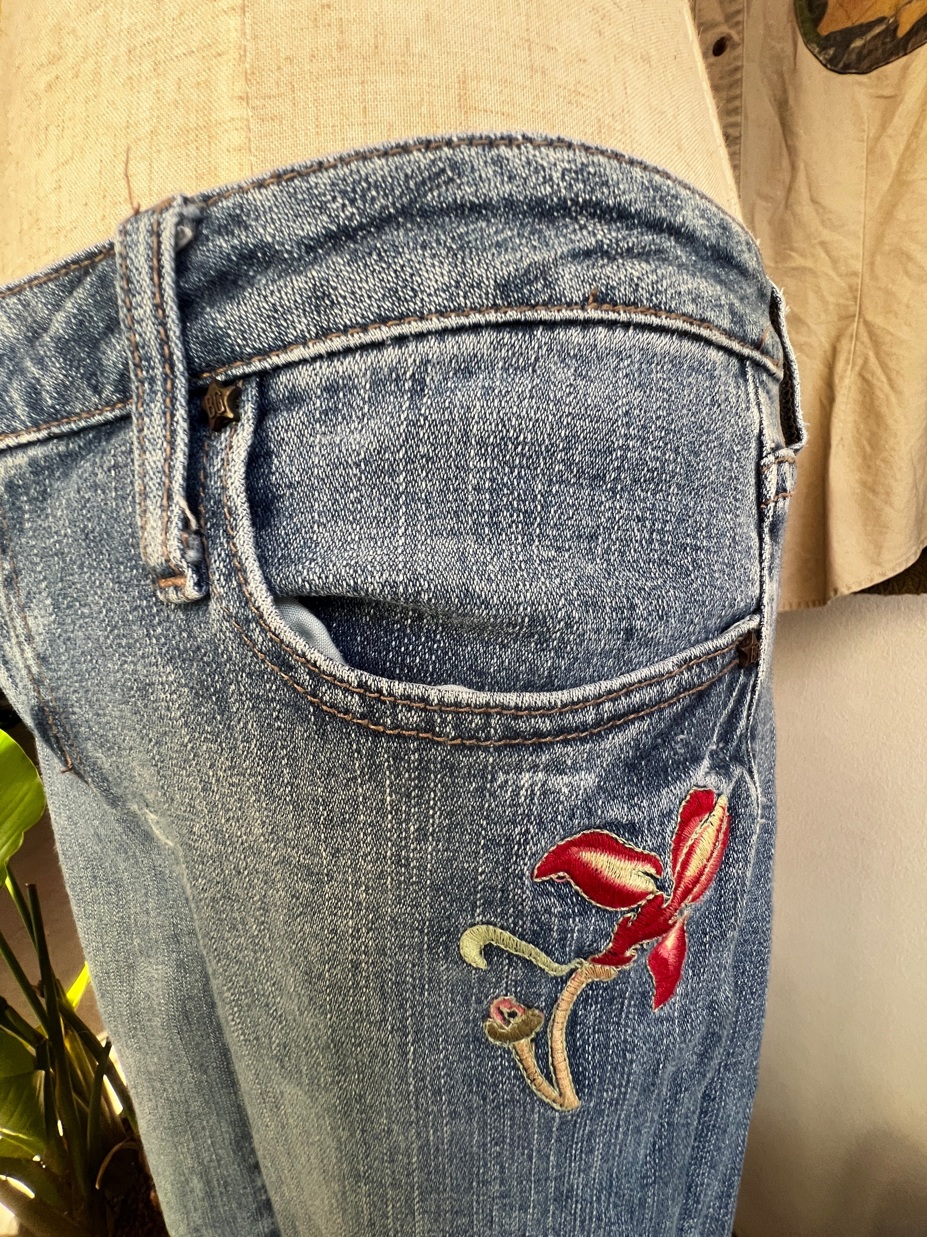 flower embroidery flare denim