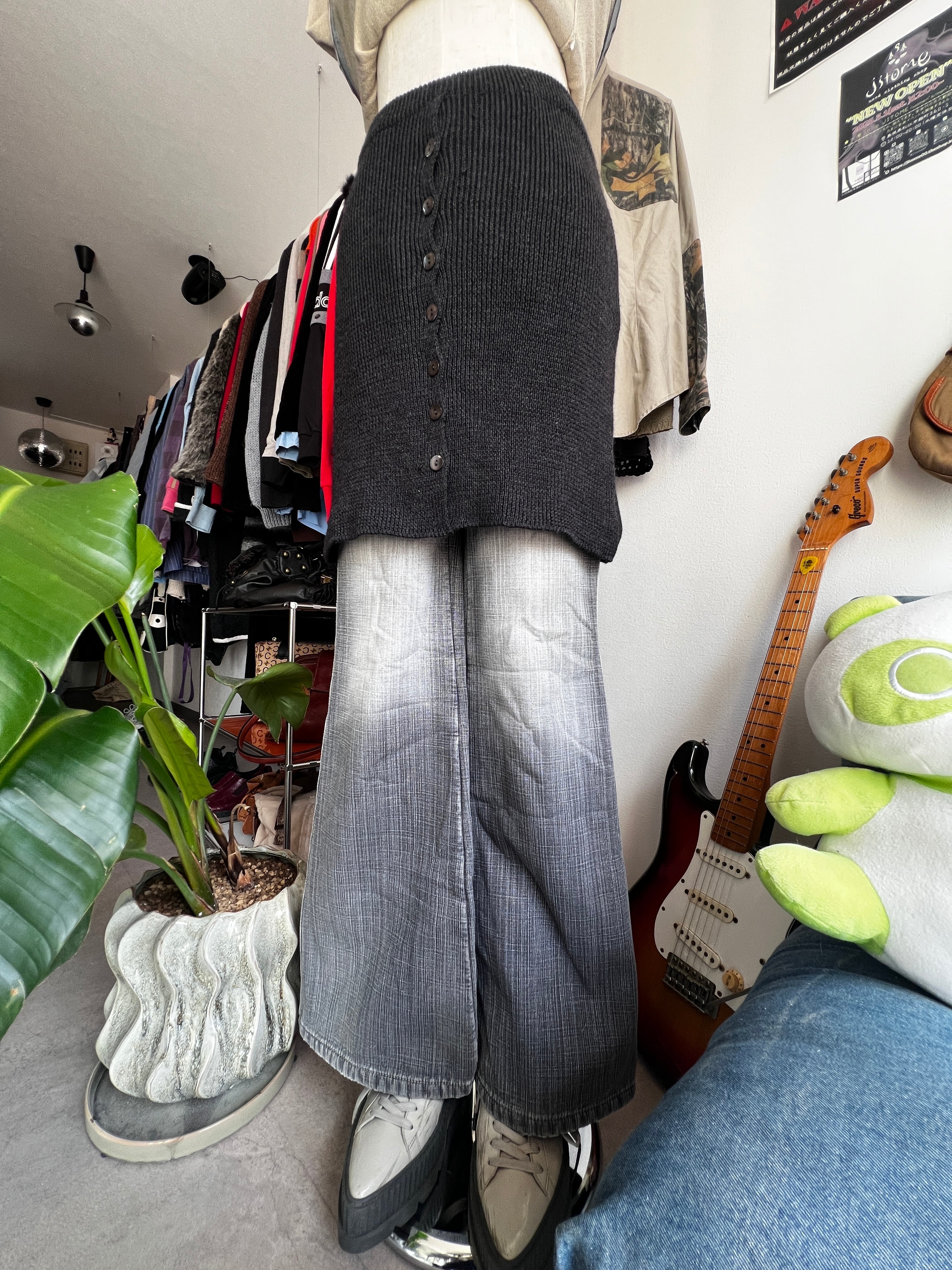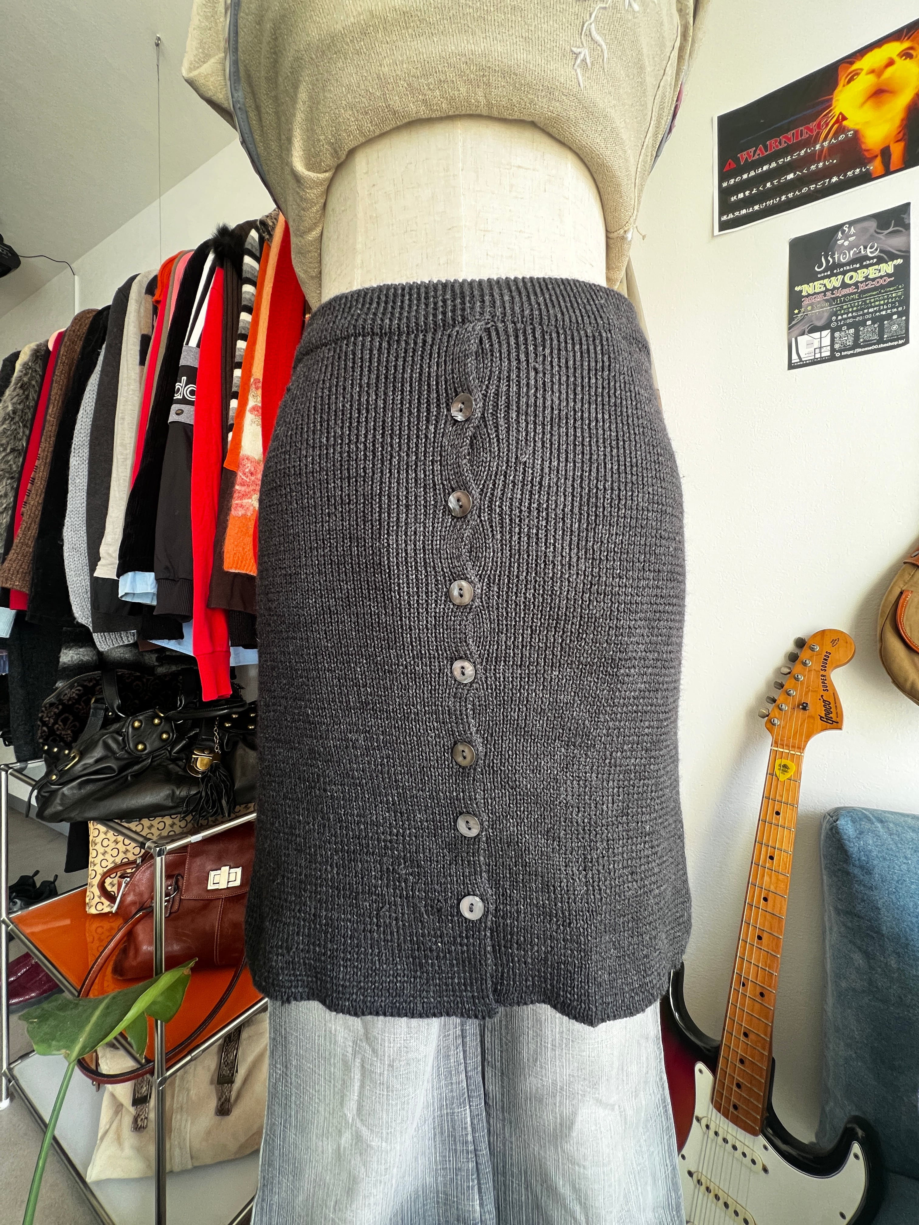knit button skirt