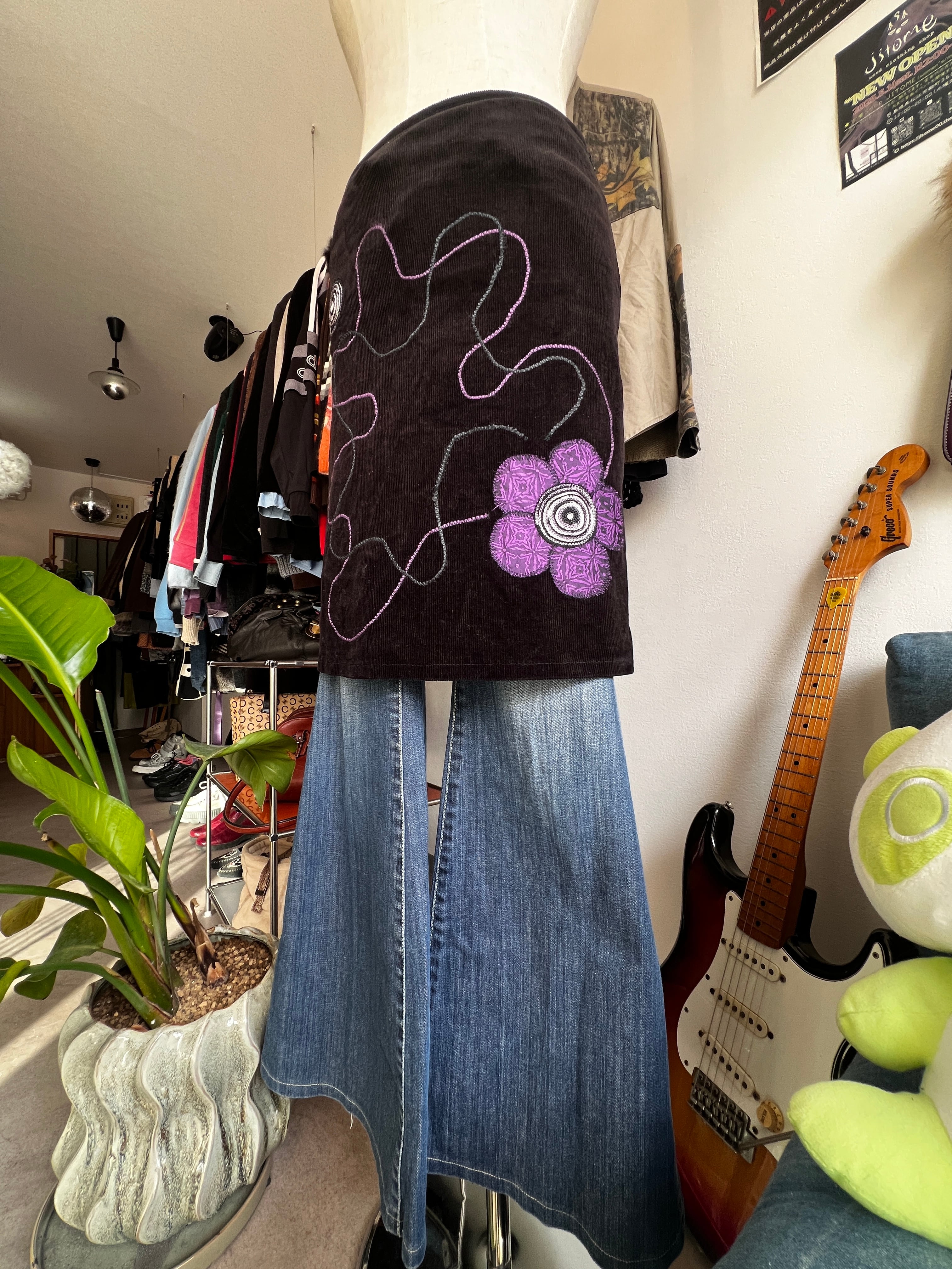 embroidery corduroy skirt