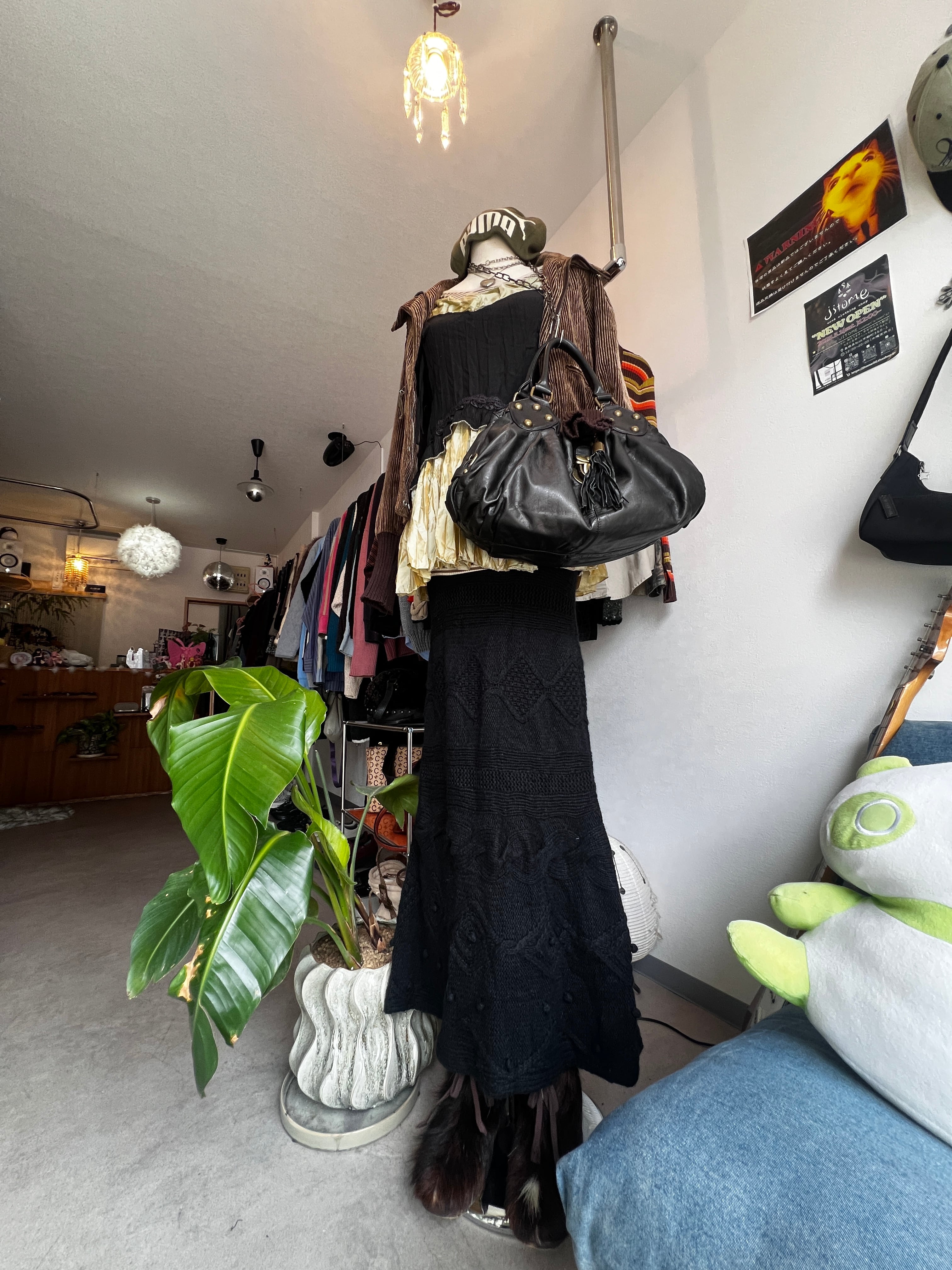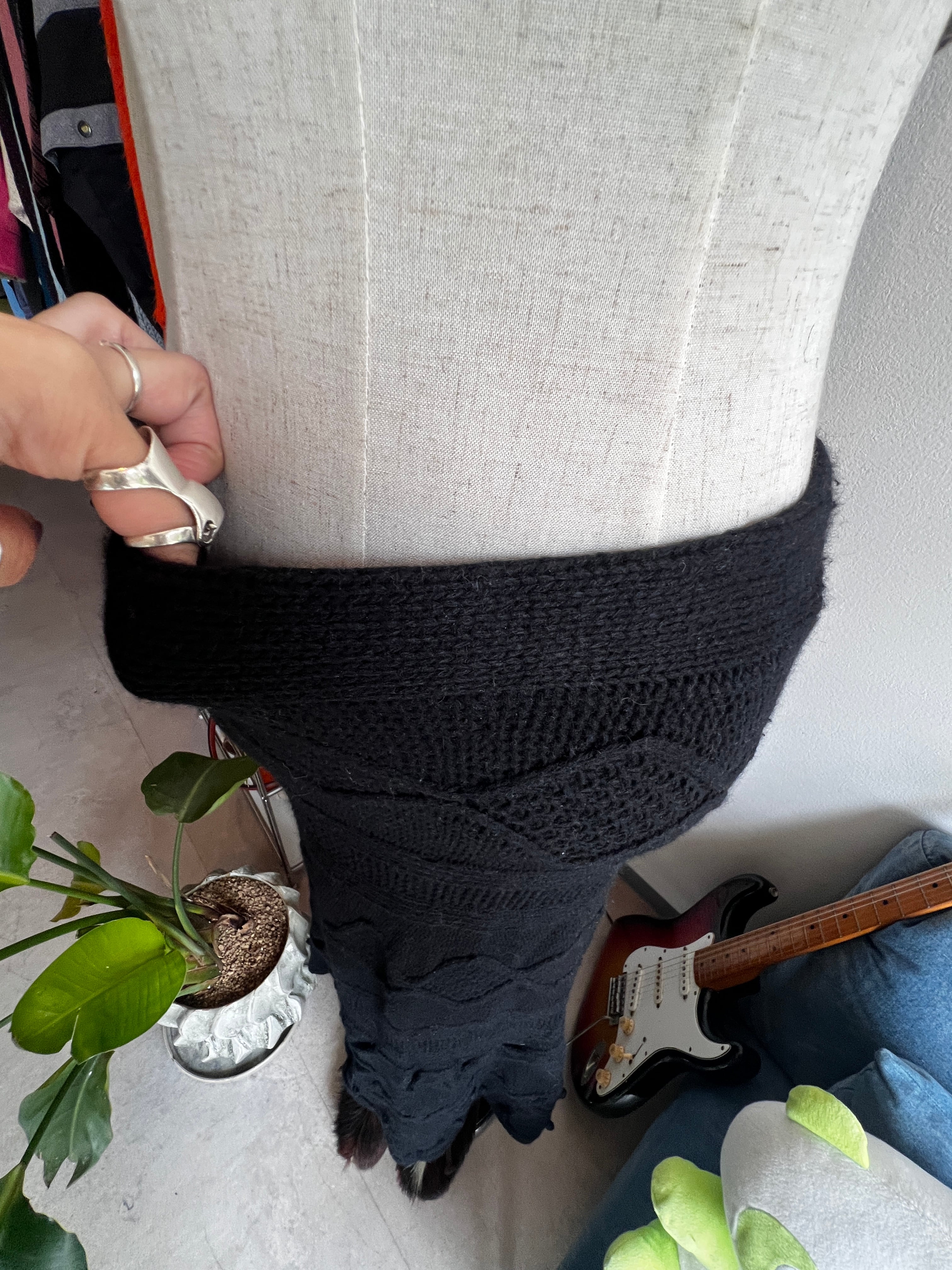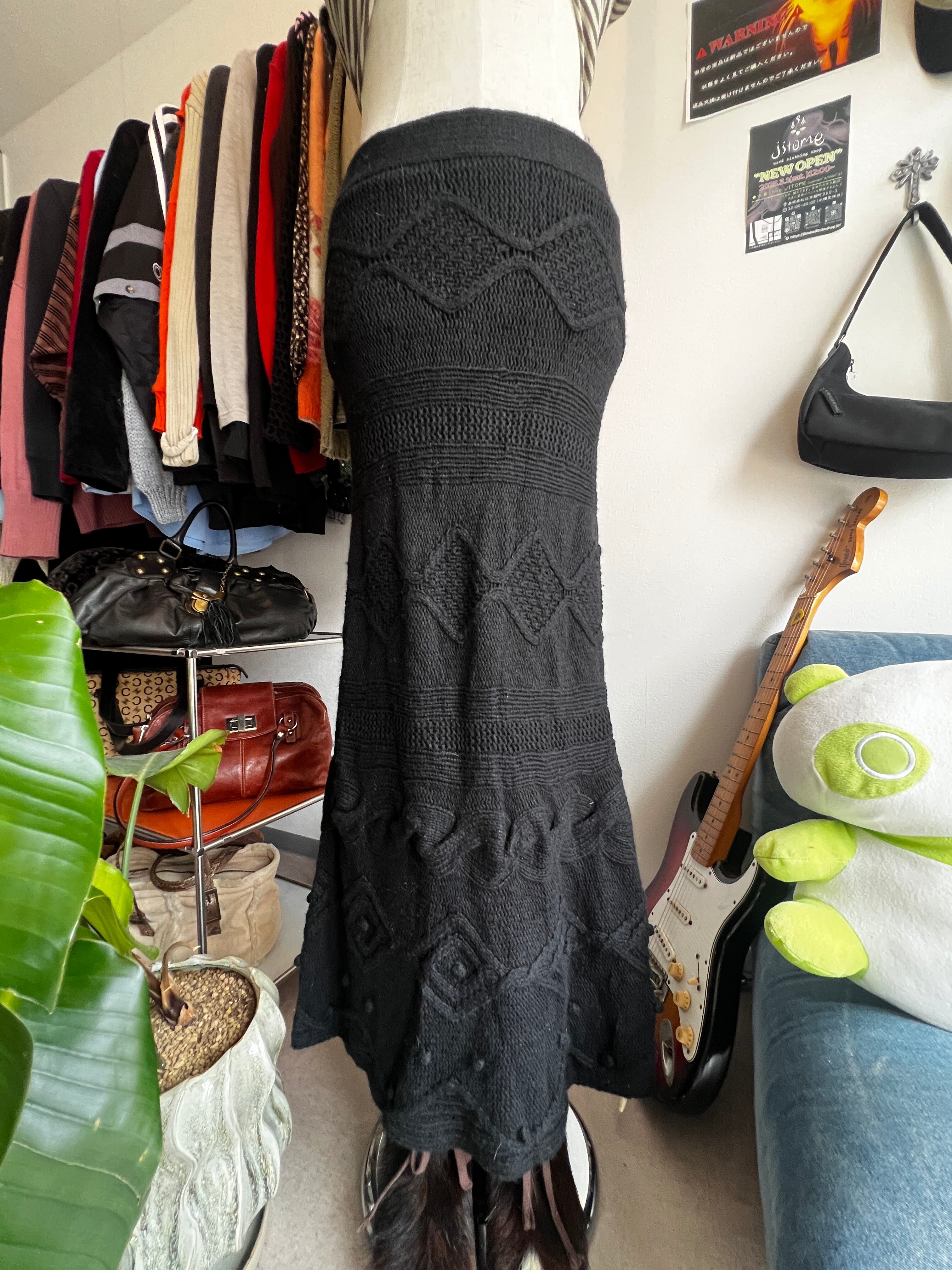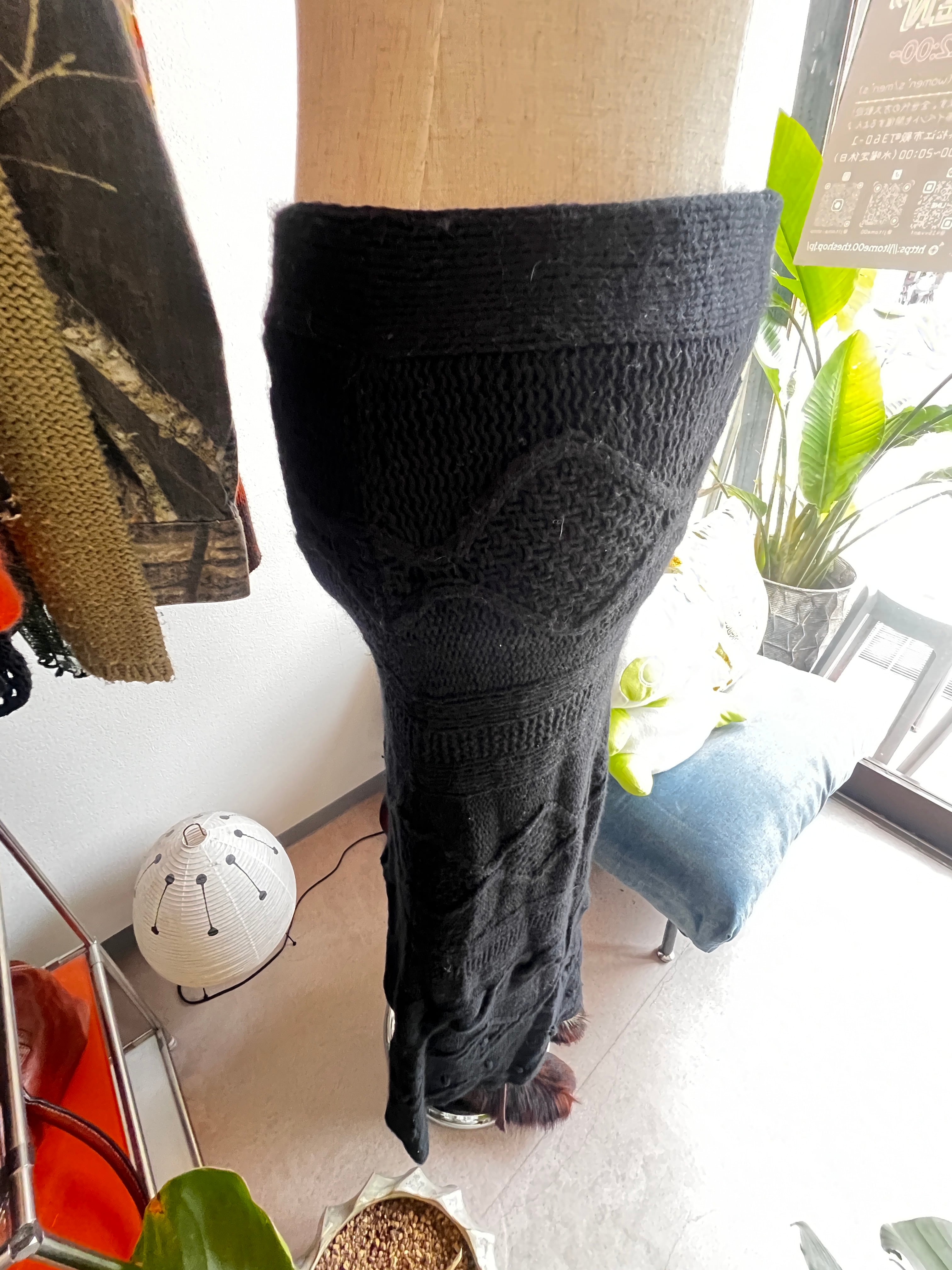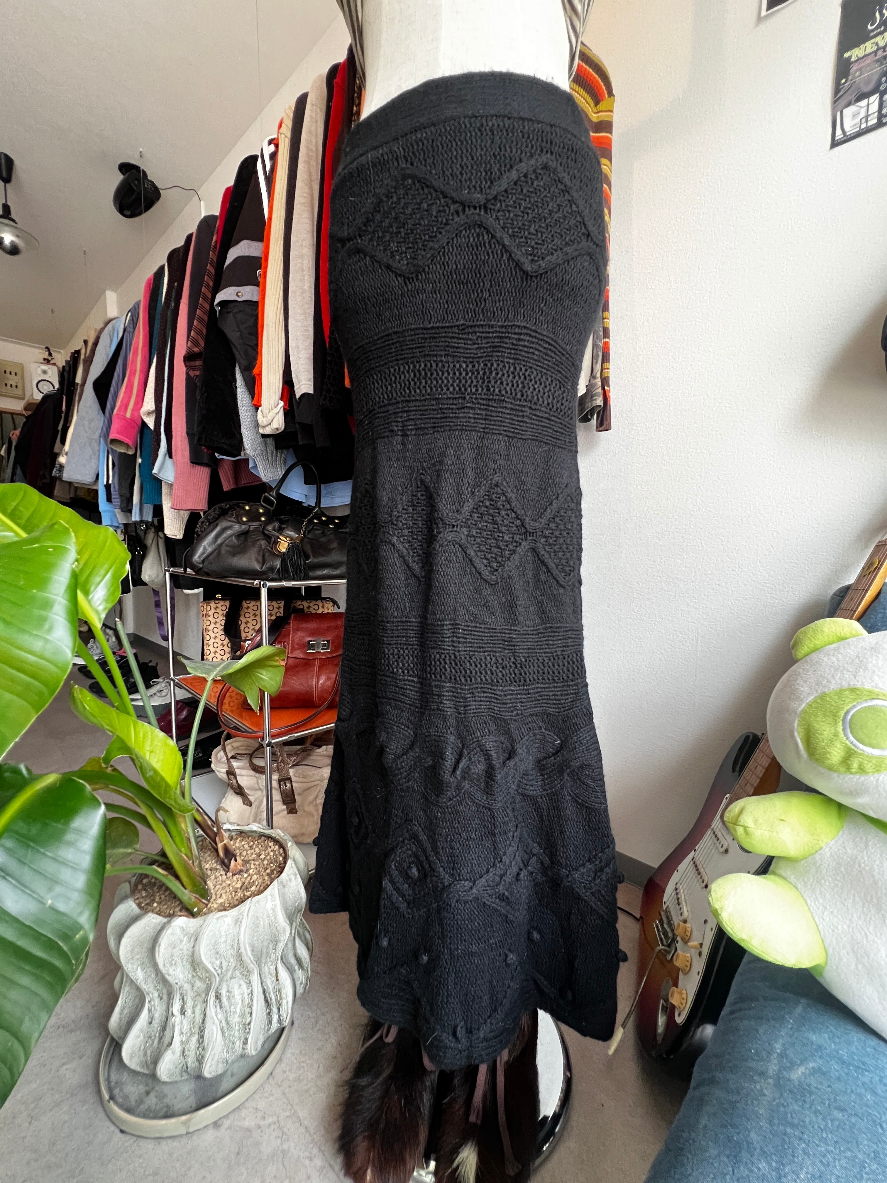 black knit long skirt