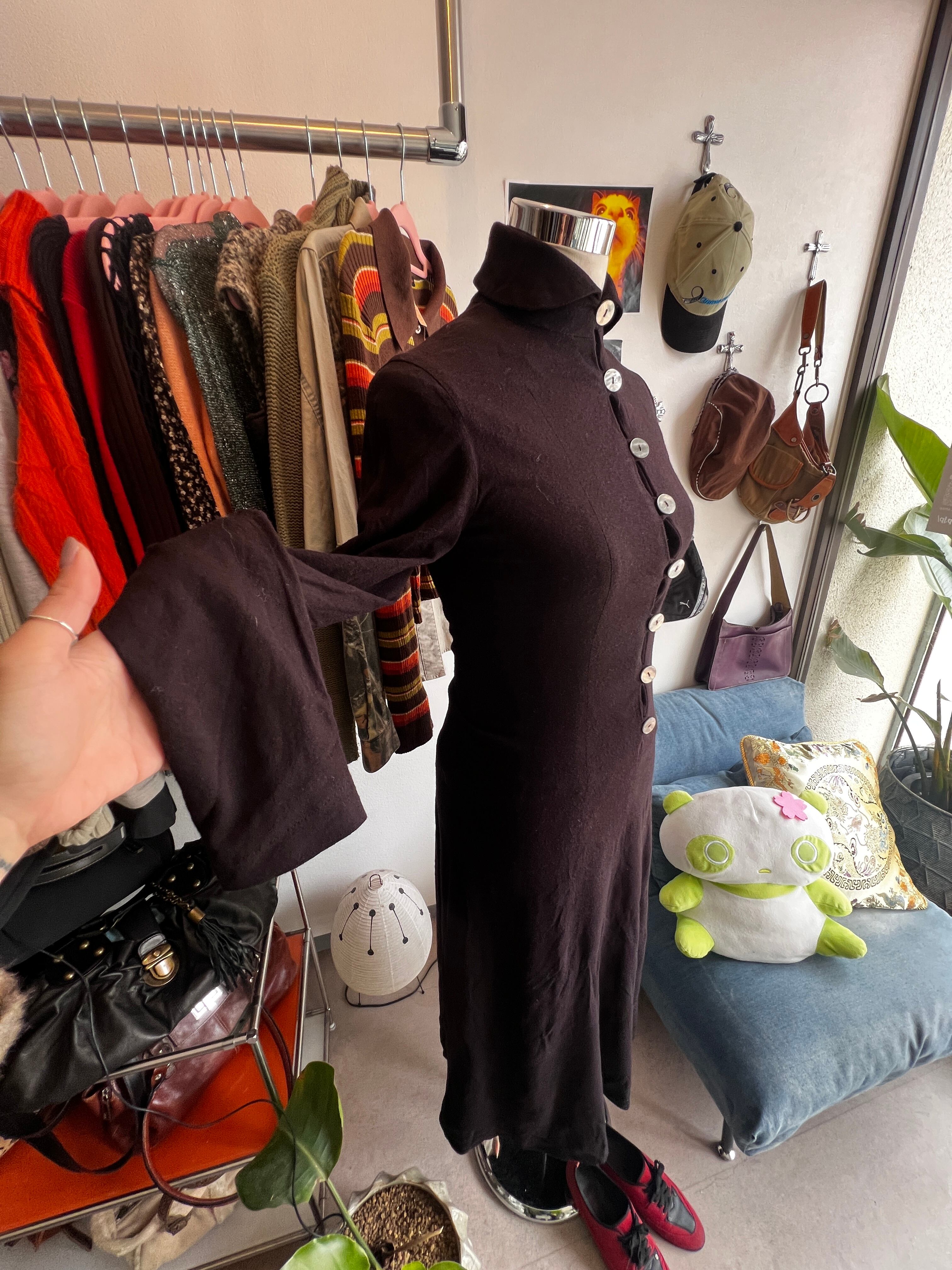 ハイネックで折り返す襟も可愛いポイント♡