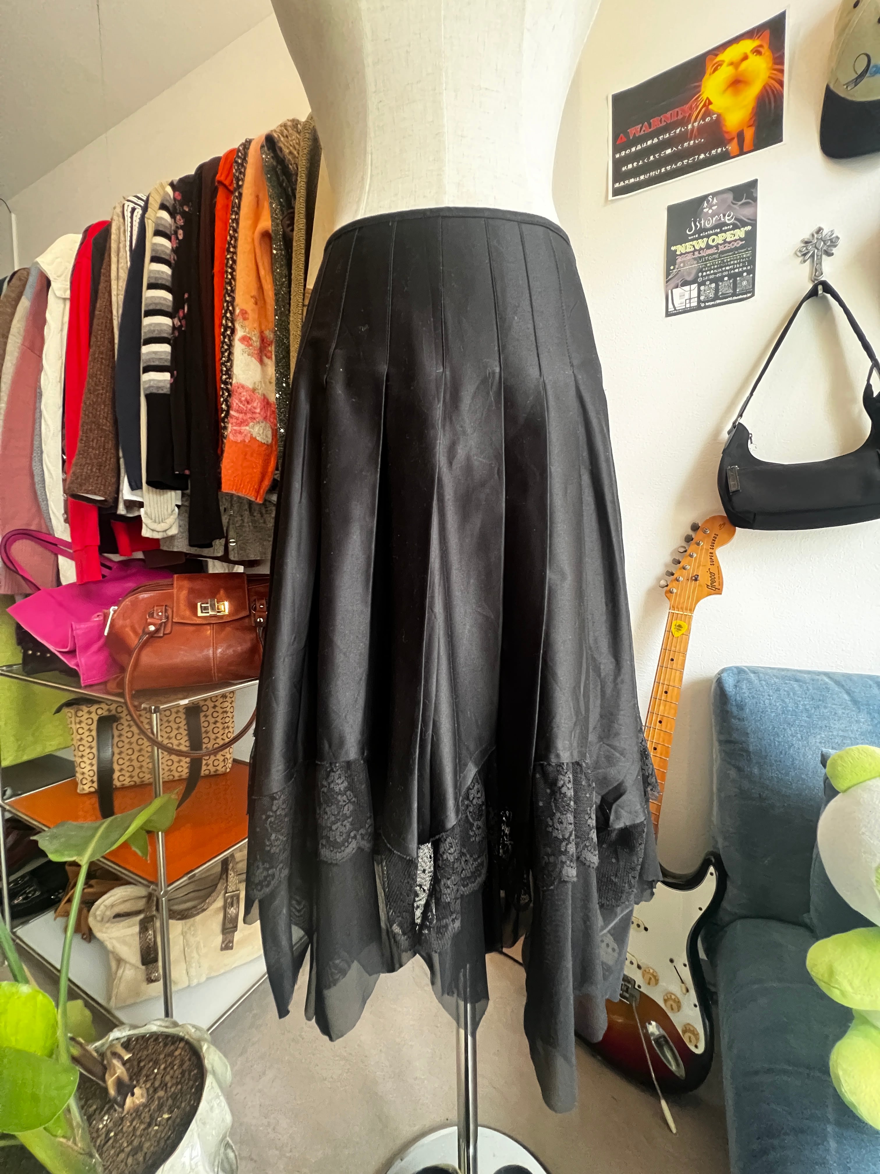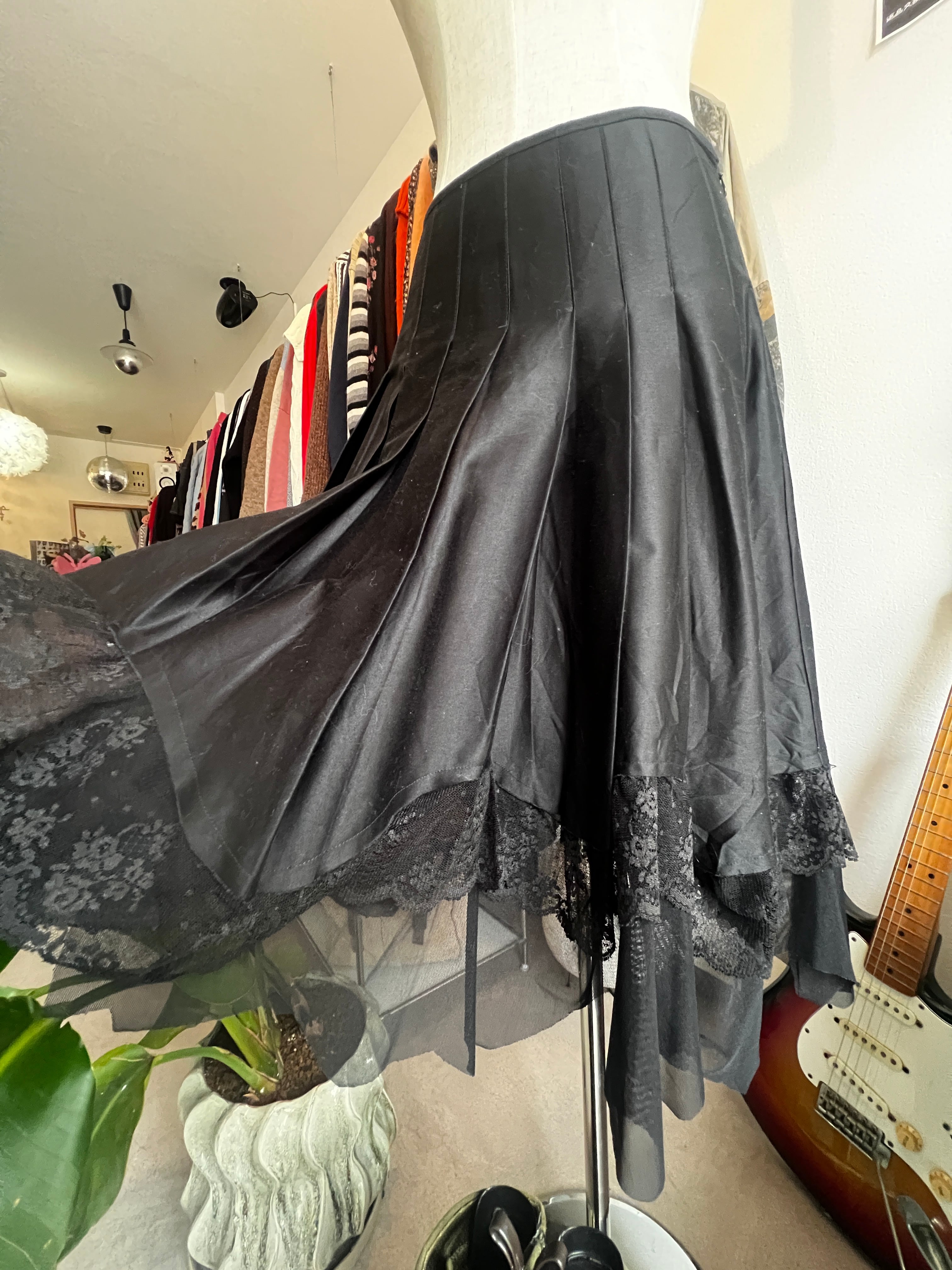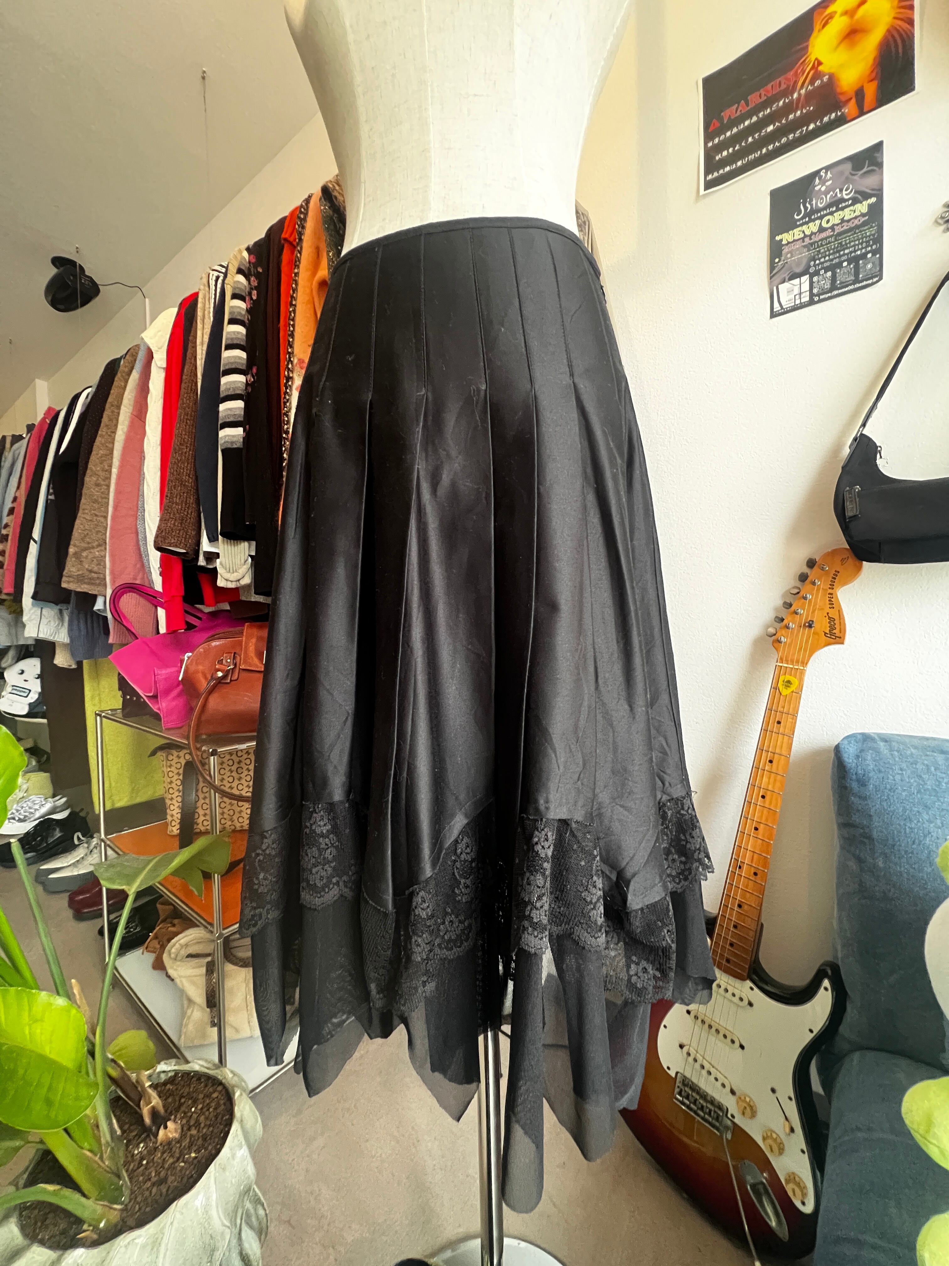 black pleats lace skirt
