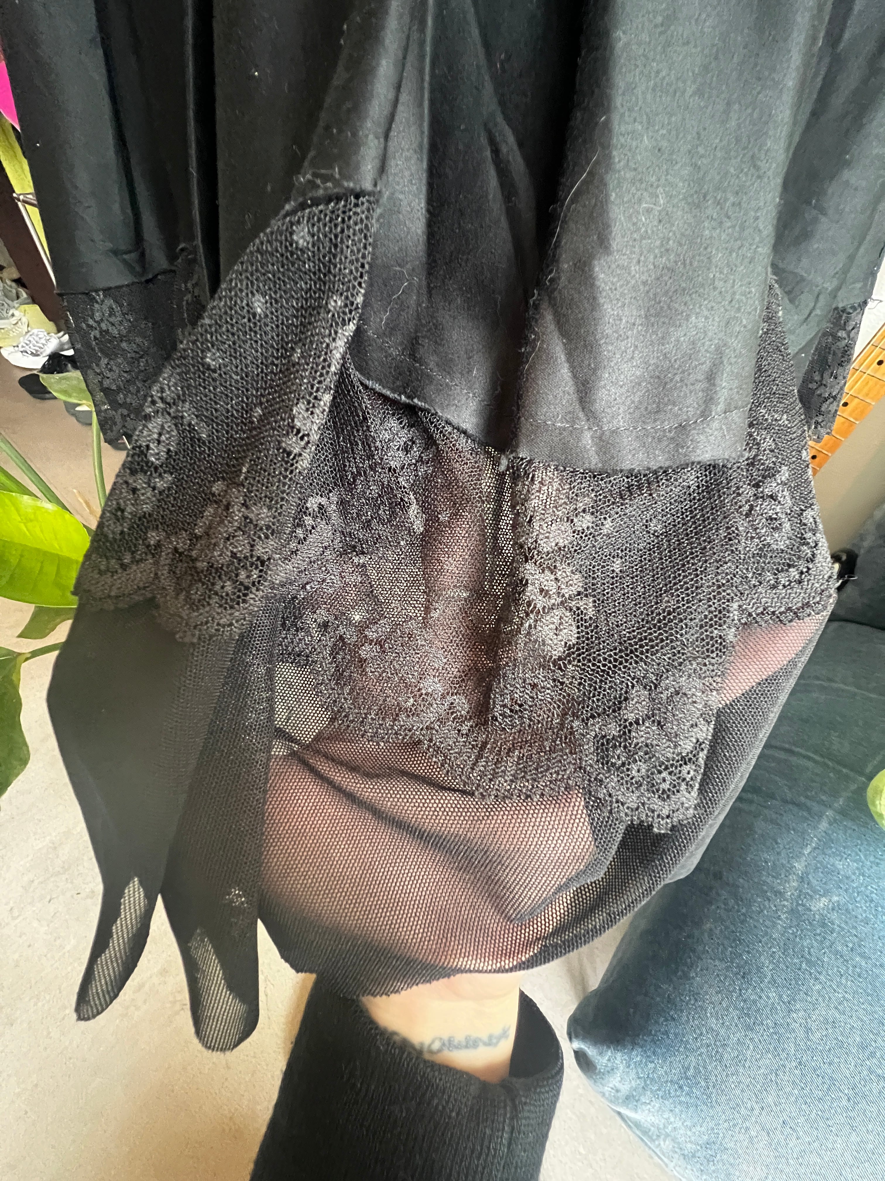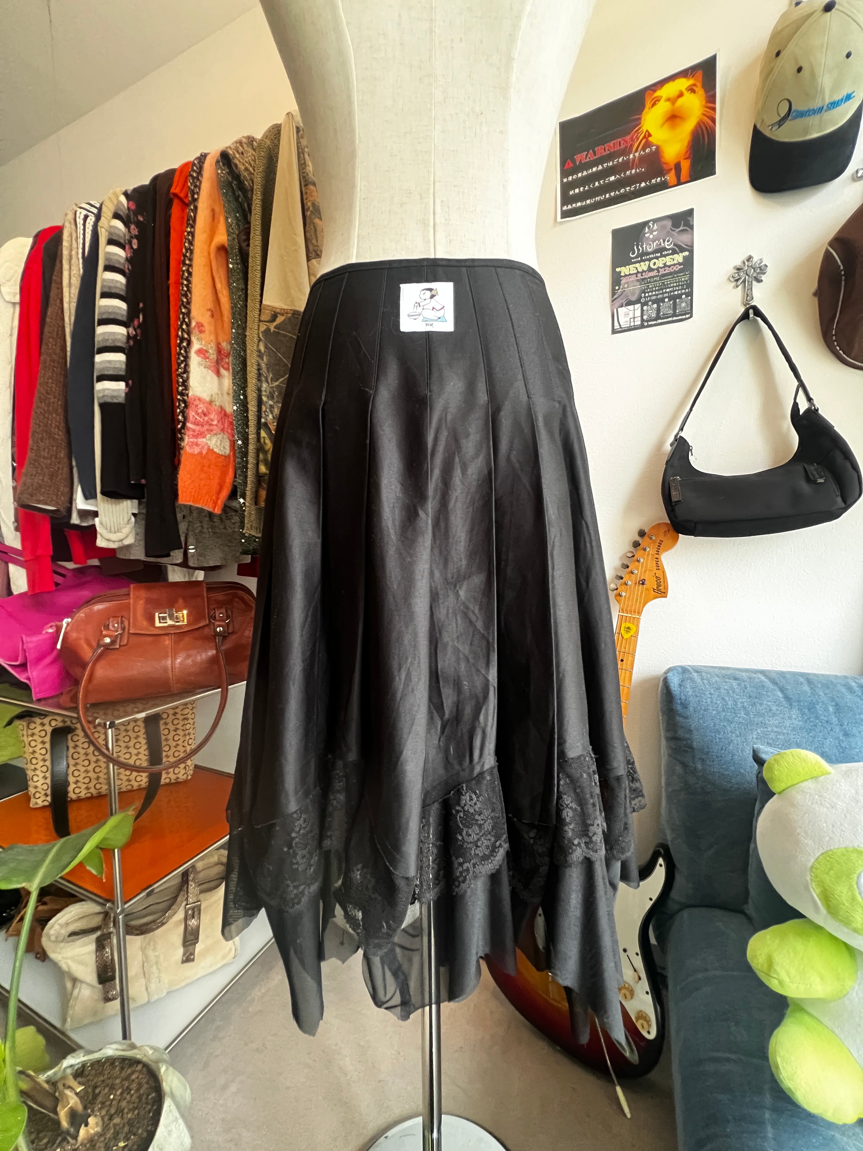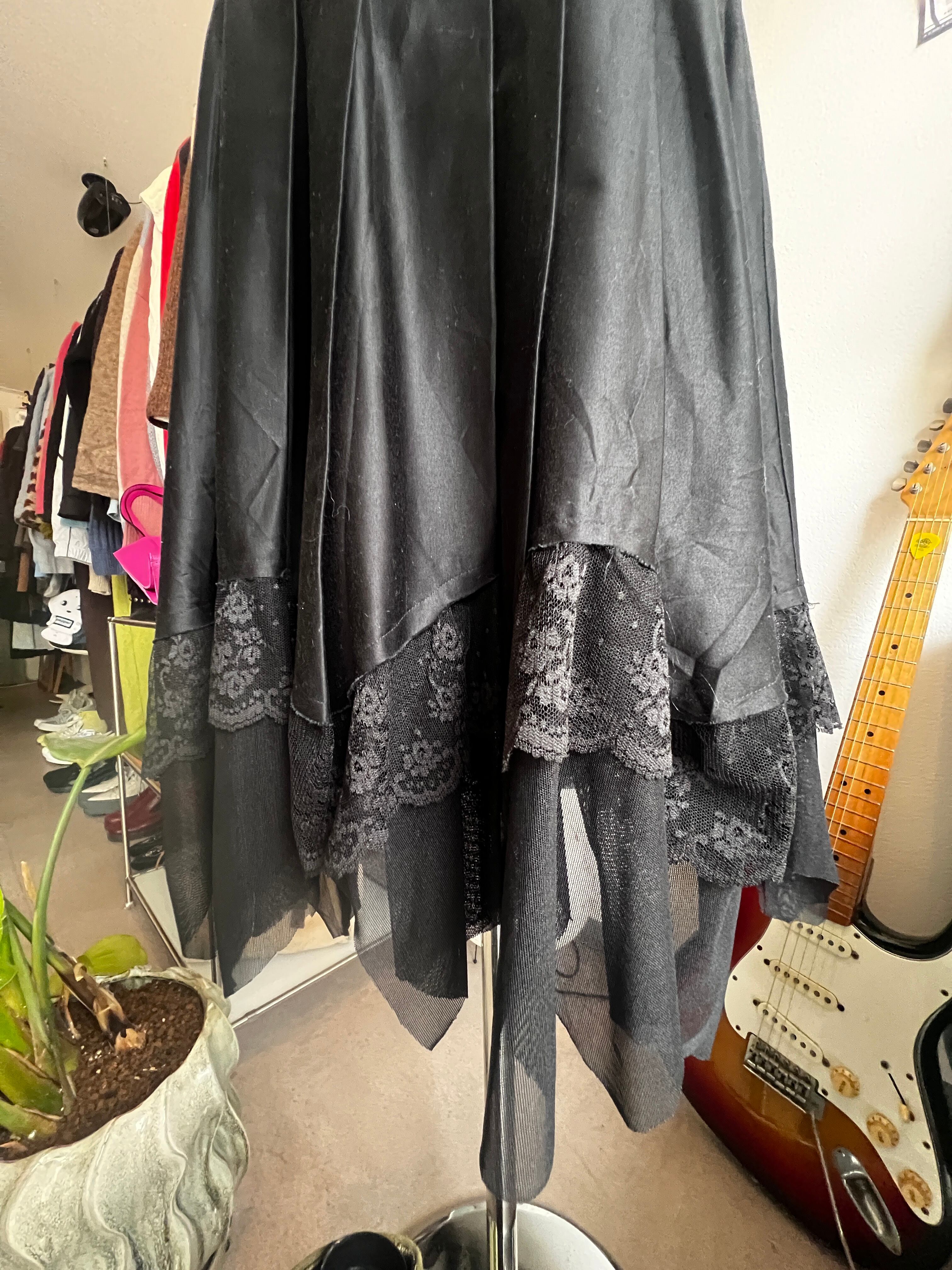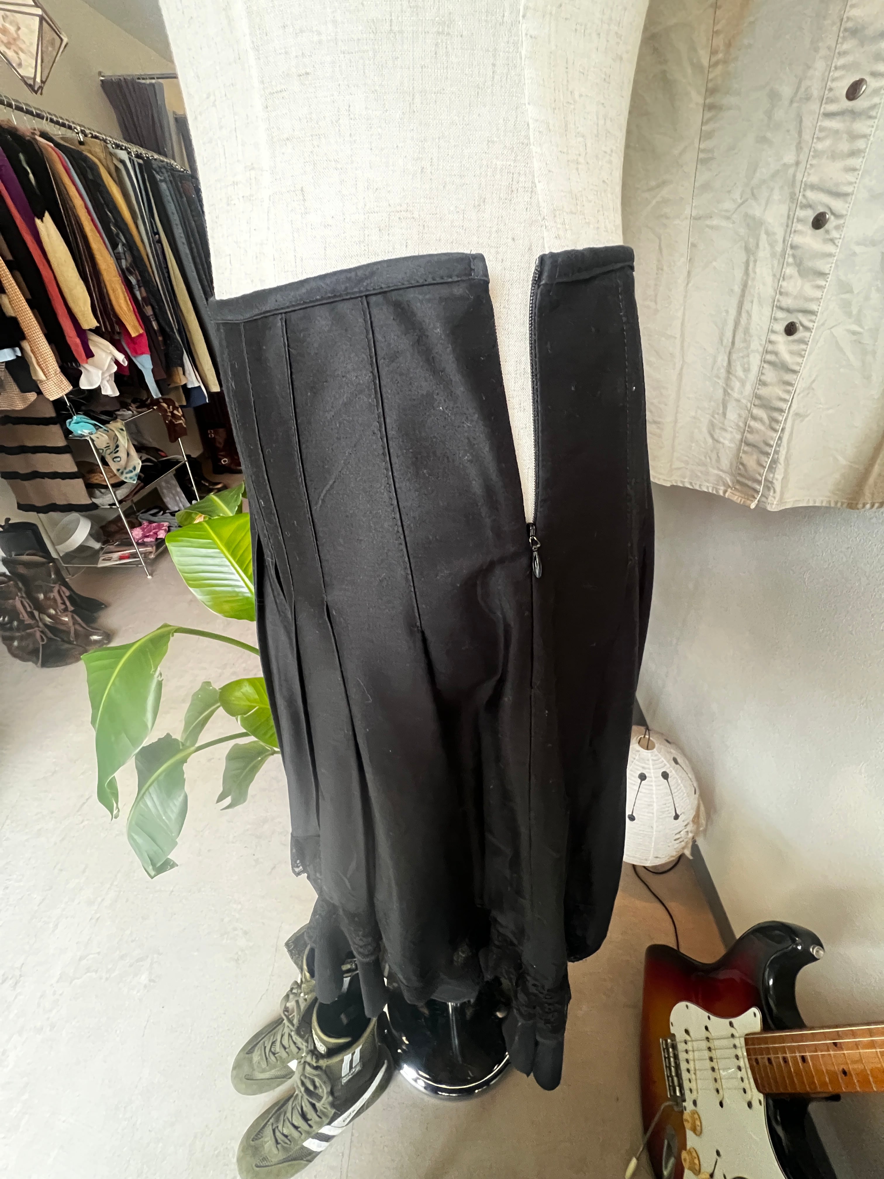 black pleats lace skirt
