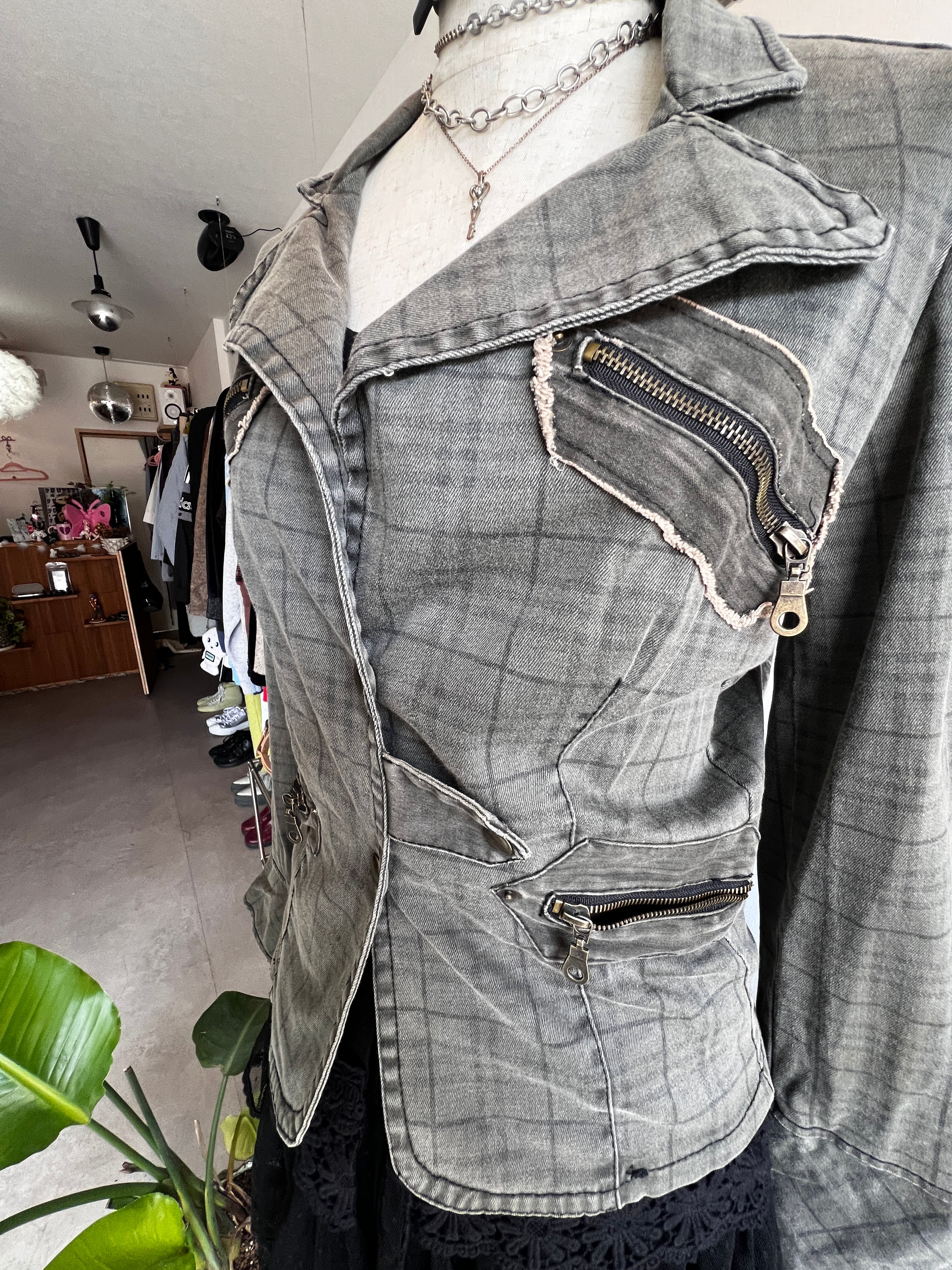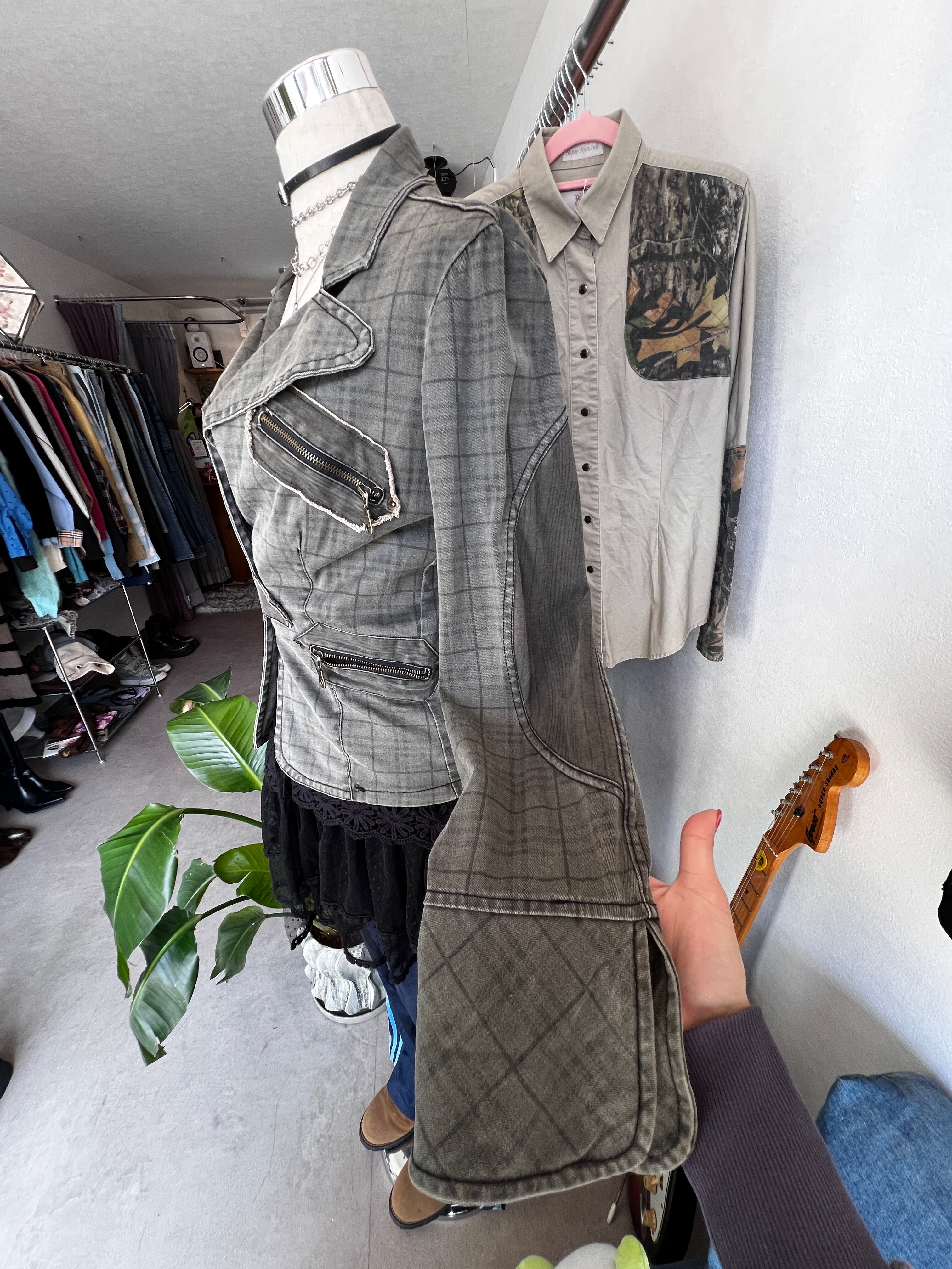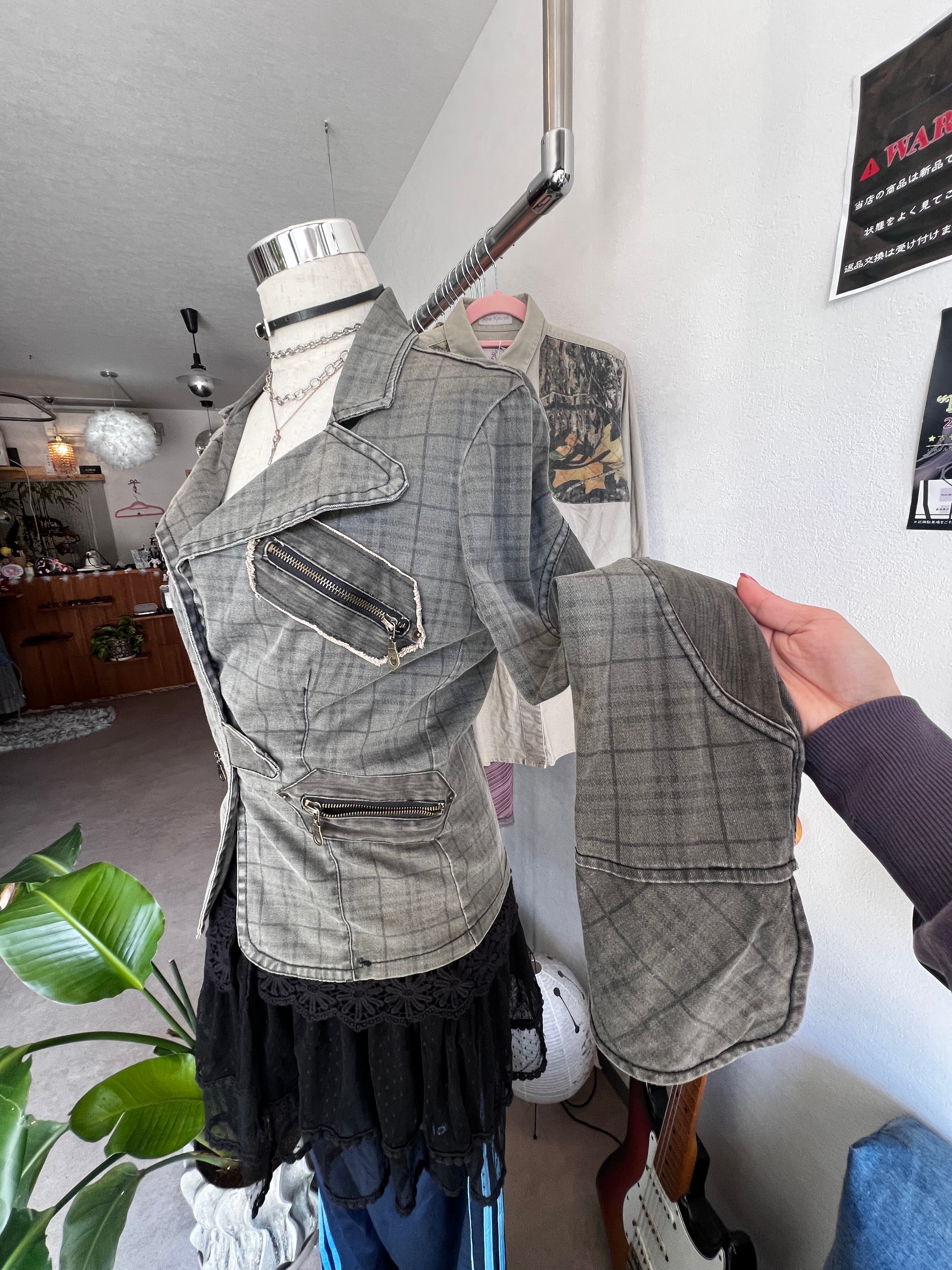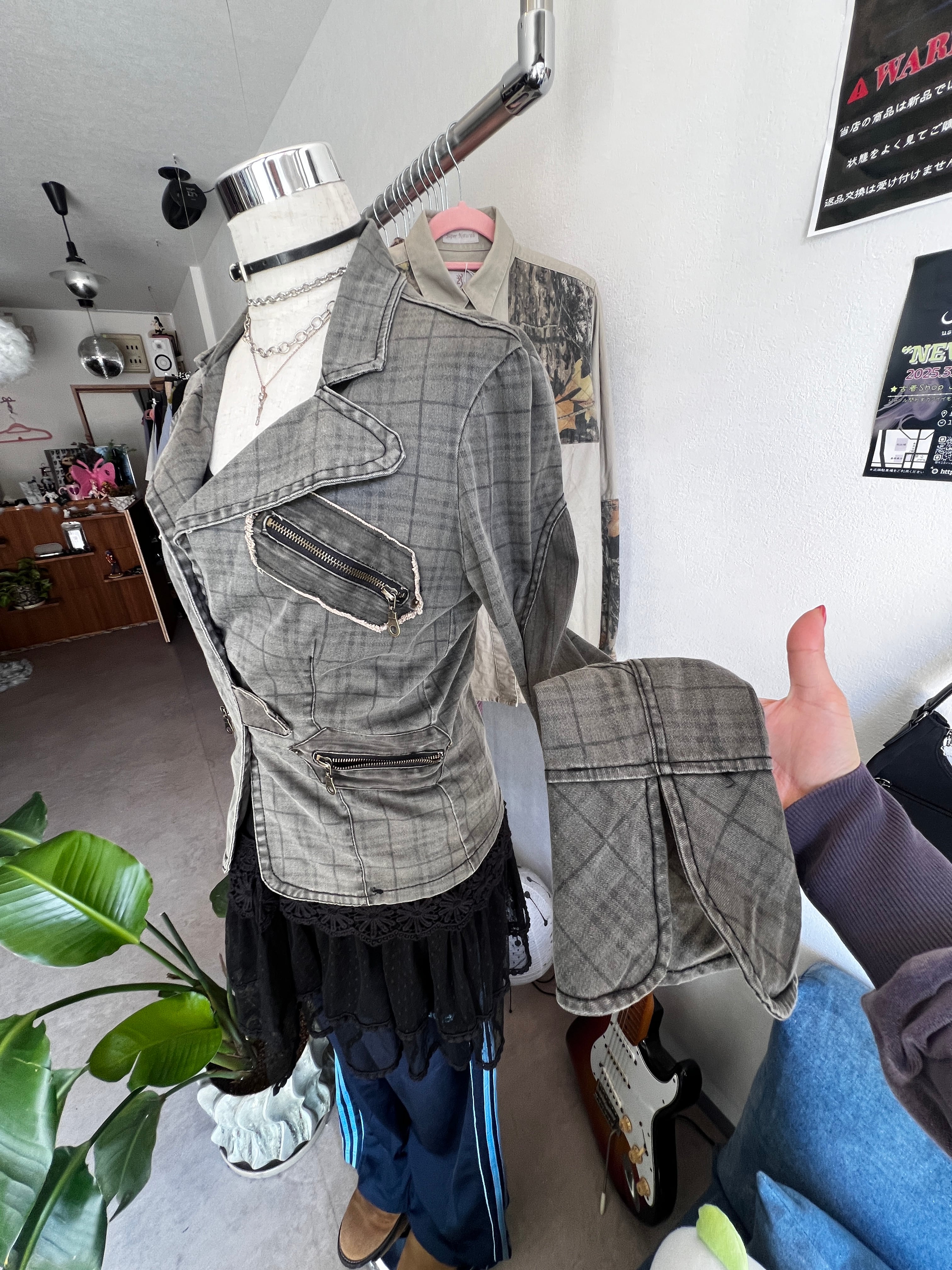 check denim riders jacket