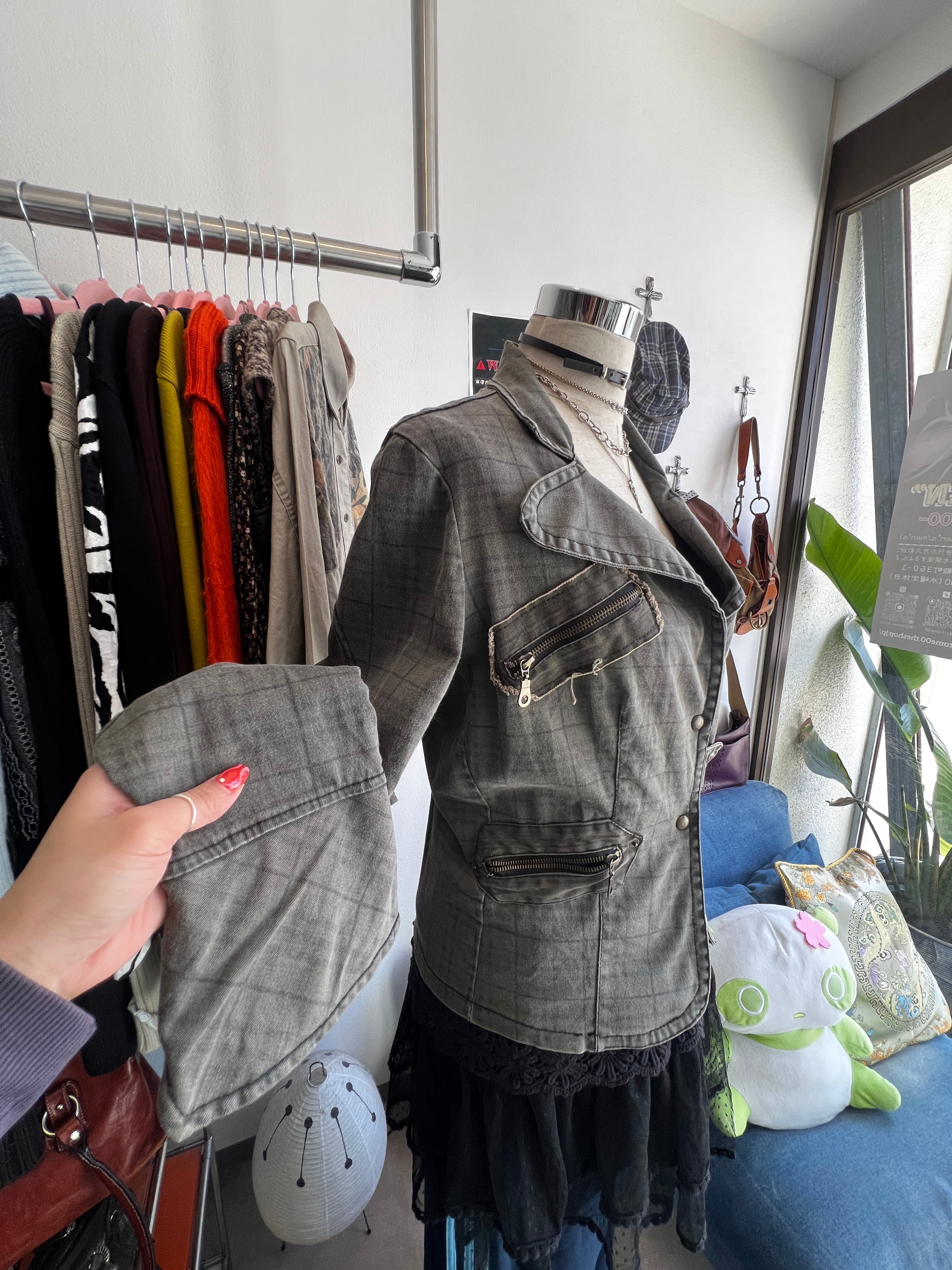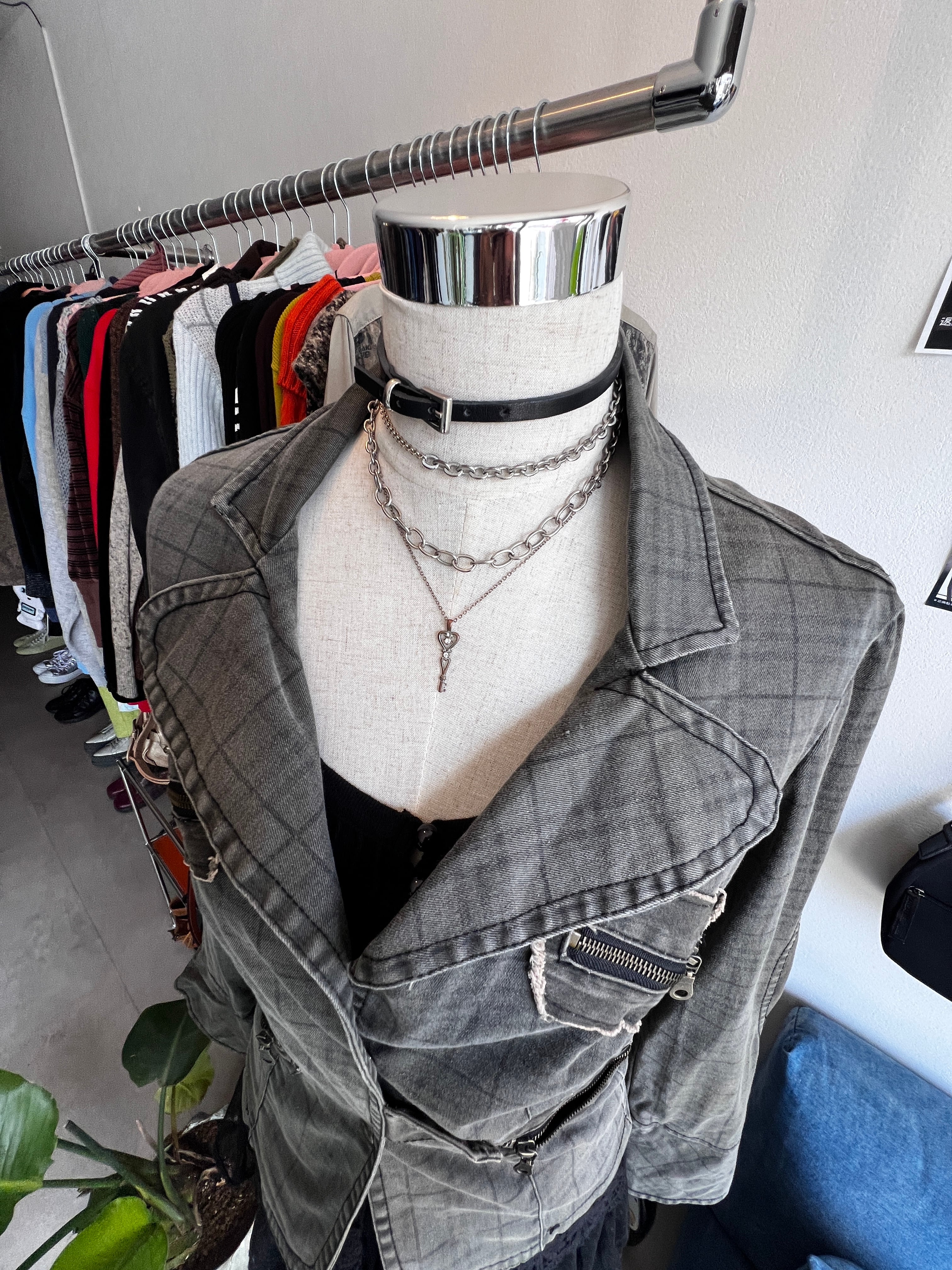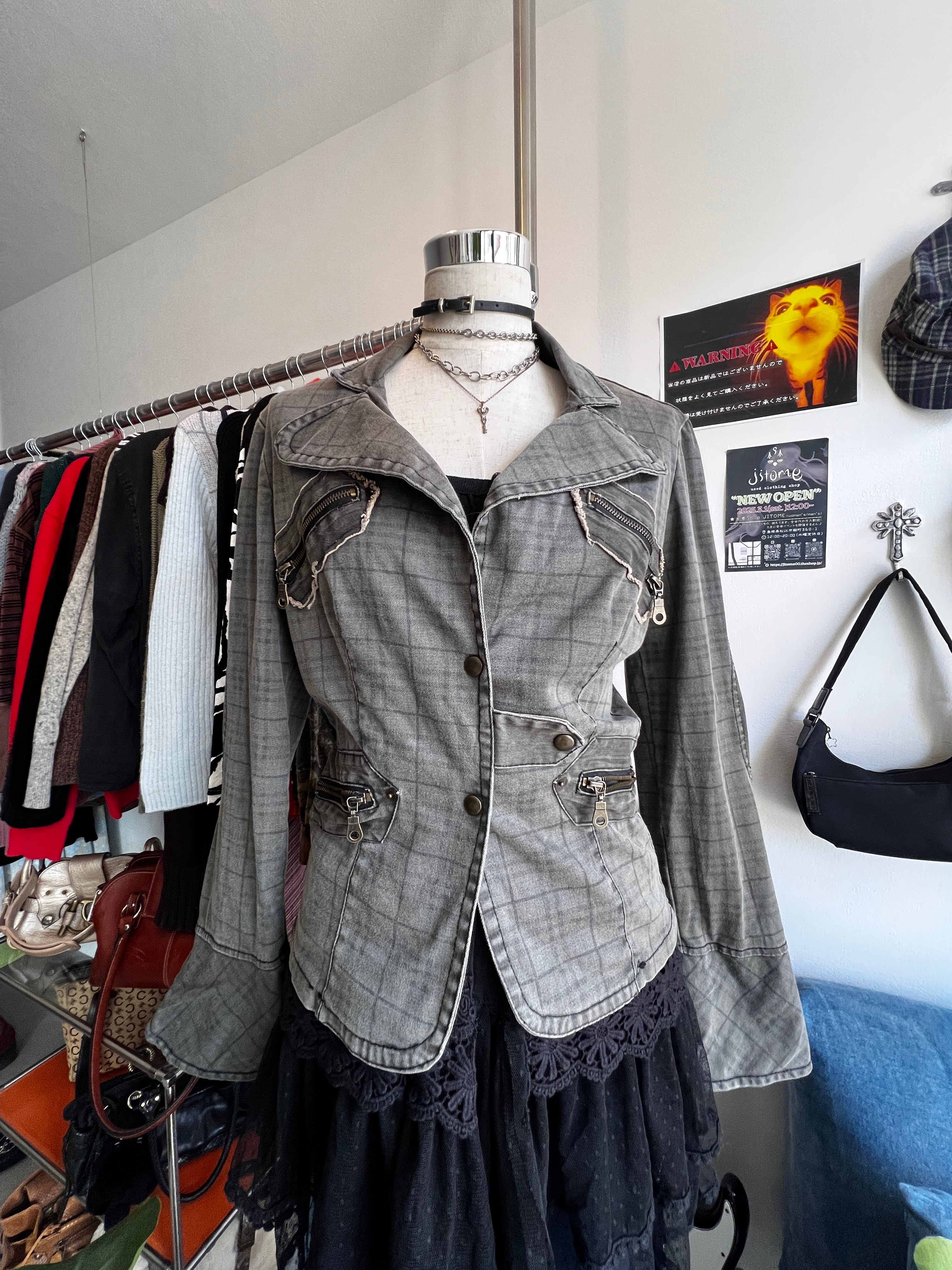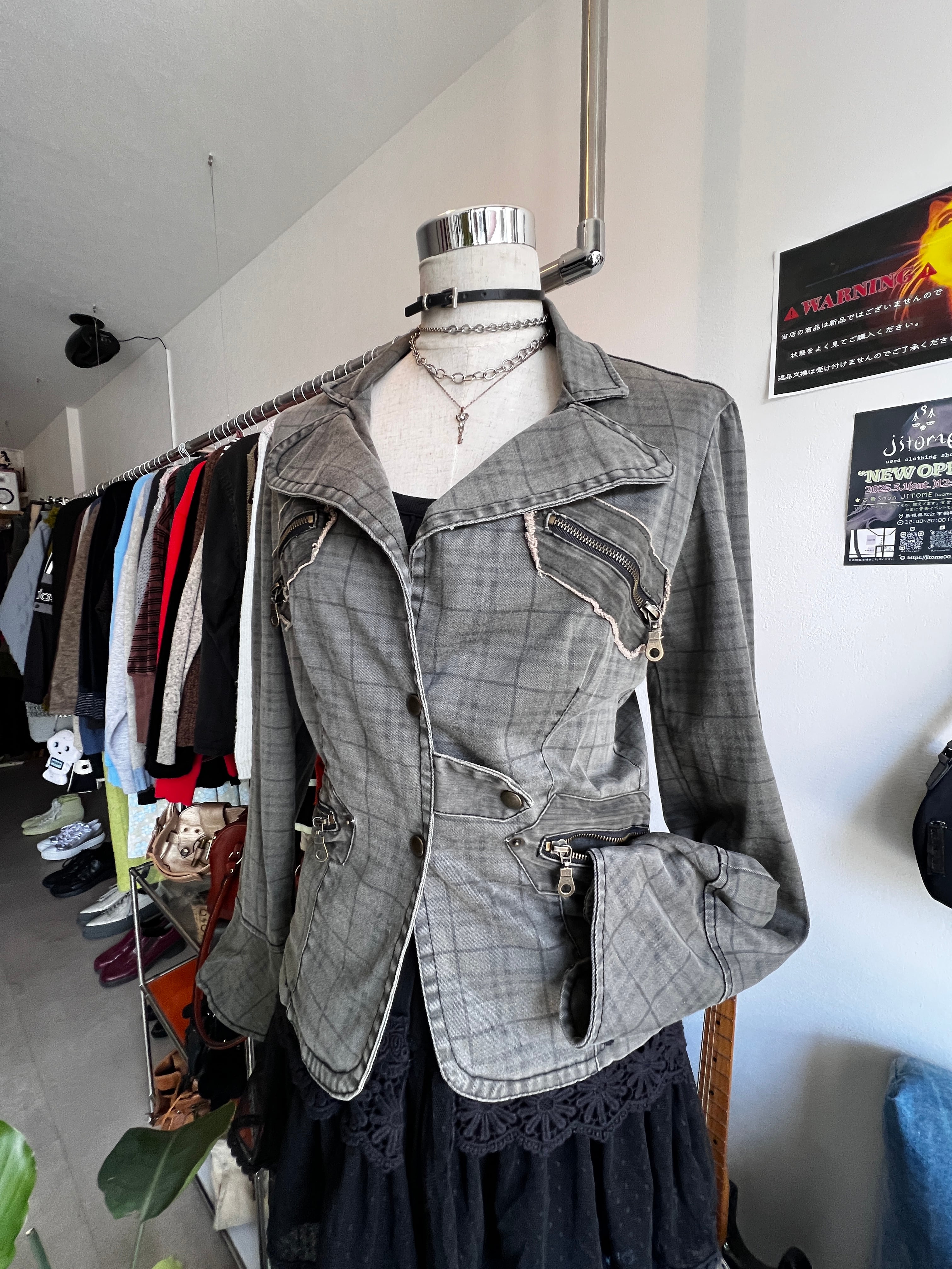 check denim riders jacket