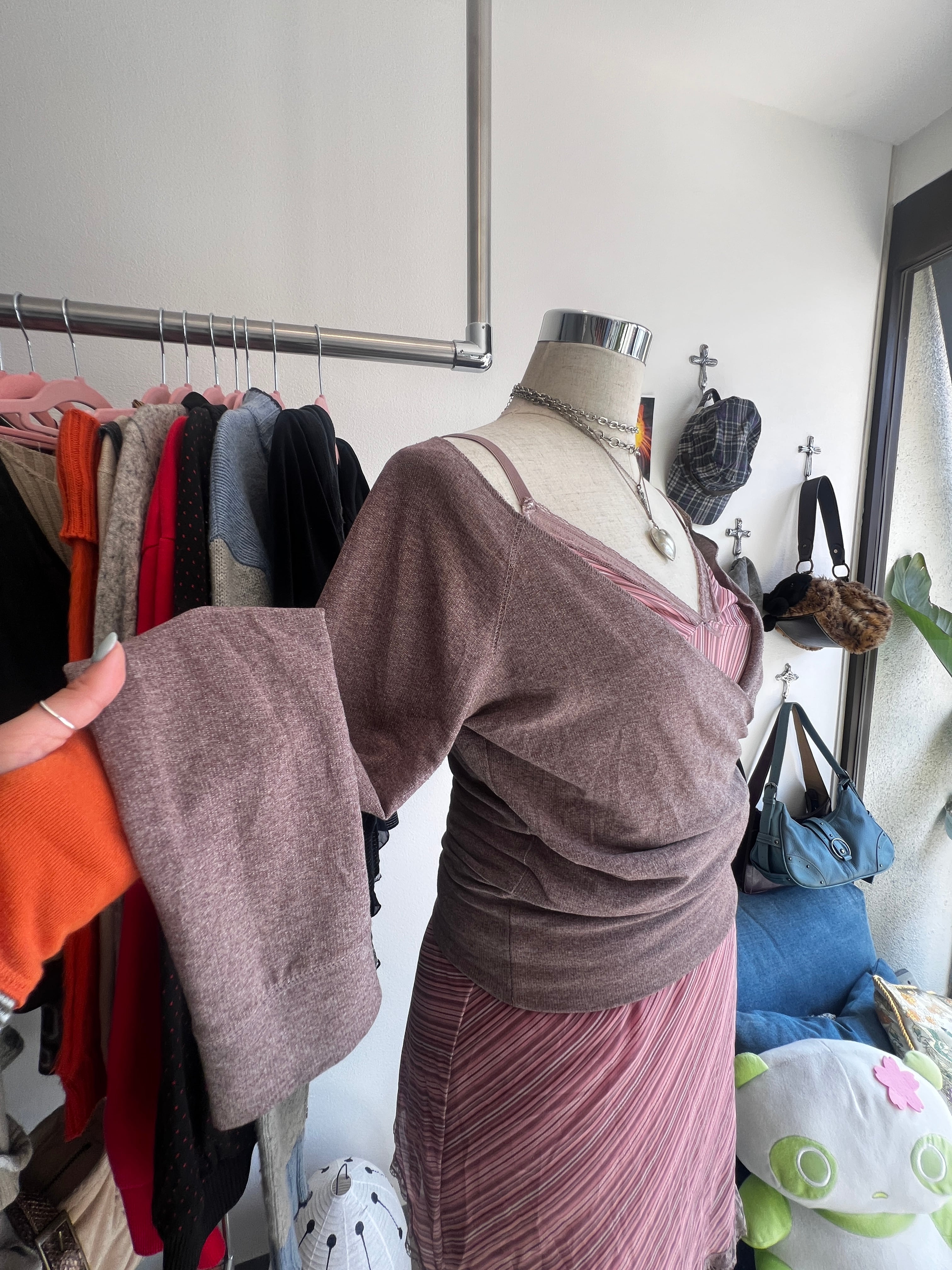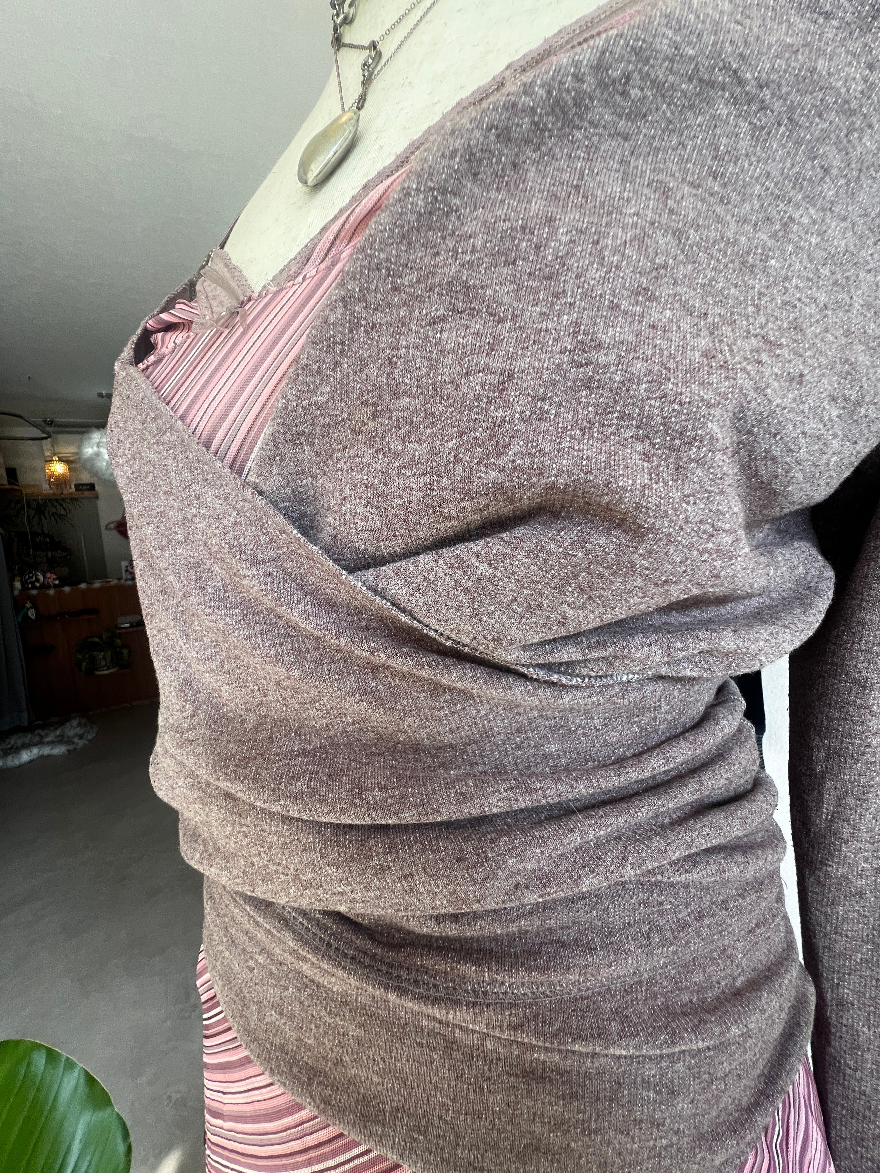pink brown wrap top