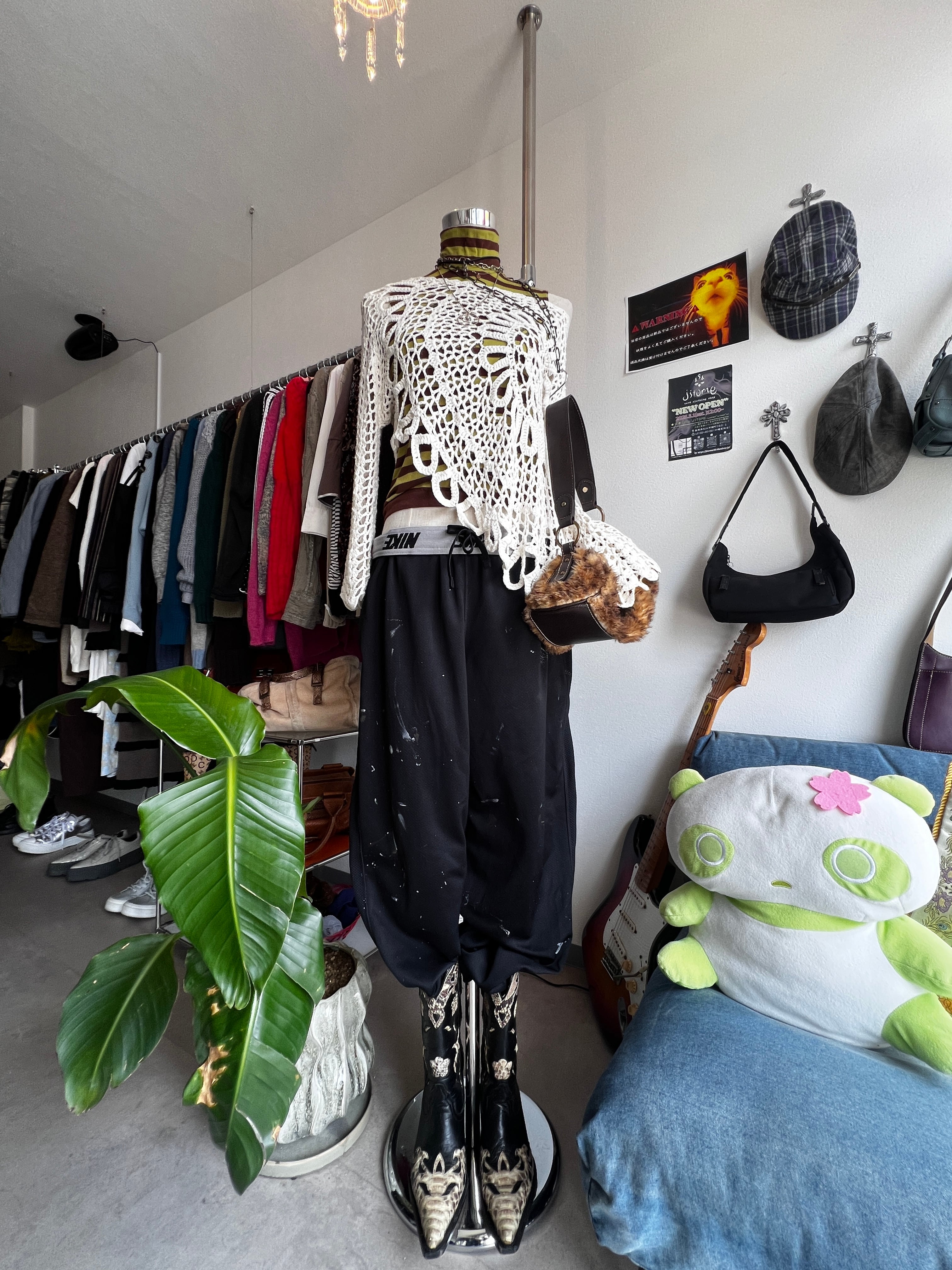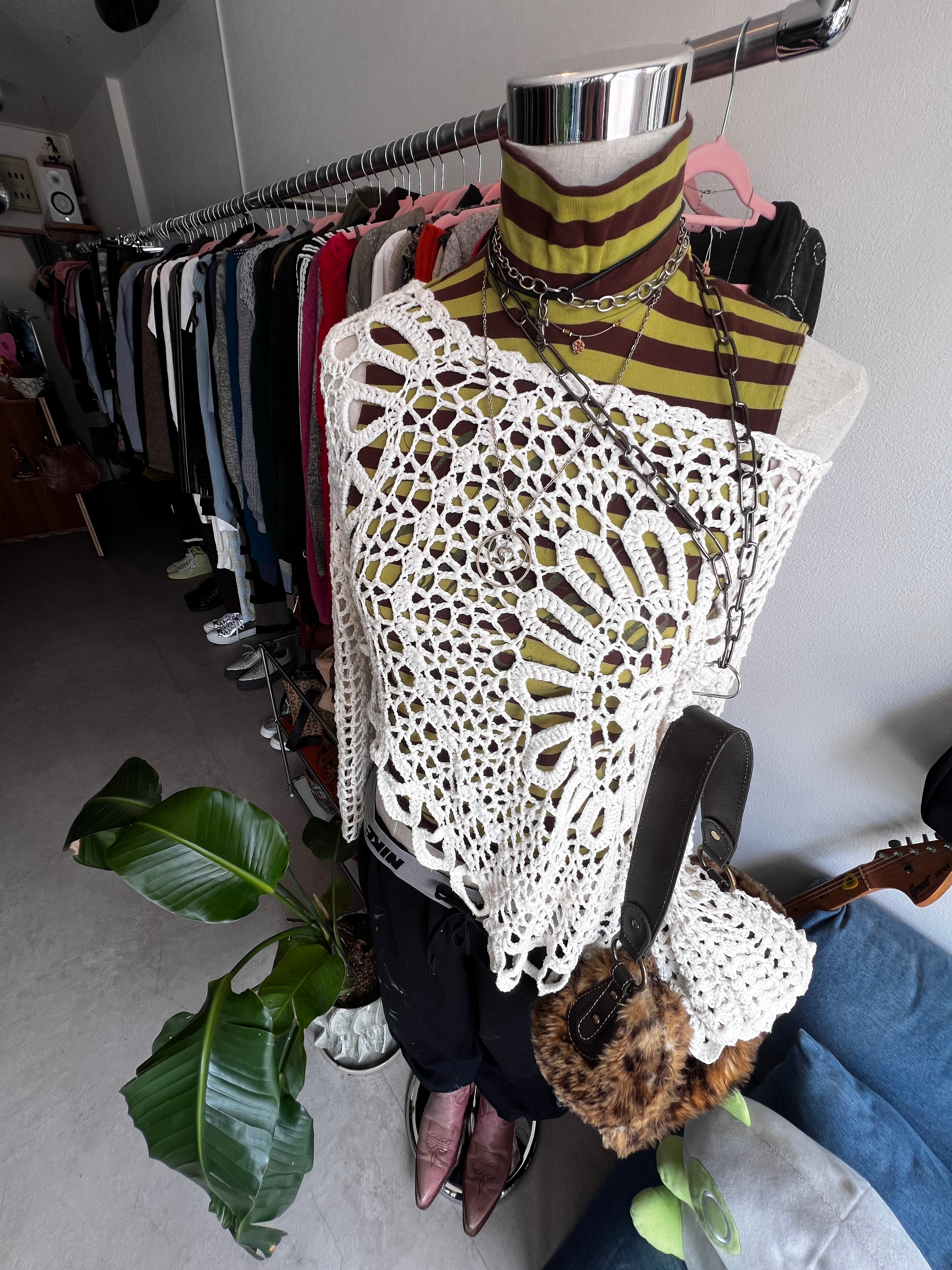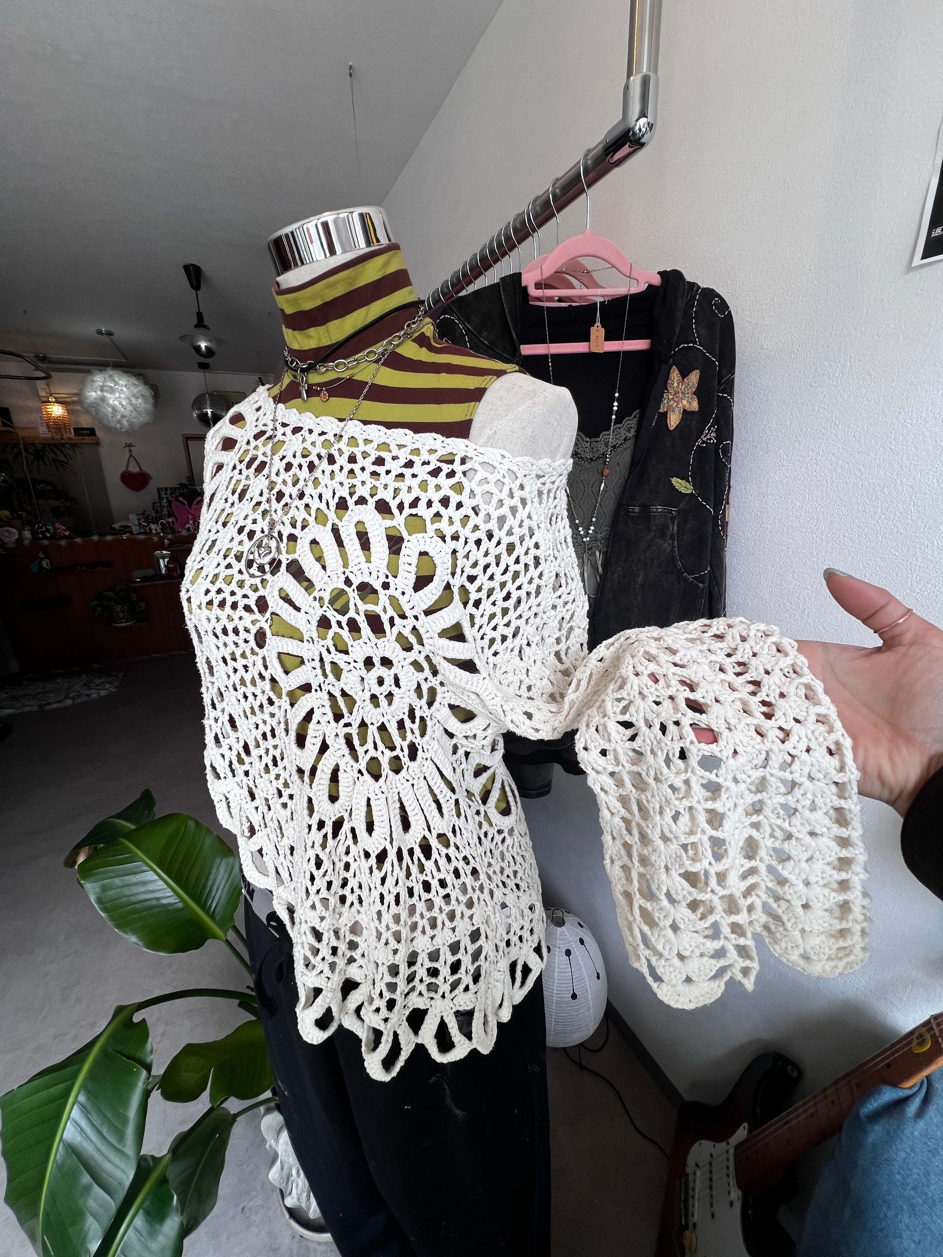 white crochet knit