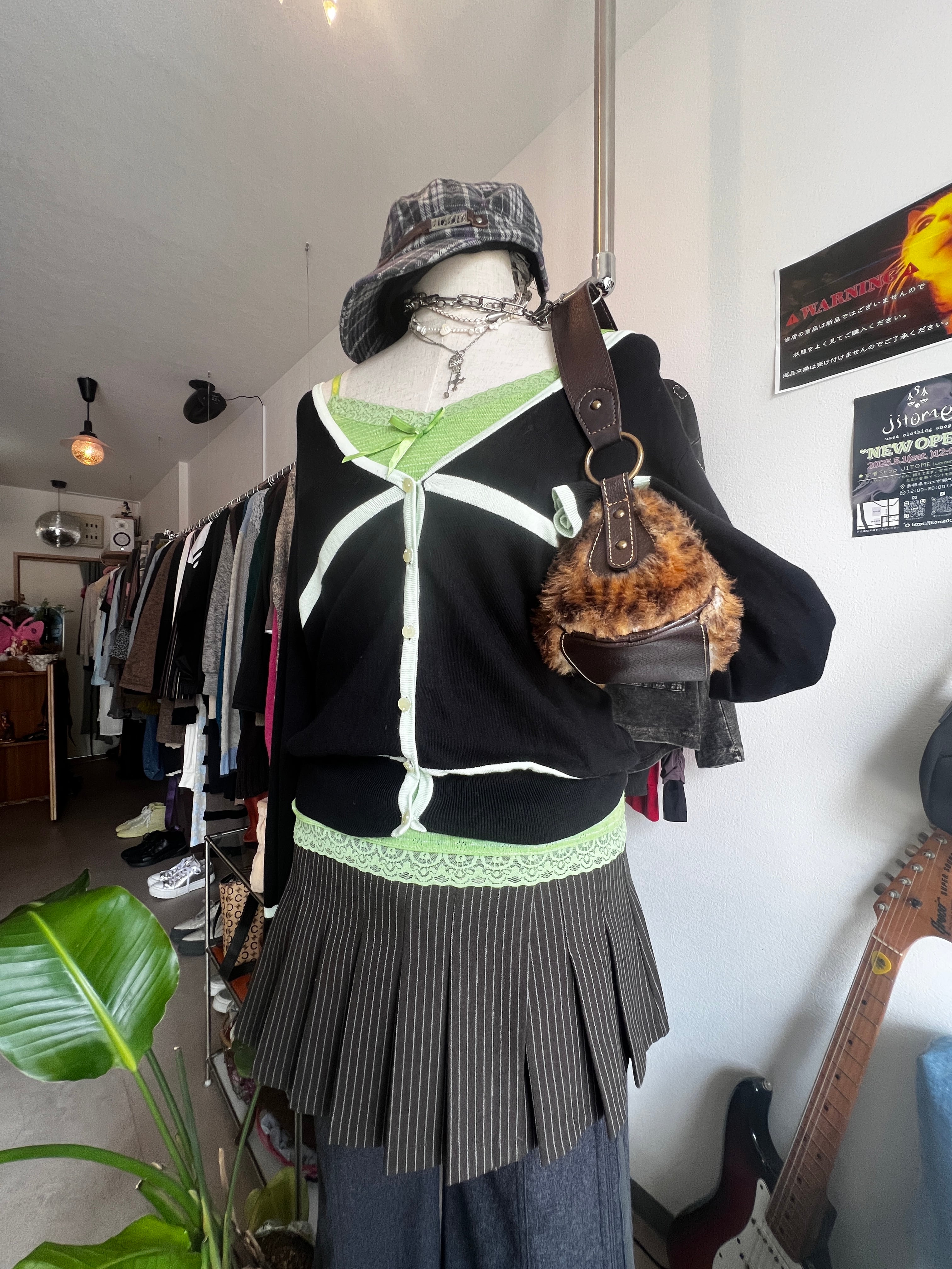 stripe pleats maki skirt