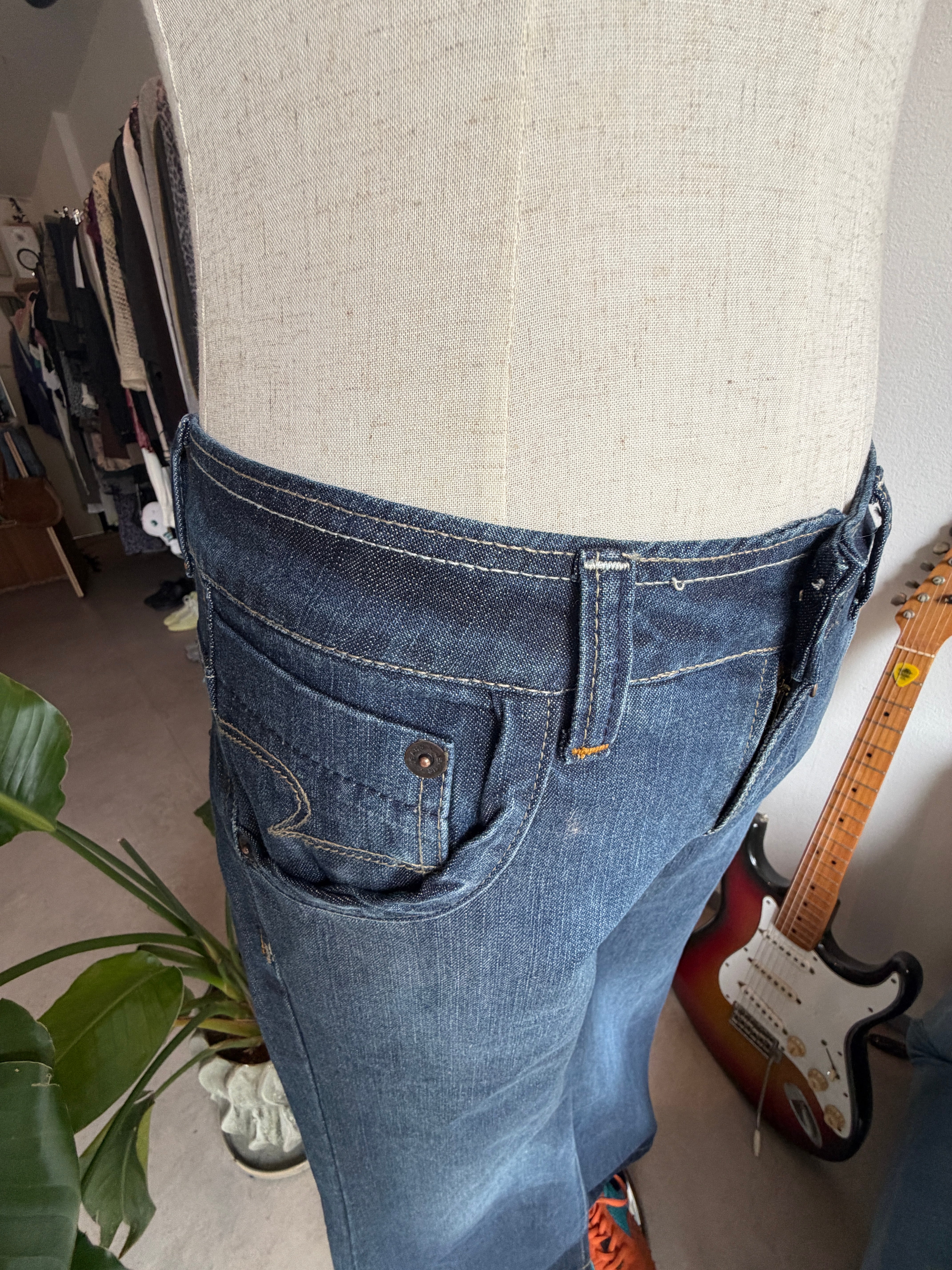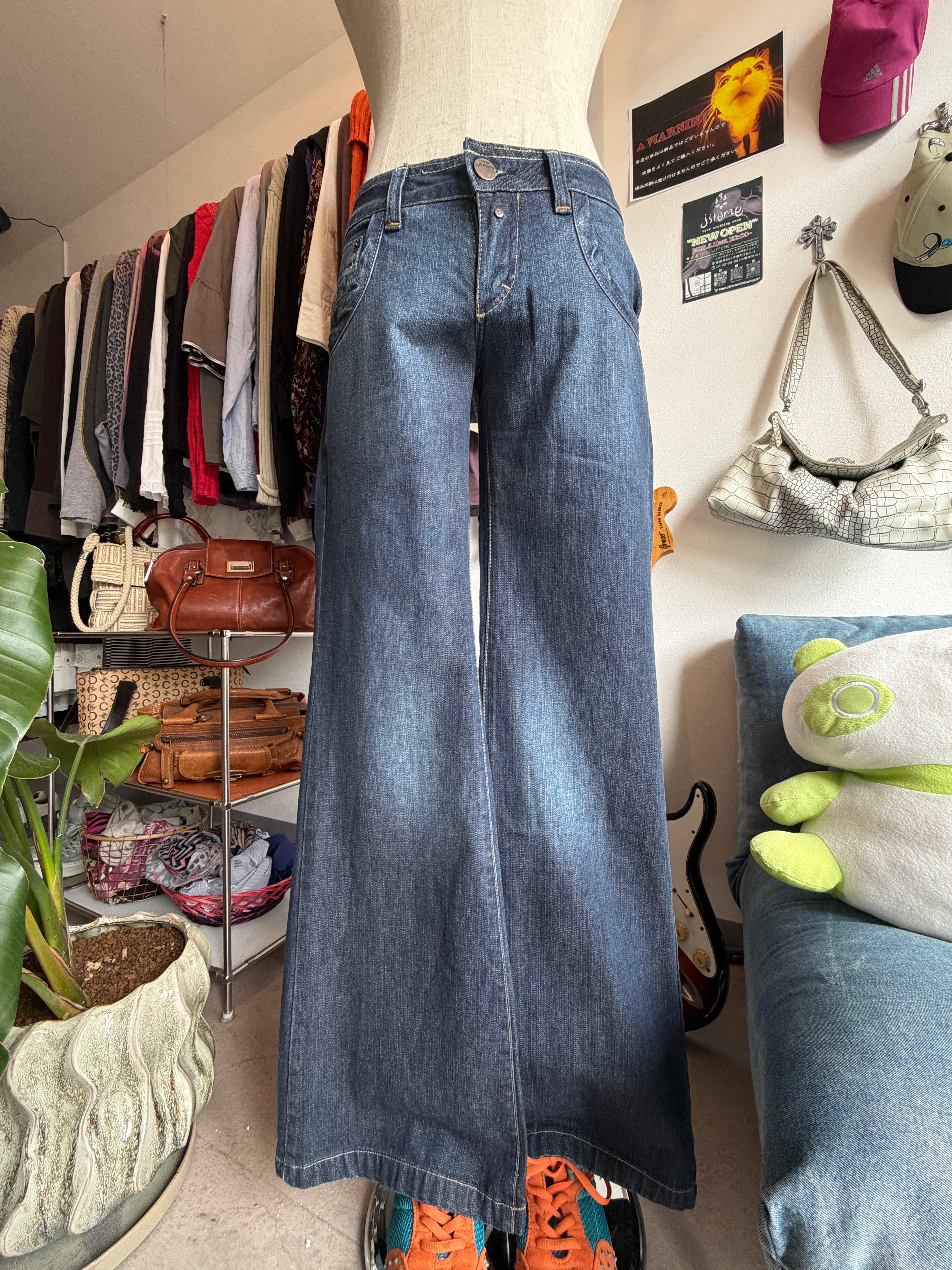low rise flare denim